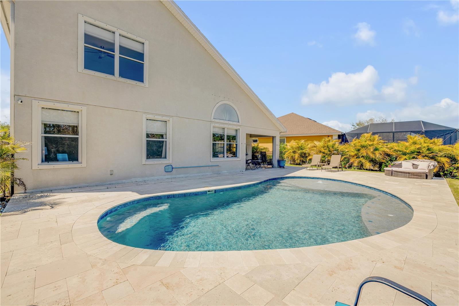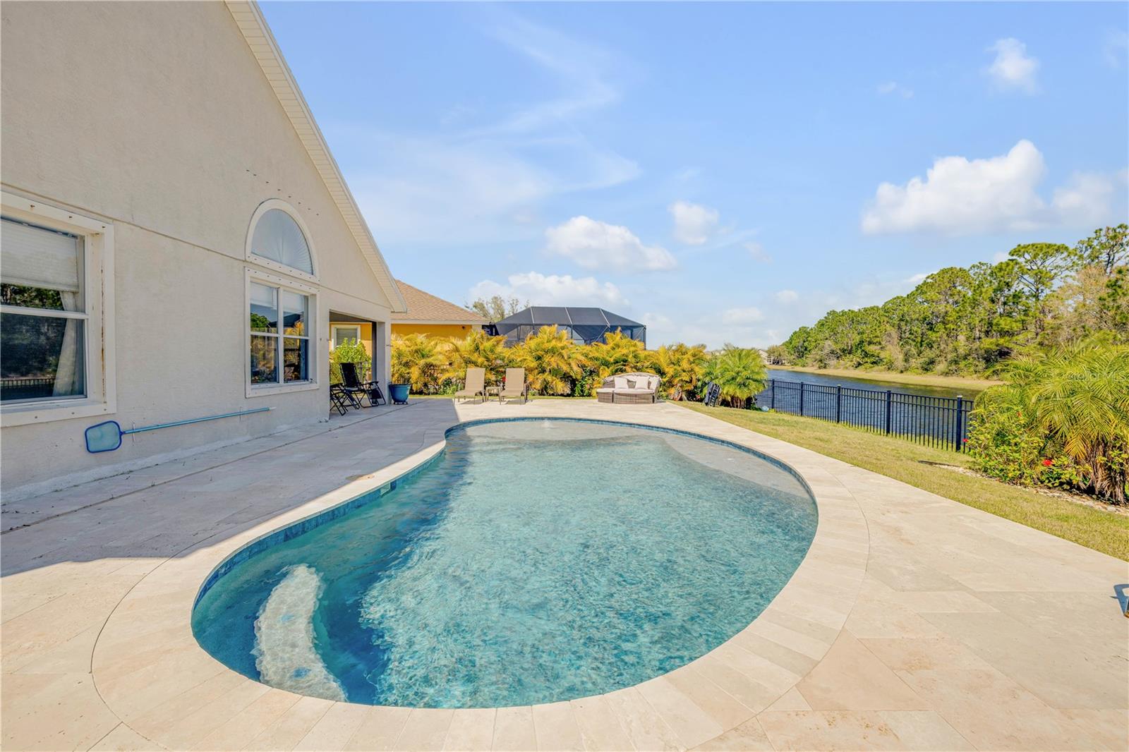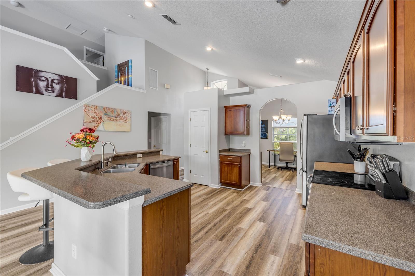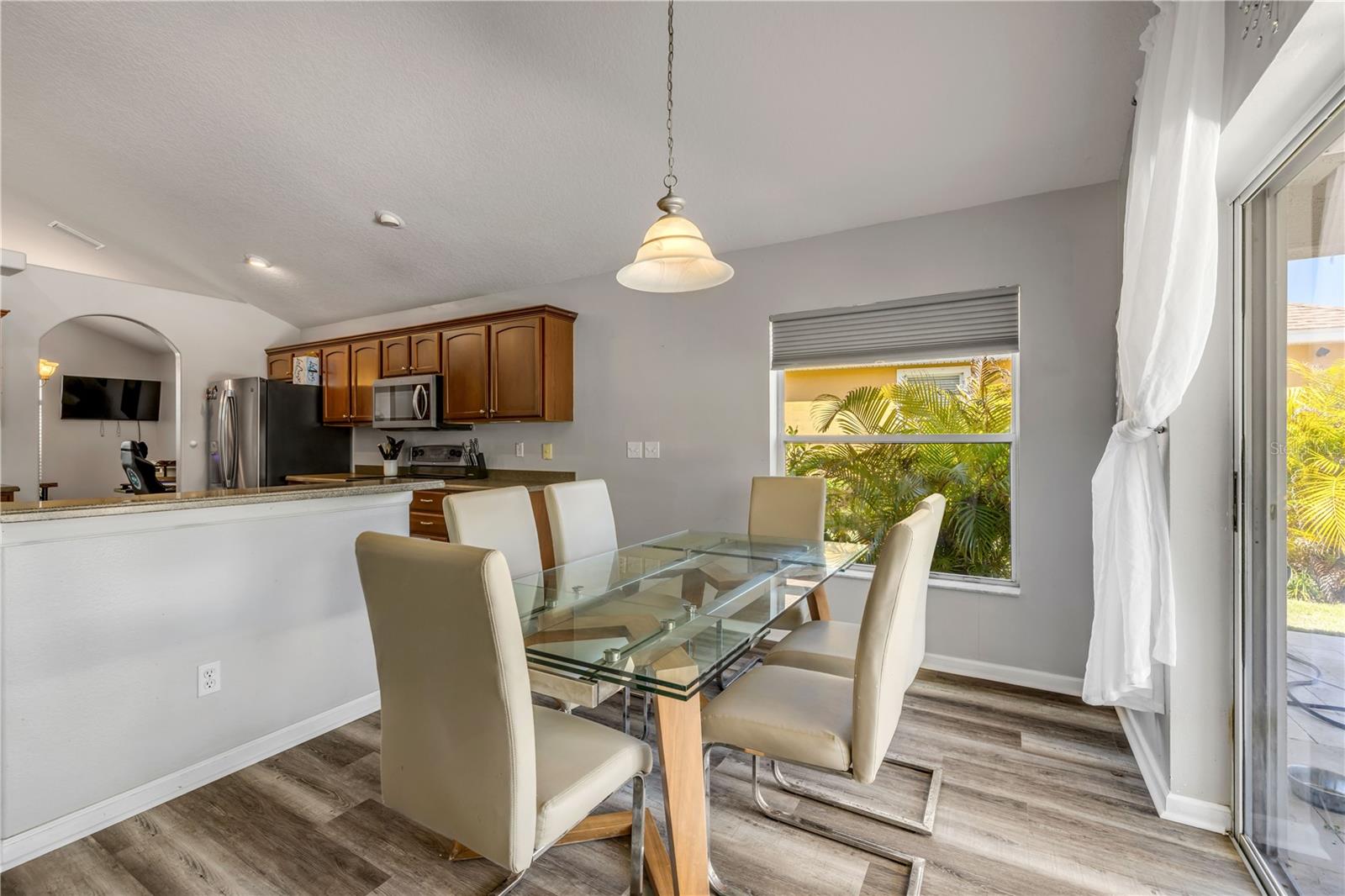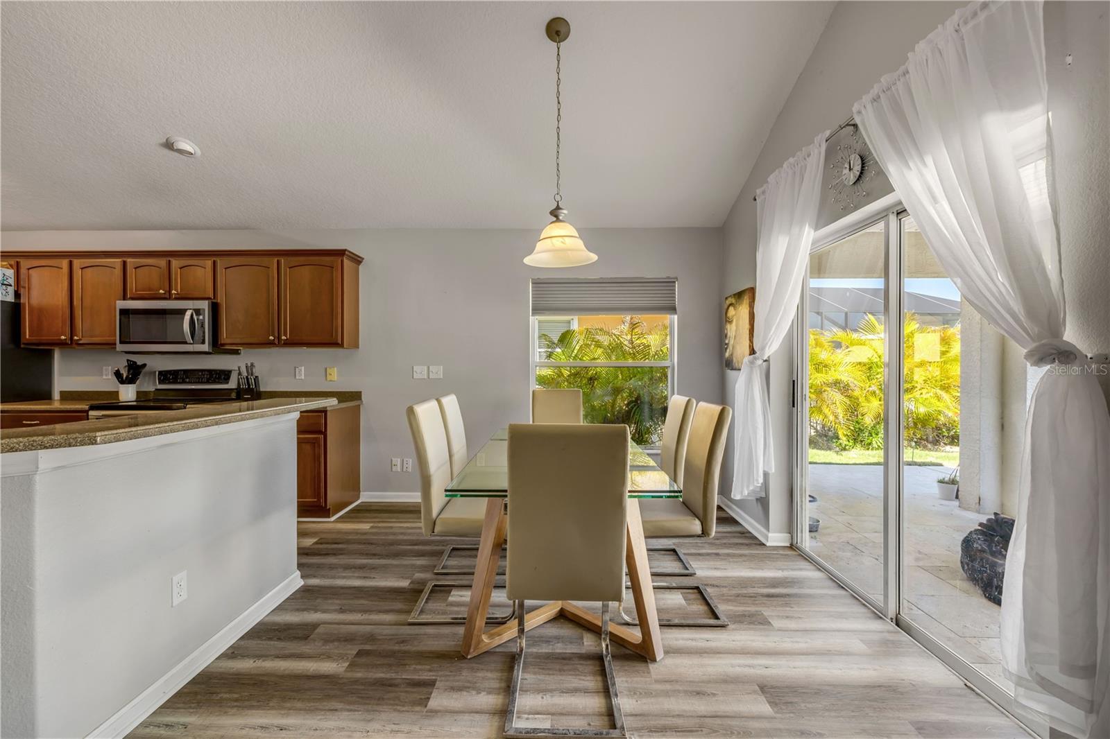 Welcome to 225 Perfect! This beautifully updated pool home is located in the heart of the desirable LPGA community. This floor plan is functionality at its finest, offering incredible communal living areas as well as privacy of bedroom locations. Your heated salt water pool with was constructed in 2022, completely enhancing your outdoor living experience. Entertain or unwind on your spacious patio and fully fenced yard overlooking the 3rd & 4th hole of the Jones course. This home has UPDATES throughout including brand-new LVP flooring (2025), accent walls (2025), new ceiling fans (2025) and stainless steel appliances. Roof and HVAC were replaced in 2020, solar panels added in 2022.