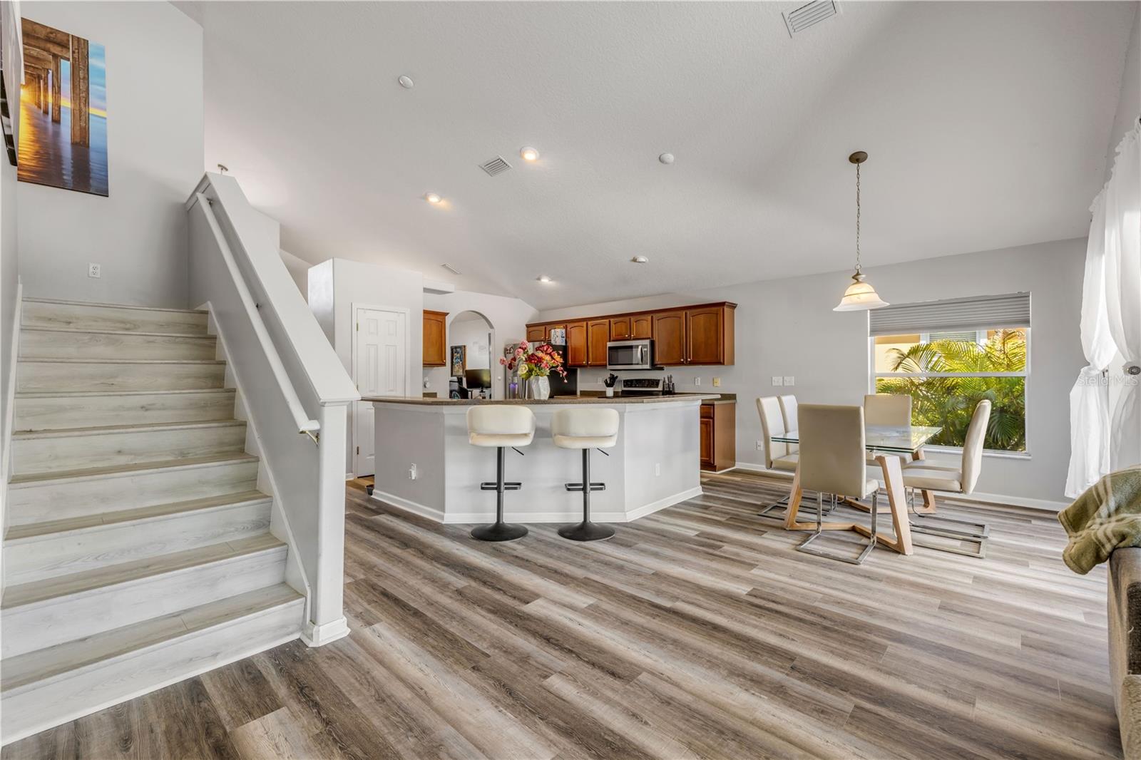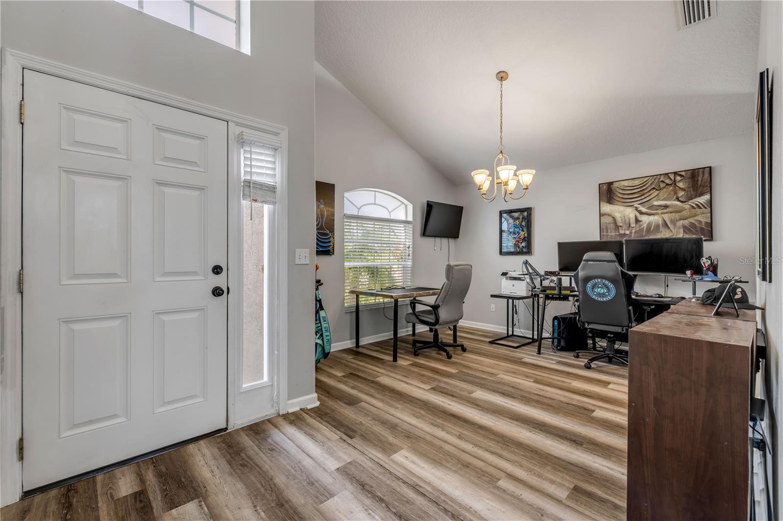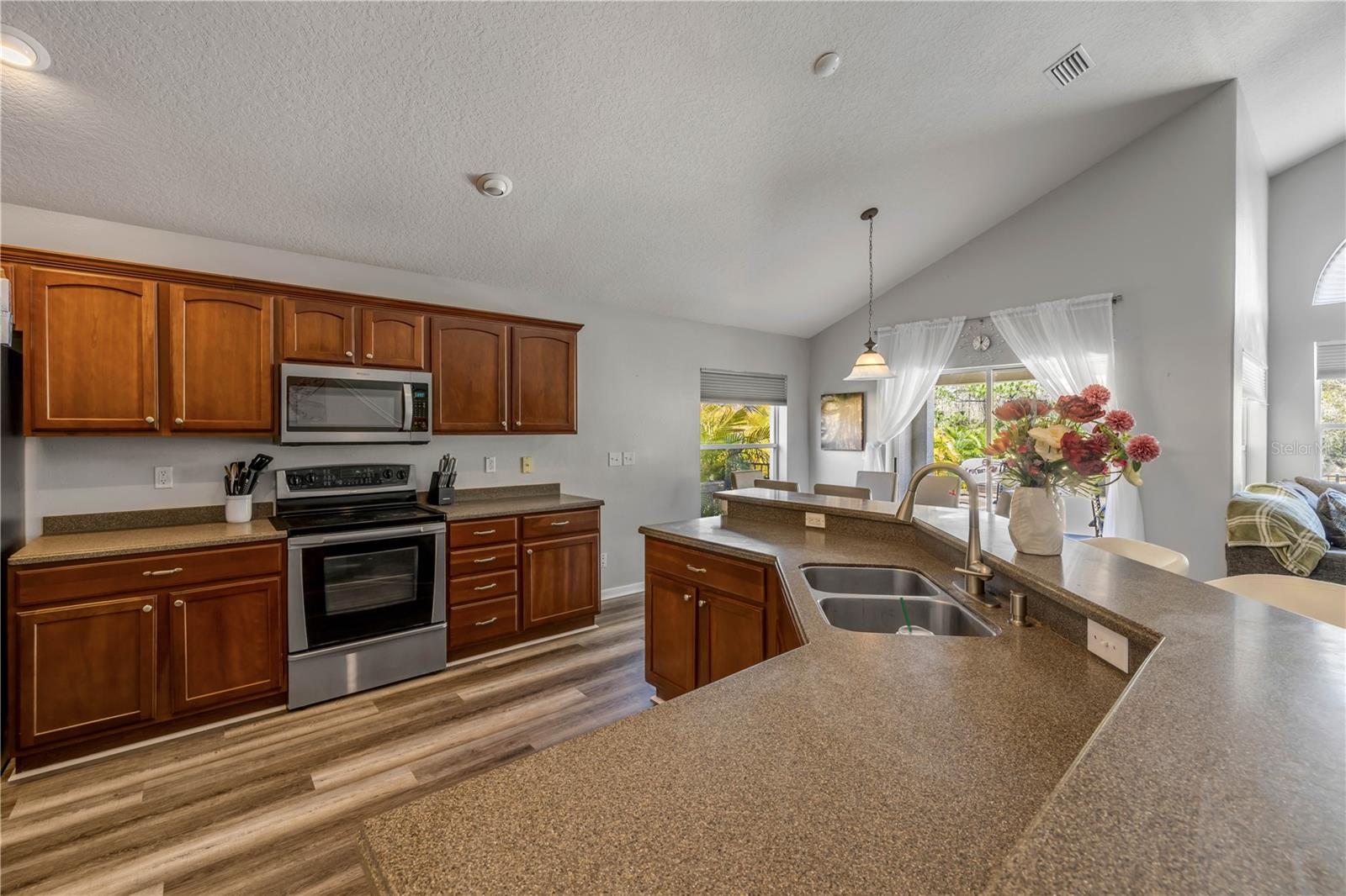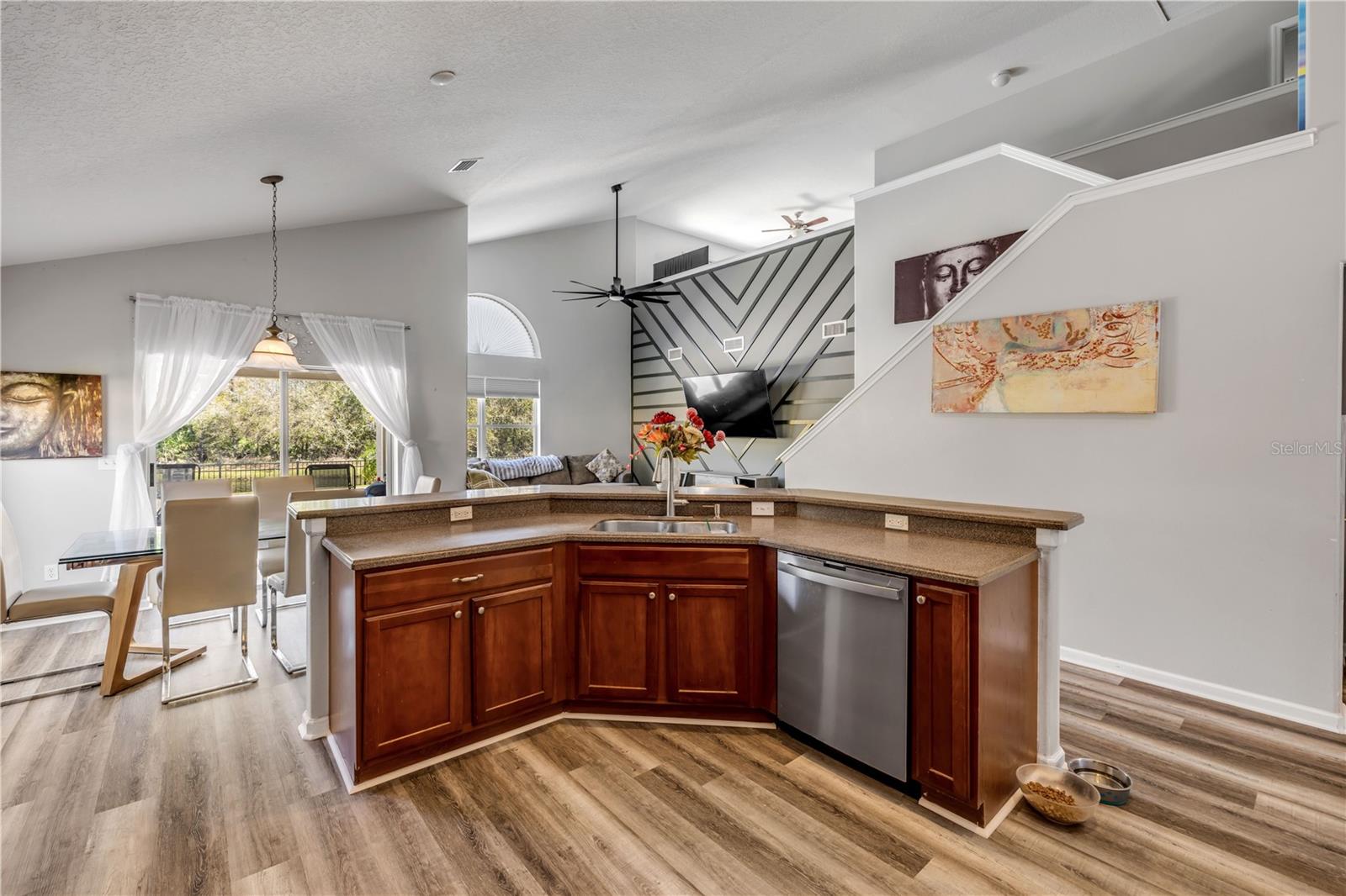 Welcome to 225 Perfect! This beautifully updated pool home is located in the heart of the desirable LPGA community. This floor plan is functionality at its finest, offering incredible communal living areas as well as privacy of bedroom locations. Your heated salt water pool with was constructed in 2022, completely enhancing your outdoor living experience. Entertain or unwind on your spacious patio and fully fenced yard overlooking the 3rd & 4th hole of the Jones course. This home has UPDATES throughout including brand-new LVP flooring (2025), accent walls (2025), new ceiling fans (2025) and stainless steel appliances. Roof and HVAC were replaced in 2020, solar panels added in 2022.