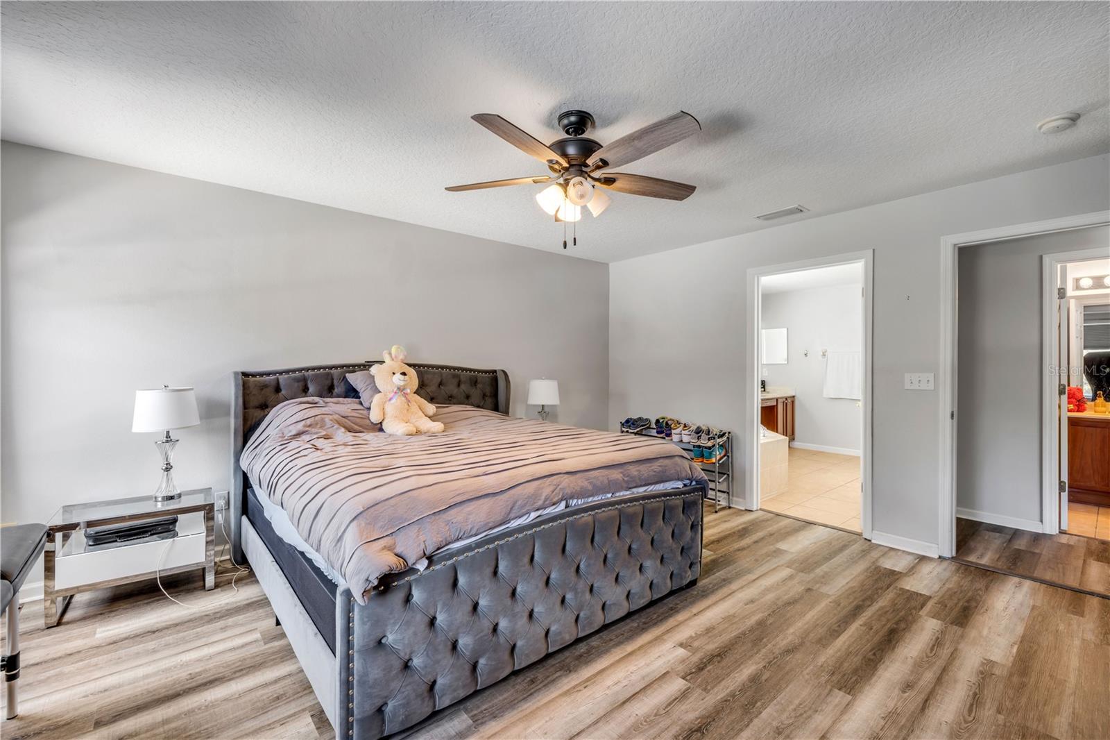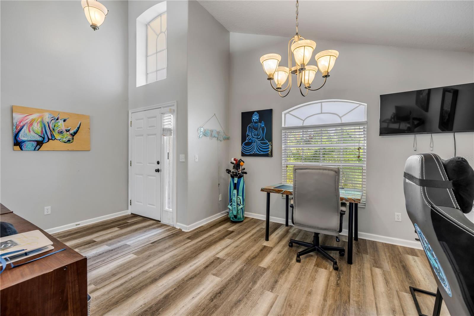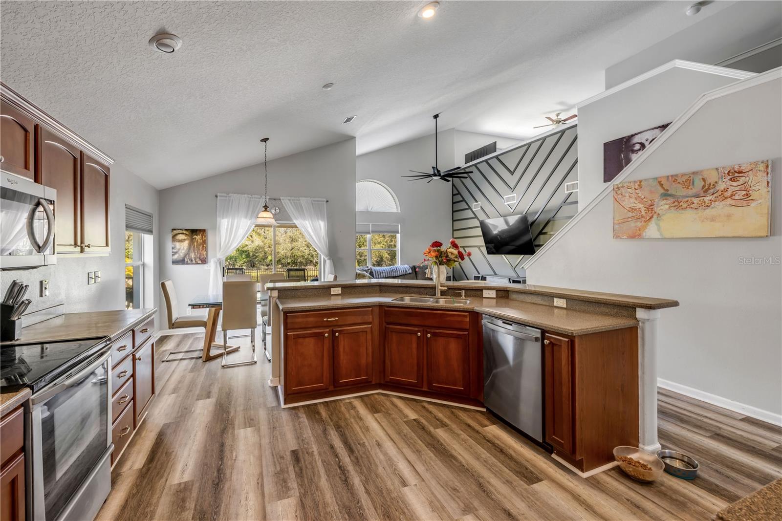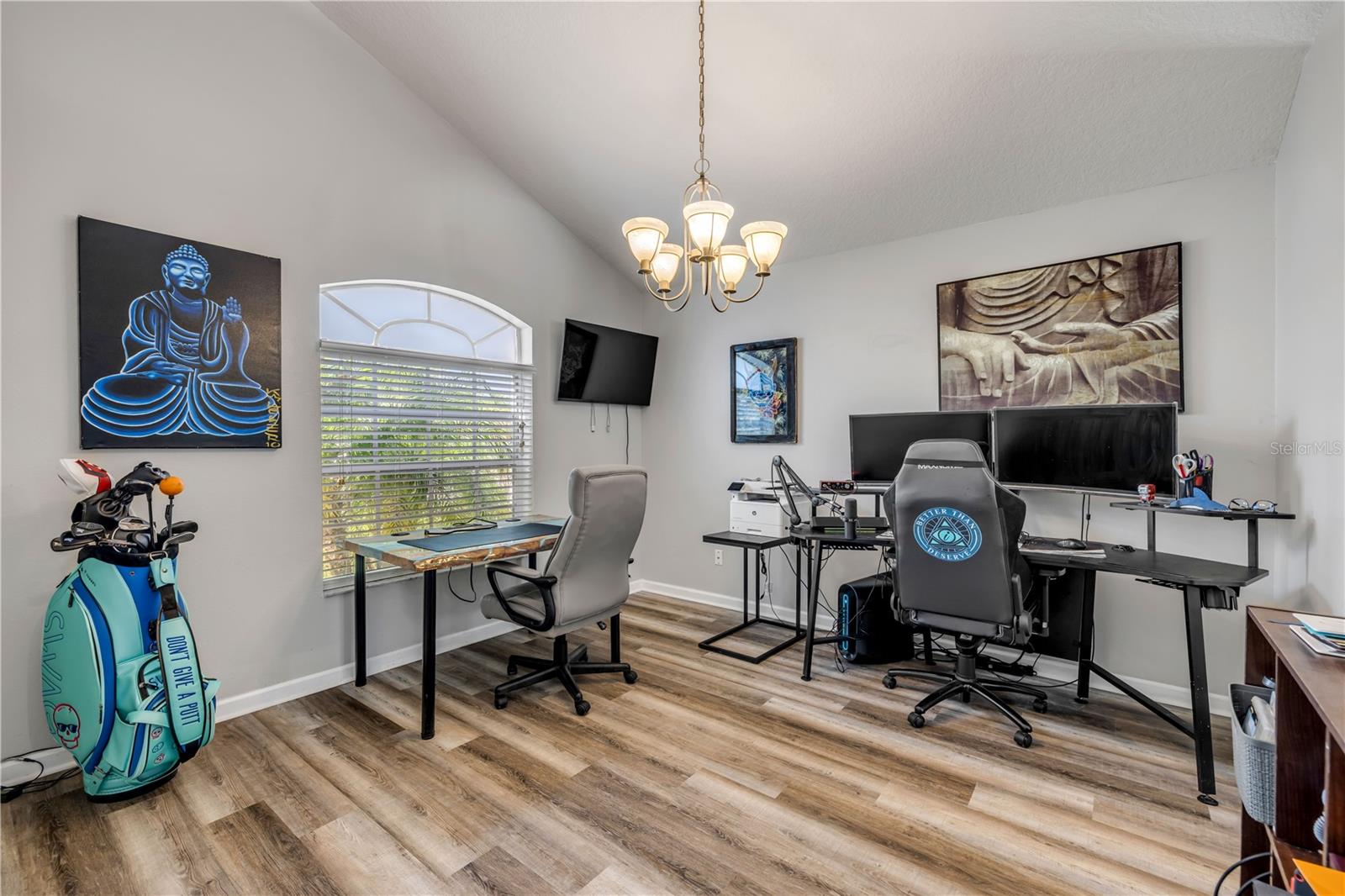 Welcome to 225 Perfect! This beautifully updated pool home is located in the heart of the desirable LPGA community. This floor plan is functionality at its finest, offering incredible communal living areas as well as privacy of bedroom locations. Your heated salt water pool with was constructed in 2022, completely enhancing your outdoor living experience. Entertain or unwind on your spacious patio and fully fenced yard overlooking the 3rd & 4th hole of the Jones course. This home has UPDATES throughout including brand-new LVP flooring (2025), accent walls (2025), new ceiling fans (2025) and stainless steel appliances. Roof and HVAC were replaced in 2020, solar panels added in 2022.