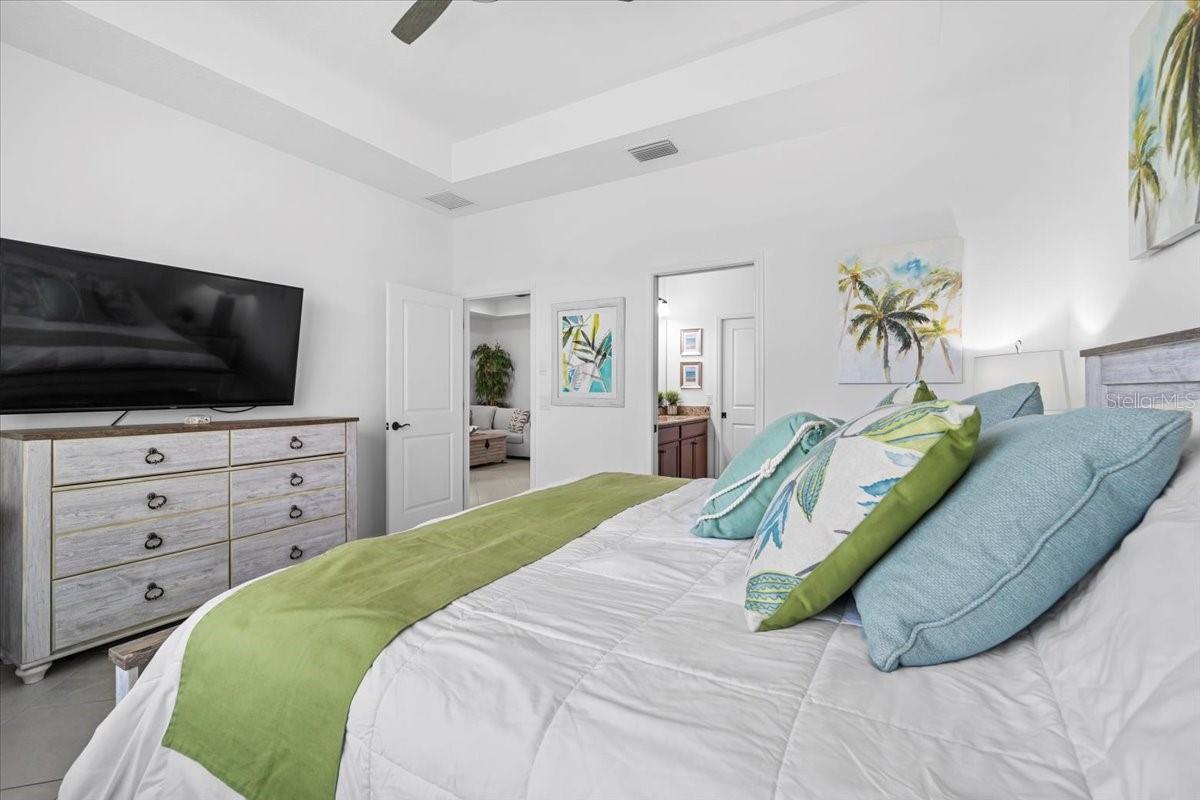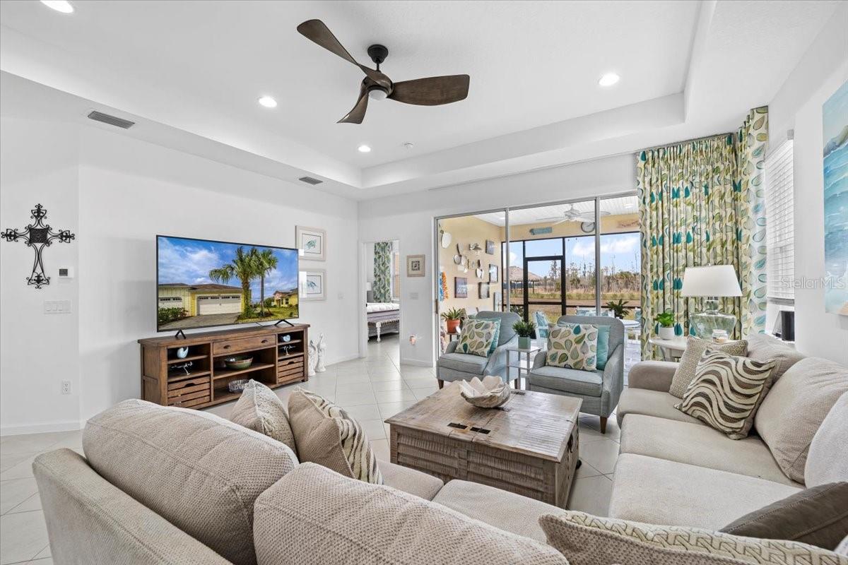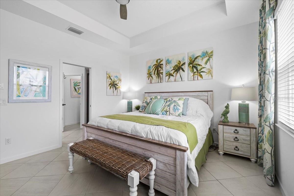 **The Ultimate *Margaritaville* Dream—The Best Villa in Town!** This is *the one* you've been waiting for! Welcome to the absolutely stunning Antigua Villa, the premier unit in the highly sought-after, historic Phase 1 district. Just a short stroll from the heart of Town Center, this home offers the very best of *Margaritaville* living—where every moment feels like a vacation. With professional design and furnishings by the developer, this villa is the epitome of luxury, offering the perfect blend of style, comfort, and convenience. This is the *best unit available*, and it shows in every exquisite detail. Step into an open-concept floorplan that immediately makes you feel like you’ve entered your own personal paradise. The spacious, light-filled living area features a plush sectional sofa and a sleek flat-screen TV, creating the perfect space for relaxation. The gourmet kitchen is a chef’s dream—fully stocked with high-end appliances, a coffee maker, elegant dishes, pots, pans, and everything you need to craft your favorite meals. The expansive dining room features a large table for entertaining, and the seamless flow from inside to the screened-in porch creates an ideal space for both intimate meals and lively gatherings. The master suite is pure luxury, featuring a king-size bed with premium linens, a private TV, and the perfect vibe for ultimate relaxation. The second bedroom offers a full-size bed and the same level of comfort, ensuring your guests enjoy a stay just as indulgent. With two impeccably designed bathrooms stocked with plush towels, including beach towels, you’re fully prepared for the resort-style experience. A laundry room and oversized two-car garage with overhead storage provide all the practical touches you need, but it’s the upgrades throughout the home that truly set it apart. With luxurious recessed lighting, quartz countertops, 42” cabinets with crown molding, and beautiful tile flooring throughout, this villa isn’t just a home—it’s an experience. Every inch of this space has been carefully curated to offer the ultimate in comfort and style. The screened-in porch with patio furniture is the perfect spot to unwind, while the high-end finishes throughout make this unit the absolute best available. Living here means access to resort-style amenities like the luxurious Paradise Pool, sports pool, and Fins Up Fitness Center. Play tennis, pickleball, bocce ball, and cornhole, or catch a movie at the Last Mango Theatre. Take a ride on the luxury motorcoach to the Private Beach Club and enjoy sun, sand, and surf every day. And with live entertainment at the Paradise Pool and Town Center Bandshell every weekend, you’ll feel like every day is a celebration of coastal living at its finest. This is more than just a home—it’s a lifestyle. Don’t miss your chance to live in the *best* villa available. *Margaritaville* perfection is calling—are you ready to answer?
