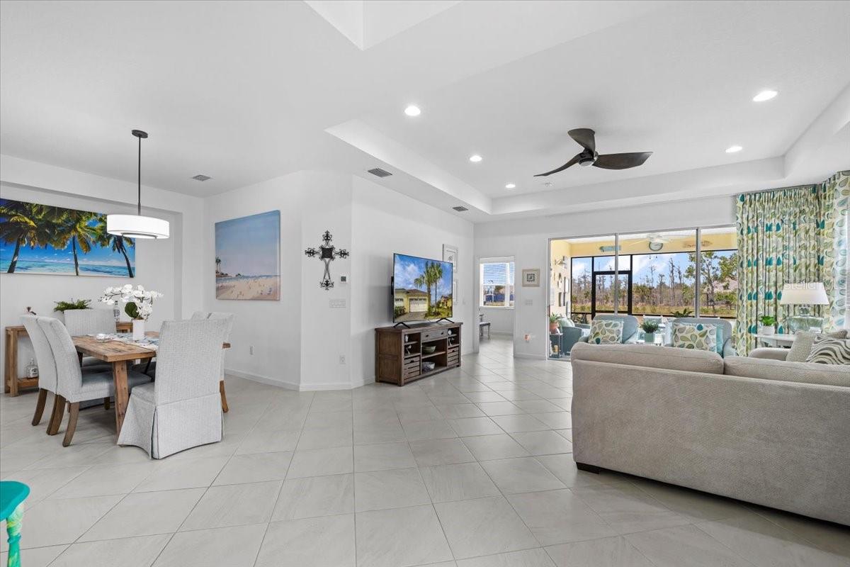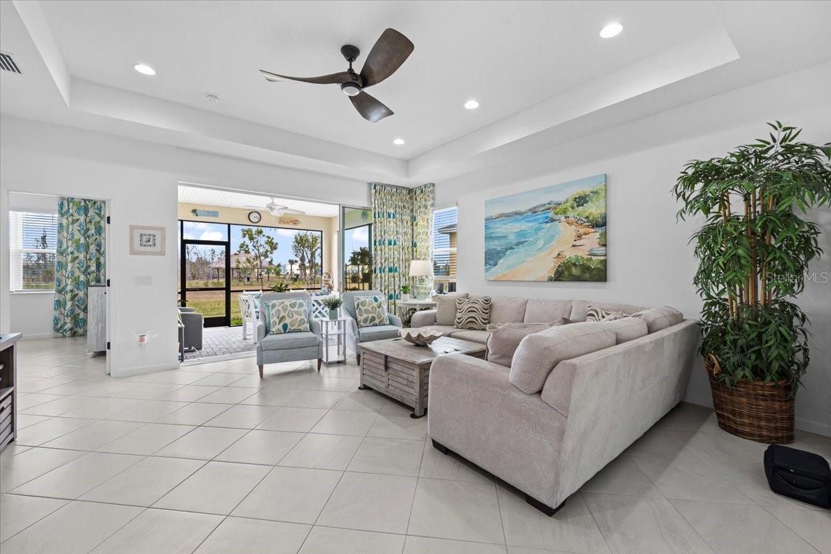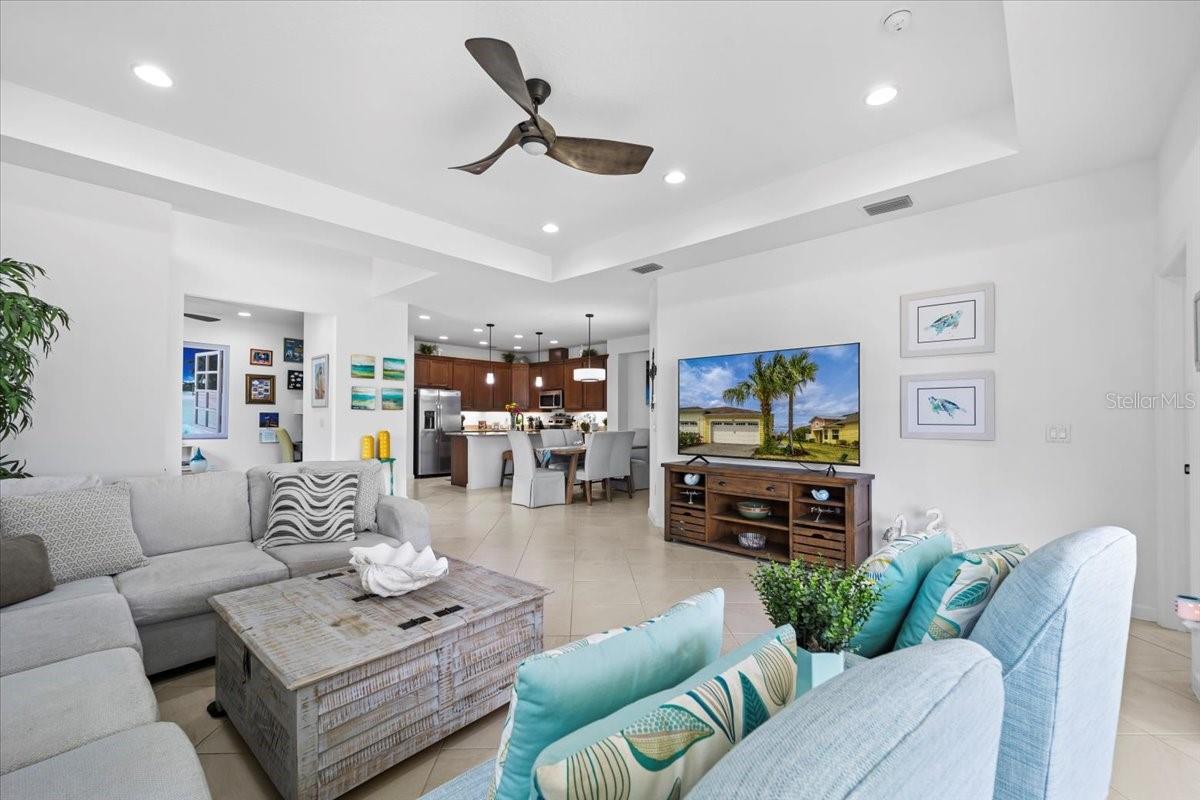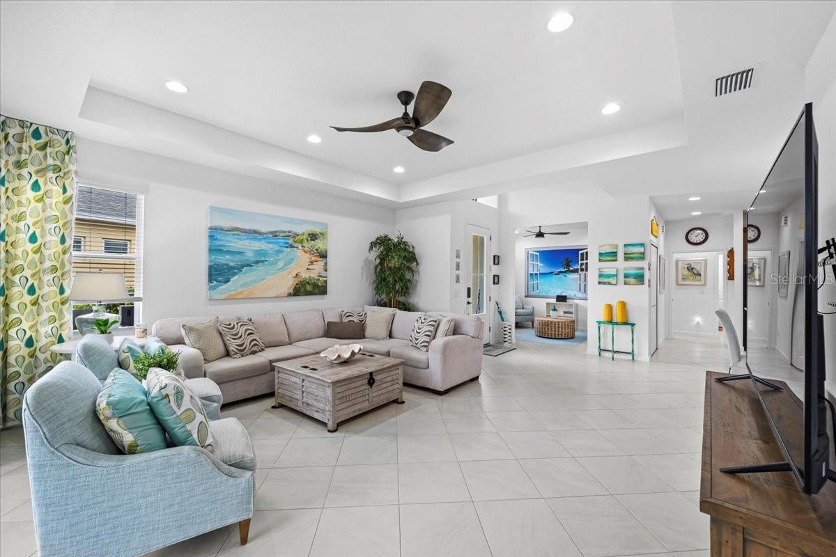 **The Ultimate *Margaritaville* Dream—The Best Villa in Town!** This is *the one* you've been waiting for! Welcome to the absolutely stunning Antigua Villa, the premier unit in the highly sought-after, historic Phase 1 district. Just a short stroll from the heart of Town Center, this home offers the very best of *Margaritaville* living—where every moment feels like a vacation. With professional design and furnishings by the developer, this villa is the epitome of luxury, offering the perfect blend of style, comfort, and convenience. This is the *best unit available*, and it shows in every exquisite detail. Step into an open-concept floorplan that immediately makes you feel like you’ve entered your own personal paradise. The spacious, light-filled living area features a plush sectional sofa and a sleek flat-screen TV, creating the perfect space for relaxation. The gourmet kitchen is a chef’s dream—fully stocked with high-end appliances, a coffee maker, elegant dishes, pots, pans, and everything you need to craft your favorite meals. The expansive dining room features a large table for entertaining, and the seamless flow from inside to the screened-in porch creates an ideal space for both intimate meals and lively gatherings. The master suite is pure luxury, featuring a king-size bed with premium linens, a private TV, and the perfect vibe for ultimate relaxation. The second bedroom offers a full-size bed and the same level of comfort, ensuring your guests enjoy a stay just as indulgent. With two impeccably designed bathrooms stocked with plush towels, including beach towels, you’re fully prepared for the resort-style experience. A laundry room and oversized two-car garage with overhead storage provide all the practical touches you need, but it’s the upgrades throughout the home that truly set it apart. With luxurious recessed lighting, quartz countertops, 42” cabinets with crown molding, and beautiful tile flooring throughout, this villa isn’t just a home—it’s an experience. Every inch of this space has been carefully curated to offer the ultimate in comfort and style. The screened-in porch with patio furniture is the perfect spot to unwind, while the high-end finishes throughout make this unit the absolute best available. Living here means access to resort-style amenities like the luxurious Paradise Pool, sports pool, and Fins Up Fitness Center. Play tennis, pickleball, bocce ball, and cornhole, or catch a movie at the Last Mango Theatre. Take a ride on the luxury motorcoach to the Private Beach Club and enjoy sun, sand, and surf every day. And with live entertainment at the Paradise Pool and Town Center Bandshell every weekend, you’ll feel like every day is a celebration of coastal living at its finest. This is more than just a home—it’s a lifestyle. Don’t miss your chance to live in the *best* villa available. *Margaritaville* perfection is calling—are you ready to answer?