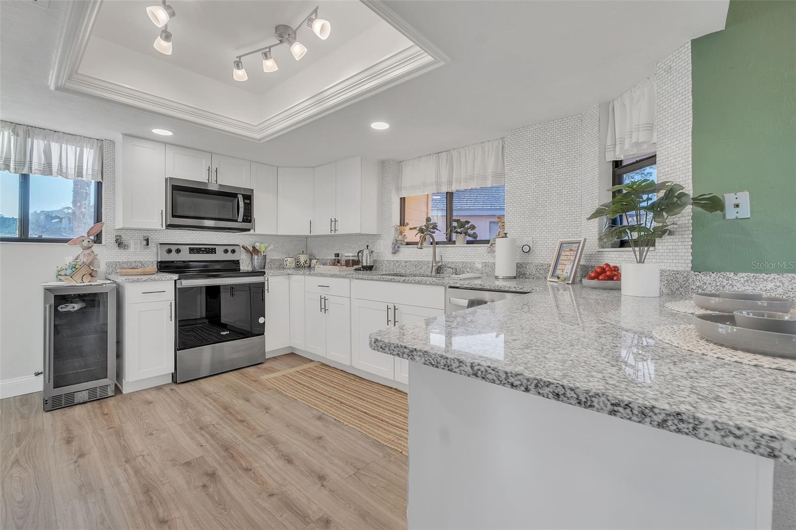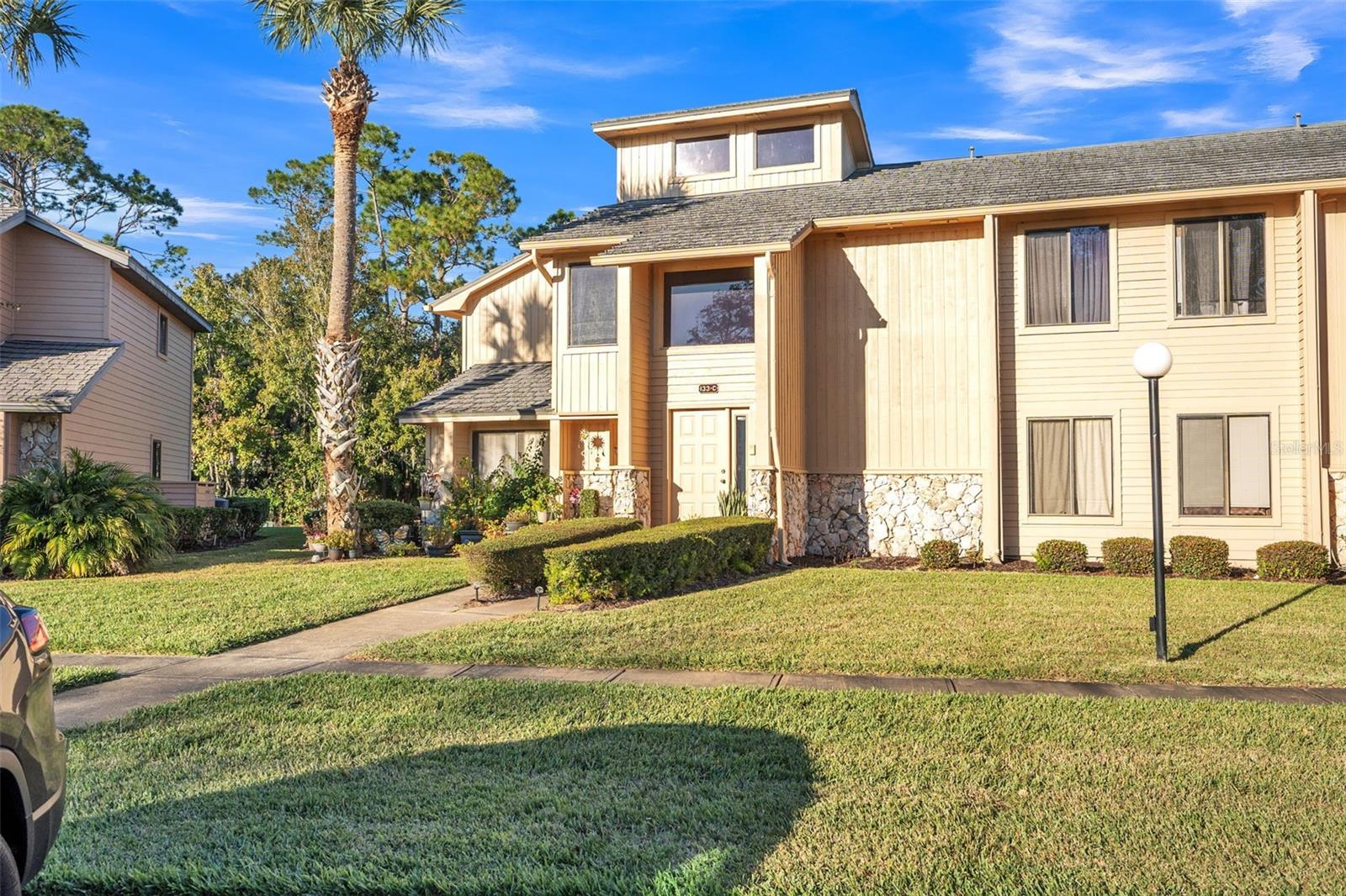 Step into this stunningly updated condominium nestled in the serene Sandpiper Lakes at Pelican Bay, Daytona Beach. This beach lover's paradise boasts a fully renovated two-bedroom, two-bath unit that exudes modern elegance and comfort. Prepare to be impressed by the luxurious upgrades that this home offers. The kitchen shines with stainless steel appliances and sleek granite countertops, perfect for whipping up gourmet meals. Marble countertops in the bathrooms add a touch of sophistication, while the porcelain-tiled bathrooms and entryways provide durability and style. The waterproof laminate flooring throughout the rest of the home ensures easy maintenance and a cohesive look. The airy great room, with its soaring vaulted ceilings accented by wood beams and lighting fixtures, creates a spacious and inviting atmosphere. Enjoy tranquil views of the lush conservation area from every room, or step out onto your private balcony for an even closer connection to nature. Parking is a breeze with one designated space directly in front of the unit, plus additional spaces for guests. Residents of this exclusive golf course community enjoy amenities such as an 18-hole golf course and a cozy pub. And when the call of the waves beckons, you're just a short drive away from Daytona's beautiful beaches, the iconic Daytona Speedway, and the historic Ponce Inlet Lighthouse. Experience the ultimate coastal lifestyle where luxury meets the laid-back charm of beachside living.