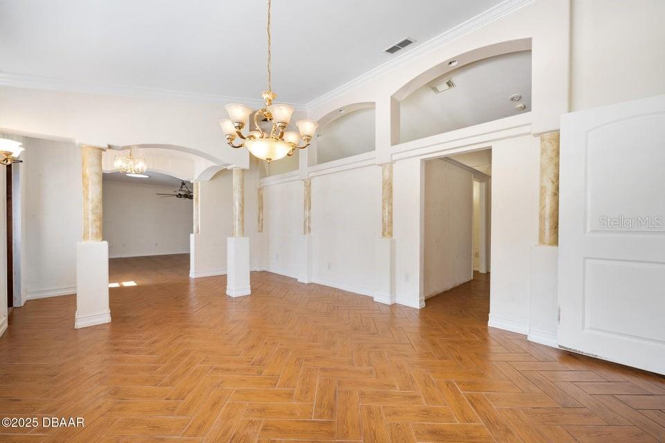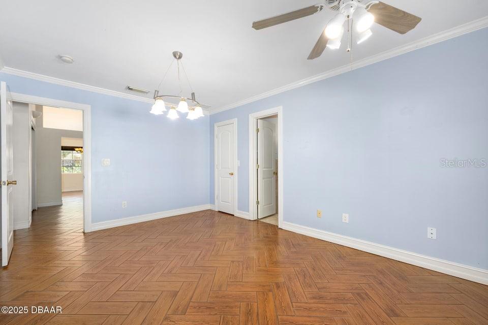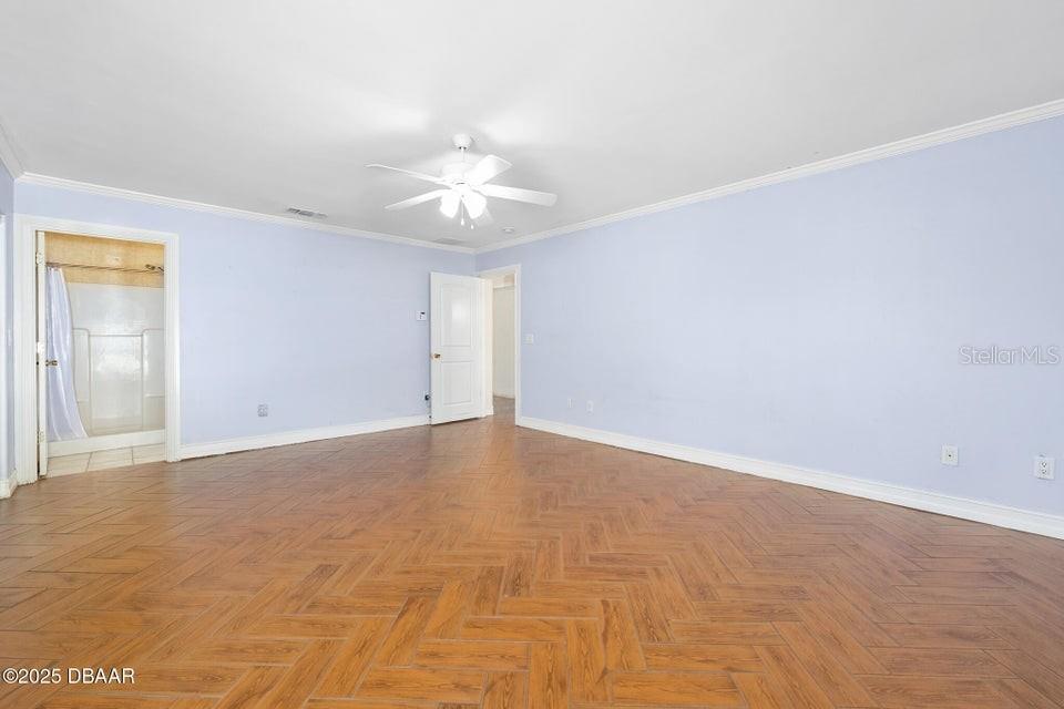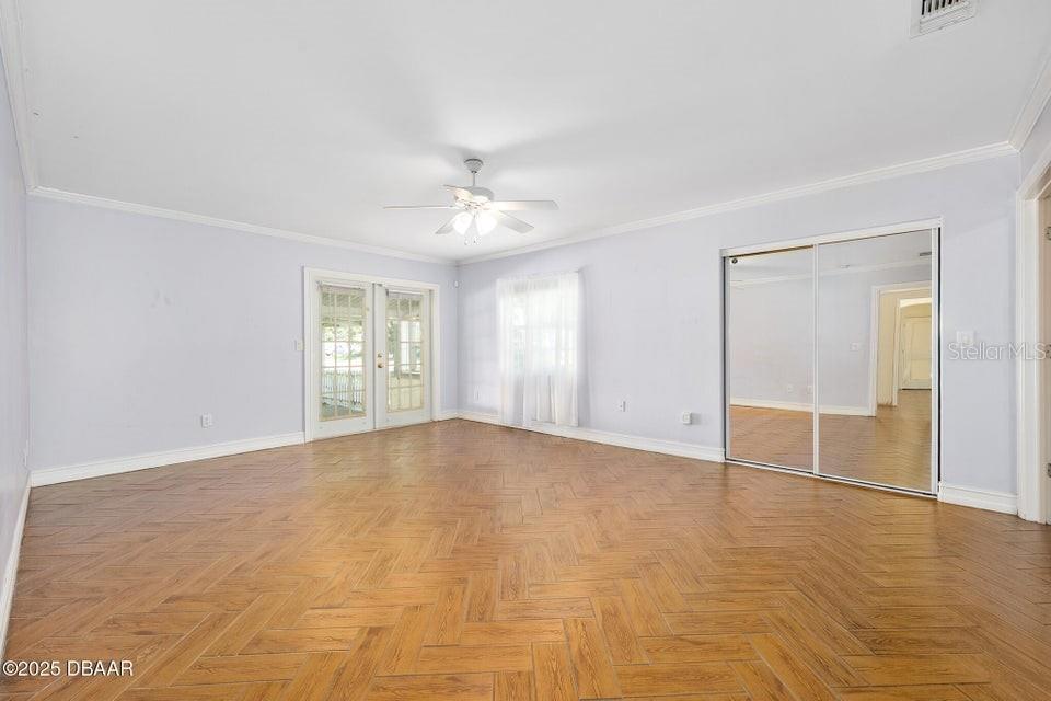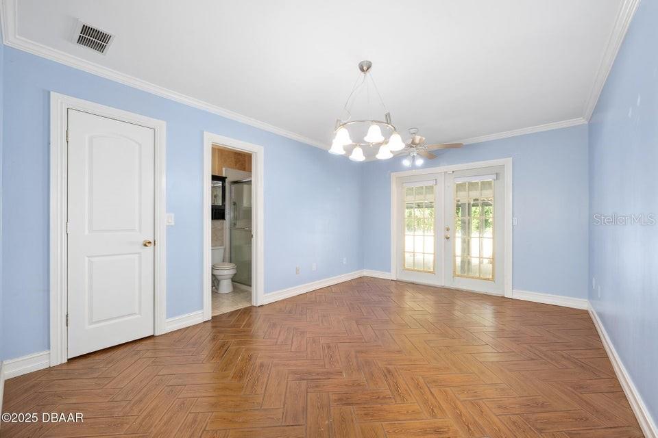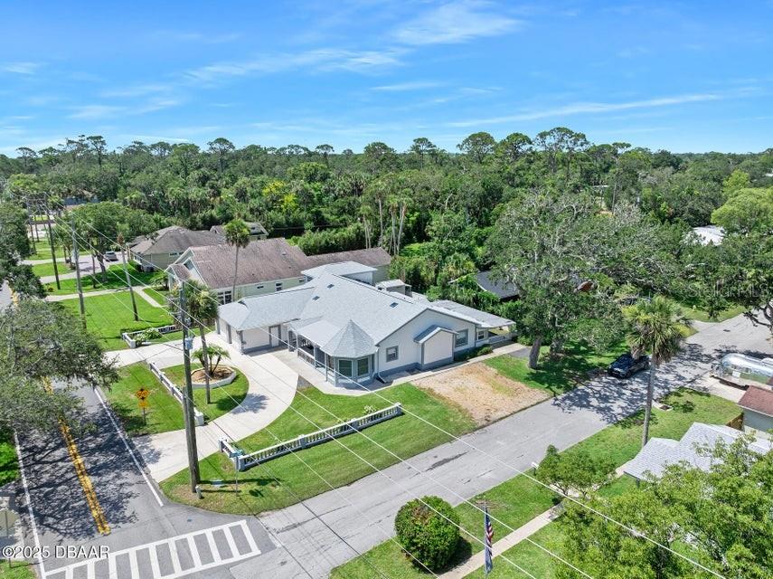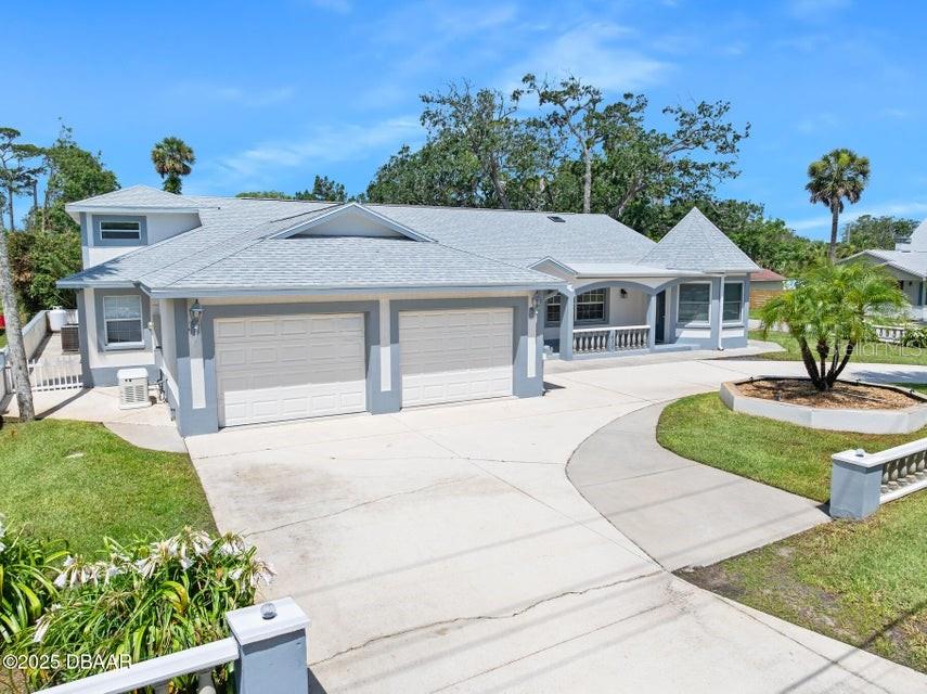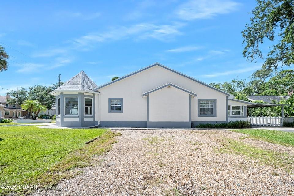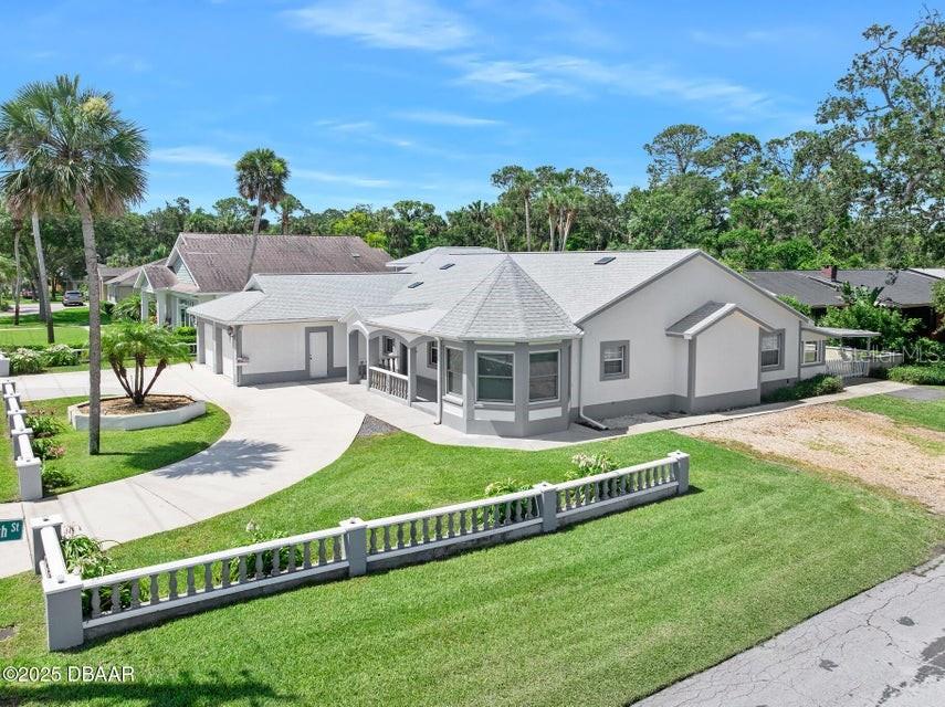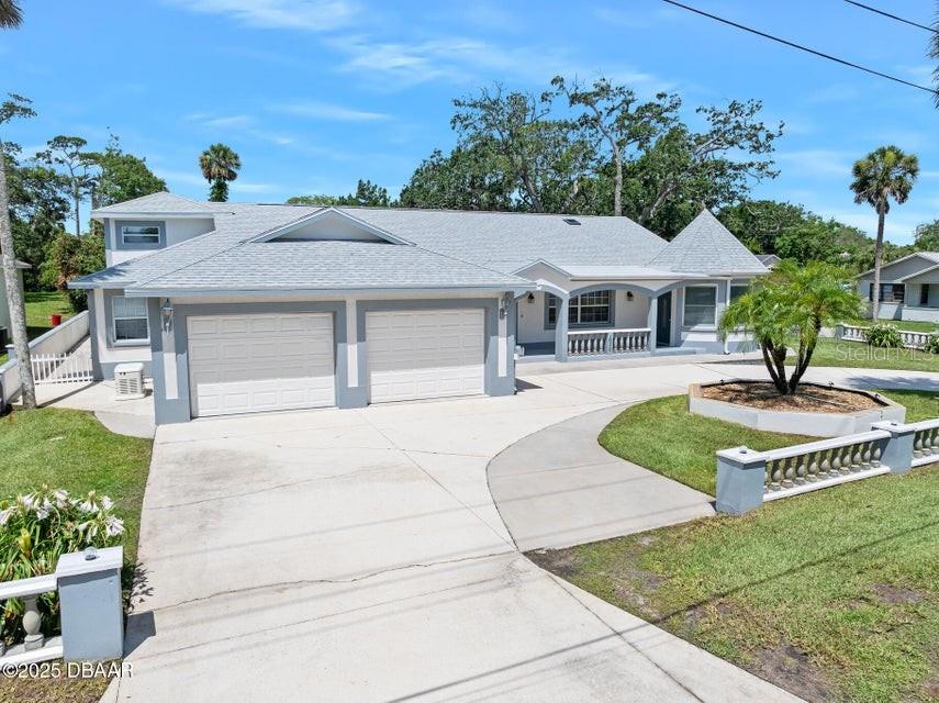 One or more photo(s) has been virtually staged. **MAJOR PRICE ADJUSTMENT** CORNER LOT, RIVER VIEWS... Here's a home that offers incredible flexibility for multi-generational living or a large family, providing plenty of private spaces for everyone. No flood zone, No HOA. This spacious home features five sizable bedrooms on the main level, each with an exterior door leading to the back patio. Four of these bedrooms also have private bathrooms. Upstairs, you'll find an additional bedroom that's part of a potential in-law suite, guest quarters, or a perfect space for a college student, teenager, or extended family, complete with a full kitchen and laundry hookups. The main kitchen boasts a charming breakfast nook with amazing views of the river, overlooking city-maintained property that includes a park and fishing dock. The large living and dining rooms are complemented by a centrally located office or den, ideal for a separate living area or group projects. This home also offers a perfect setup for a huge crafts room, yoga studio, gym, or activities room. You'll find abundant parking with a two-car garage, a circular driveway, a carport, and additional gravel side yard parking. Recent updates include a NEW ROOF in 2023 and some new windows in 2022. The home is also equipped with a WHOLE-HOUSE GENERATOR, a hot water heater, and a jetted tub in the primary bath, all new in 2020. The AC unit is approximately 10 years old and recently serviced. This excellent location is conveniently near parks, a boat ramp, fishing spots, grocery stores, excellent restaurants, pubs and is just a short distance from the World's Most Famous Beach. All information recorded in the MLS is intended to be accurate but cannot be guaranteed.