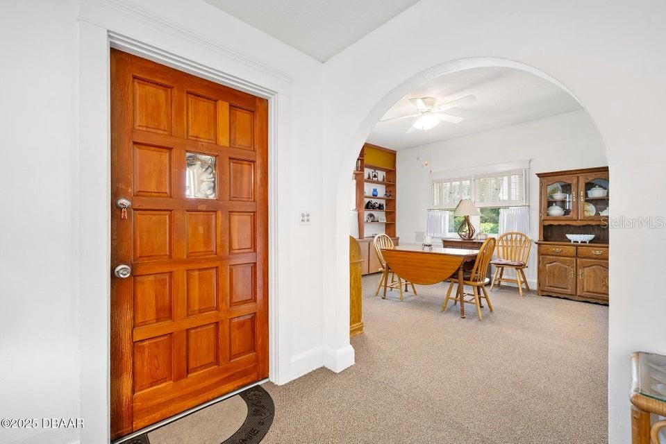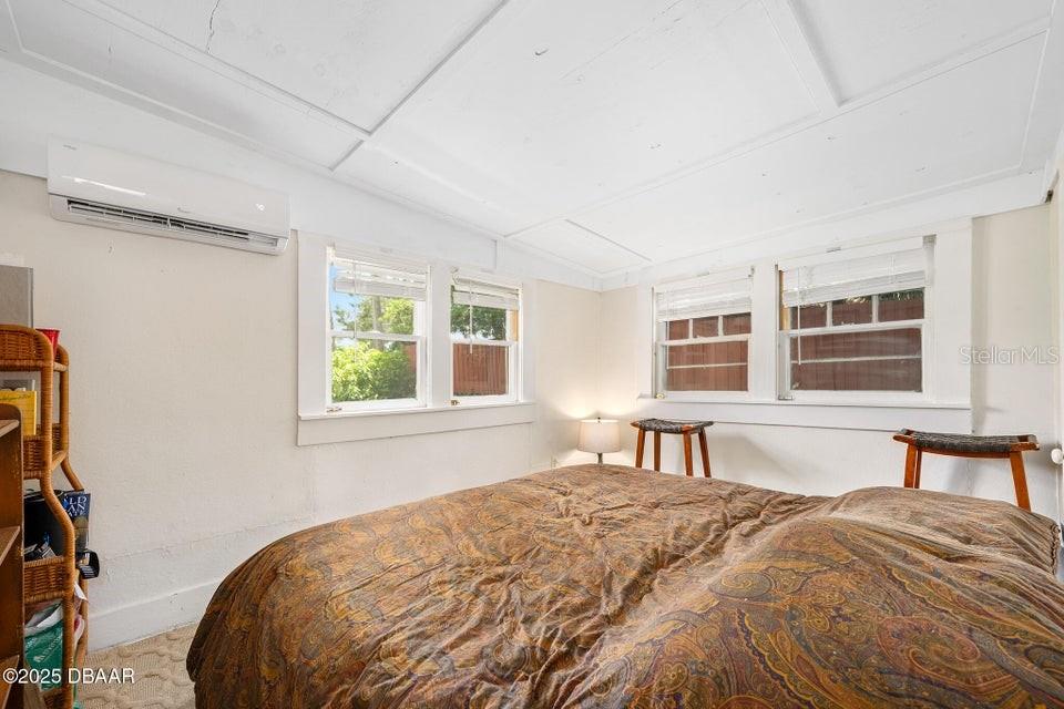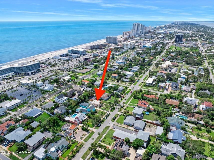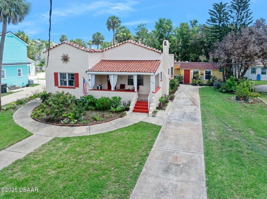 HISTORIC DAYTONA BEACHSIDE... This captivating, one of a kind, 1918 Spanish-inspired residence offers a unique blend of historic charm and modern updates and a NEW ROOF. The interior features arched openings, high ceilings, intricate woodwork, and a decorative fireplace with a mosaic-tiled hearth. The mid-century kitchen, boasting ample light and storage, complements a spacious formal dining room equipped with built-in shelving and storage. Beyond the inviting living room, you will find a generously sized guest bedroom, the sun-drenched ''sunroom'', a convenient hallway lavatory, a sizable primary bedroom suite, and a versatile den/office/laundry room with direct access to the backyard and outdoor shower. The property has been meticulously maintained with annual inspections, including a recent exterior painting, updated electrical in 2022, a new AC and water heater in 2021, and a new roof in 2017. Additionally, a spacious one-bedroom, one-bathroom apartment or guesthouse, ideal for income production, features newer AC units and is currently occupied by a long-term tenant who wishes to remain. This desirable location, with NO HOA, offers convenient beach access just 4 minutes away, near the Hard Rock, the Seabreeze entertainment corridor, lots of restaurants and pubs, the Bandshell, boardwalk, fishing pier, and the World's Most Famous Beach. All information recorded in the MLS is intended to be accurate but cannot be guaranteed.