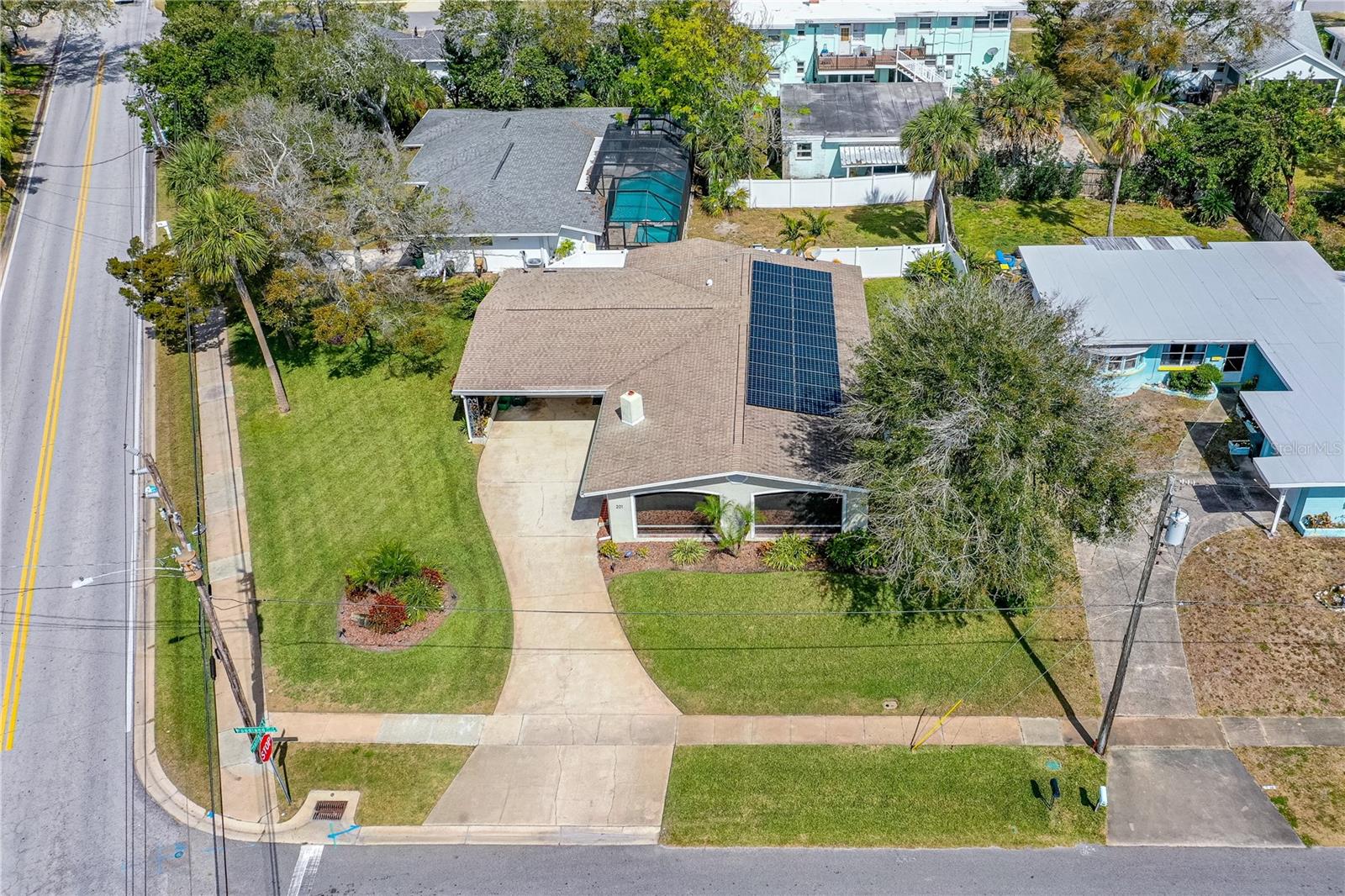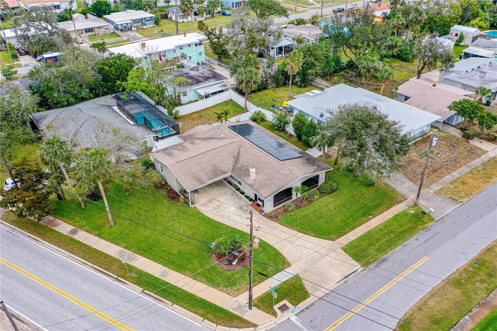 This spacious 4 bedroom, 3 bathroom updated home boast just under 2,000 sqft of living area and stunning Intracoastal views! As you enter the home you are greeted by gleaming hardwood floors graced with river views through the plantation shutters and picture windows. The updated kitchen has granite countertops, shaker cabinets and stainless appliances. Enjoy your morning coffee on the expansive screened front porch or wind down after a hard day's work and watch the sunset. There are three separate entrances to the home. Makes for convenient shared living. Use all 4 bedrooms as bedrooms or use one for an office and one for a den. En-suite with full bath and mini split AC. Covered screened back porch, fenced back yard. Mature landscaping. Oversized inside laundry has plenty of storage space. Huge corner lot. 18 x 12 covered parking. Oversized driveway. Paver back patio perfect BBQ's. Home is equipped with SUNPOWER - A WHOLE HOME SOLAR SYSTEM that is paid for. SAY GOODBYE to high electric bills. Short walk to the World's Most Famous Beach. Walking distance to, schools, shops, restaurants & places of worship. Welcome Home! All information recorded in the MLS is intended to be accurate but cannot be guaranteed.