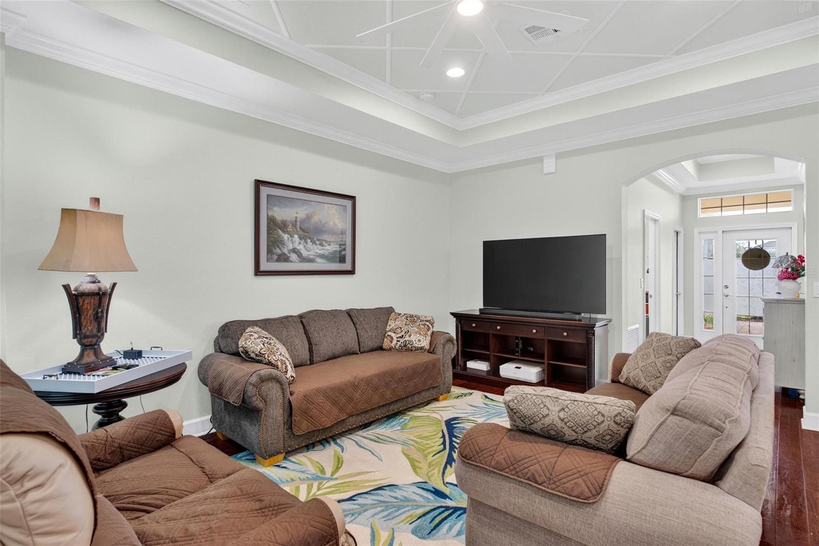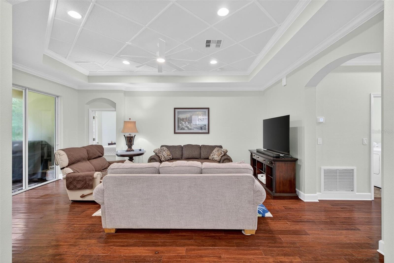 Daytona Beach Beauty in LPGA! This one-of-a-kind former custom model home is a true showstopper—blending upscale finishes with a relaxed coastal vibe. Located in the sought-after LPGA community, this single-story gem backs to a peaceful conservation area, giving you privacy and tranquil views. Grande Champion offers a nearby community pool with a cabana. Step inside to discover high-end upgrades throughout, including solid hardwood floors, elegant crown molding, decorative tray ceilings, dual mantels with smoked mirrors, custom master closets, finished garage with extra recessed lighting, freshly painted and refined details at every turn. The gourmet kitchen is an entertainer’s dream, boasting granite countertops, premium stainless-steel appliances, and plenty of space to gather. The huge spa-inspired owner’s bath is your private oasis, perfect for unwinding after a day of sun and fun. All bedrooms feature plush, high-quality carpets for ultimate comfort, while stylish new chandeliers and fans add a modern touch. New architectural roof added in 2022, hybrid water heater 2025 and AC in 2022. Enjoy the vibrant Daytona Beach lifestyle, world-famous beaches, NASCAR excitement, premier dining, and shopping are just minutes away. Close to Bethune-Cookman University, Embry Riddle Aeronautical University and Daytona State College. This move-in-ready home combines comfort, style, and location and is an absolute must-see!