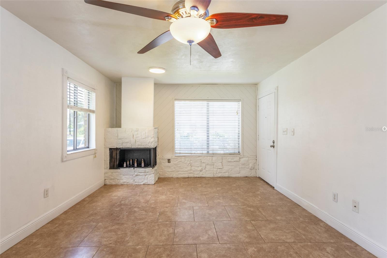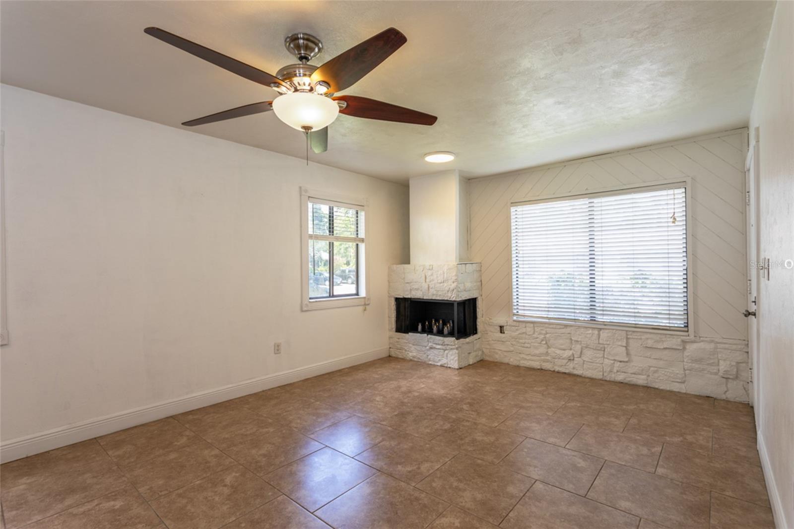 This move-in-ready home combines charm, convenience, and value—all in one package, with HOA perks! Enjoy the comfort of single-family living with none of the hassle in this fully refinished 3-bedroom, 2-bath Featuring a brand-new roof and HOA-covered lawn care, trash service, and access to a community pool, This home offers low-maintenance living in an established neighborhood. Step inside to find 20-inch tile flooring throughout, a wood-burning fireplace, and a stylish wood-and-stone accent wall that adds warmth and character. The kitchen boasts tile countertops and flows seamlessly into the open living area -perfect for entertaining or relaxing. The primary suite includes a private bath & walk-in closet, while the two additional bedrooms overlook the backyard and share a second full bath, ideal for guests or home offices. A washer & dryer are conveniently located in the attached shed just off the kitchen. Roof 2022, Hot Water Heater NEW! Schedule your private viewing today!