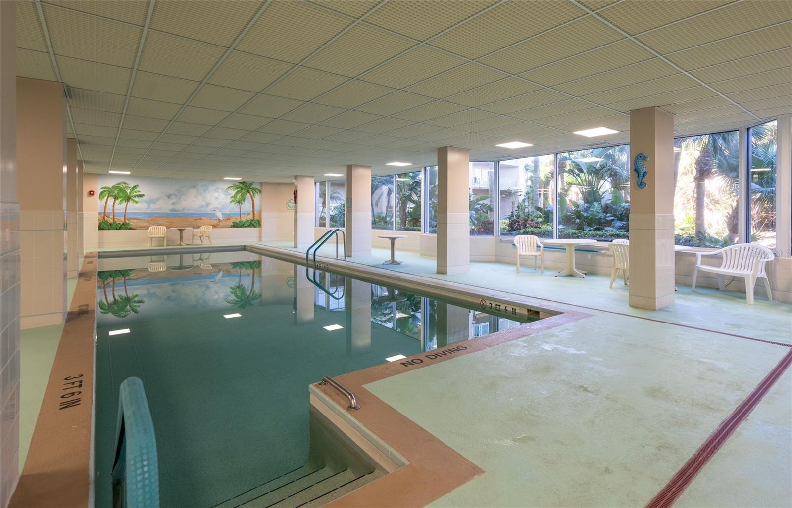 The views and sunsets in this 2 bedroom / 2 bathroom condo are stunning!!! Located between the intracoastal waterway and the Atlantic Ocean, you have full river and Ocean views from your living room, owner's retreat, and the balcony. You also have a full view of the outdoor pool area. Freshly painted thru out condo. Blank slate for you ro make this your Dream Home! This is a split floor plan and the owner's retreat with a walk-in closet, double vanity, separate shower, and a soaking tub. The laundry is also located in the unit. The amenities are plentiful and well maintained. Indoor and outdoor heated pools, luscious landscaping, inground hot tub, sauna, workout room, party room that includes a kitchen for a small deposit, showers, bathrooms, library, par 3 golf course and tennis court. There is indoor bicycle storage, owner's storage, designated motorcycle parking. Handicap Accessible