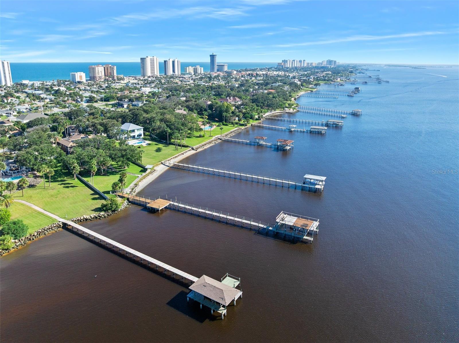 Fabulous waterfront estate home perched high on a bluff offering commanding views of the intracoastal waterway across the beautiful oak shaded riverfront lawn. With almost 8000 Sq Ft of high end custom construction, the home is situated on nearly 1 acre of elevated land and offers a 5 bedroom, 4.5 bath main home in addition to a detached 1 bed, 1 bath waterfront guest house and a 6 car garage. Enter the home to find a tremendous waterfront great room where multiple living, dining and entertaining spaces flow together seamlessly under volume ceilings while enjoying panoramic water views. A series of French doors open onto the fabulous screened paver appointed lanai that surrounds the crystal blue pool and serves as the ultimate area to entertain or relax with a grand poolside wet bar, dedicated pool bath, dry sauna and firepit. The custom home is truly one of a kind with a magnificent ground floor owners' suite with a private waterfront den with fireplace, cavernous walk-in wardrobe and a fantastic bath with double vanities, jacuzzi tub and steam shower. Eat-in island kitchen opens into the great room and is just adjacent to the lovely formal dining room with a gas fireplace. A handcrafted solid wood wine bar is just off the stately dining room and just steps from the poolside patio. A choice of two staircases will carry you to the second floor where three bedrooms and multiple open air lofts and landings await with panoramic views of the water and the rolling green lawn. The magnificent waterfront grounds below the elevated pool deck features a fabulous gazebo centered between towering live oaks. A concrete pathway stretched to the base of the deepwater dock with a sun deck, boat house w/lift and second story observation level above. The unique lot is situated at the end of a quiet cul-de-sac and allowed space for the longtime owner to construct a lovely guest quarters atop a seperate 1.5 car garage with a waterview living room, bedroom and balcony. Two more connecting oversized showroom garages with a total of 5 large spaces are ideal for the collector finished with tile floors and gracious windows for plenty of natural light and breezes while tinkering. The home has been outfitted with a Generac generator. A new 50 rear tile roof was installed in 2018. The quiet location contributes to the undeniable serenity. Sit beneath the oaks and watch the sunset while you listen to the Atlantic Ocean crash the shore from just two blocks away. Jump in your boat and be on Ponce Inlet's Disappearing Island in mere moments or tie up to the dock at Down the Hatch Seafood to listen to live music and enjoy a fish sandwich. This property has been consistently maintained by a knowledgeable longtime owner who is market savvy and has priced this for immediate sale.