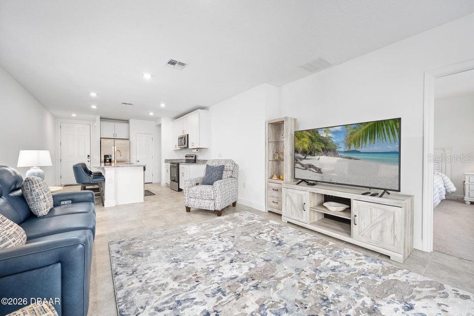 Do not miss this amazing opportunity to own a practically NEW, energy-efficient 2023 home that has been barely lived in PLUS it is FULLY Furnished! This crisp design package sits on a beautiful pond lot with peaceful views from the great room and the Primary Suite. The chef-inspired kitchen overlooks the open living space, making it perfect for everyday living and entertaining. The living room furniture includes all recliners ideal for relaxing or hosting guests. Built by Meritage Homes, this home features smart home technology including a smart thermostat, smart front door lock, video doorbell, smart garage opener/app control, and a smart home hub. Enjoy energy-saving upgrades such as low-E windows, energy-efficient HVAC, and home sealing with improved ventilation. Everything is 2023 and truly move-in ready! Schedule your private showing today—this one won't last long, especially fully furnished! Enjoy an unbeatable location just a short 5-minute walk to the beautiful LPGA Country Club, offering two 18-hole championship golf courses, a pool, and on-site dining. Tucked away in a quiet and convenient setting, you'll love being just minutes to I-4 and I-95 for easy travel to cruise ports and international airports. Spend your days at the beach with Daytona and Ormond only 10 miles away, plus New Smyrna Beach's popular dining and wine scene nearby. Close to everything including Tanger Outlets, PopStroke, Buc-ee's, Publix, Trader Joe's, Costco, Sam's Club, and Sprouts coming soon. Nearby schools include Embry-Riddle, Daytona State College, Bethune-Cookman, UCF, Stetson, and more. Plus, enjoy world-famous attractions like NASCAR, Rolex 24 and Daytona International Speedway, with Orlando, Jacksonville, St. Augustine, and theme parks all within an hour or less!