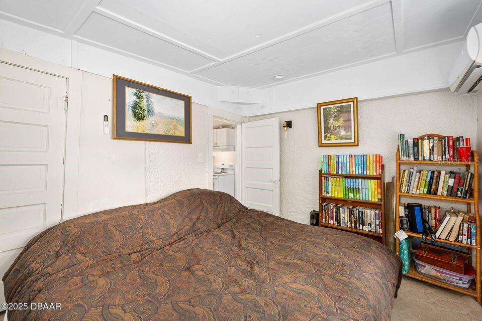 HISTORIC DAYTONA BEACHSIDE... This captivating, one of a kind, 1918 Spanish-inspired residence offers a unique blend of historic charm and modern updates and a NEW ROOF in 2025. The interior features arched openings, high ceilings, intricate woodwork, and a decorative fireplace with a mosaic-tiled hearth. The mid-century kitchen, boasting ample light and storage, complements a spacious formal dining room equipped with built-in shelving and storage. Beyond the inviting living room, you will find a generously sized guest bedroom, the sun-drenched ''sunroom'', a convenient hallway lavatory, a sizable primary bedroom suite, and a versatile den/office/laundry room with direct access to the backyard and outdoor shower. The property has been meticulously maintained with annual inspections, including a recent exterior painting, updated electrical in 2022 and a new AC and water heater in 2021. Additionally, a spacious one-bedroom, one-bathroom apt or guesthouse, ideal or income production, features newer AC units and is currently occupied by a long-term tenant who wishes to remain. This desirable location, with NO HOA, offers convenient beach access just 4 minutes away, near the Hard Rock, the Seabreeze entertainment corridor, lots of restaurants and pubs, the Bandshell, boardwalk, fishing pier, and the World's Most Famous Beach. All information recorded in the MLS is intended to be accurate but cannot be guaranteed.