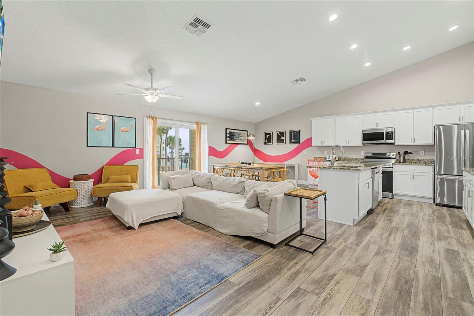 Coastal living with beach access. New townhome community with spacious living, 3 bedrooms, 2 1/2 baths and 2 car garage. Across the street is a county beach access walkover. enter the unit on ground floor next to garage. Two guest bedrooms, bath and utility room on ground floor. Second floor is an expansive, open space for kitchen dining and great room. Small balcony provides breezes and peaks at the ocean and county beach access. Spacious living, large master bedroom and closet with contemporary bathroom. Perfect for year-round living in a coastal lifestyle or second home. Short term rentals allowed. Unit comes fully furnished so take advantage of this opportunity. Avoid high cost HOA's and condos. Live in this contemporary styled townhome.