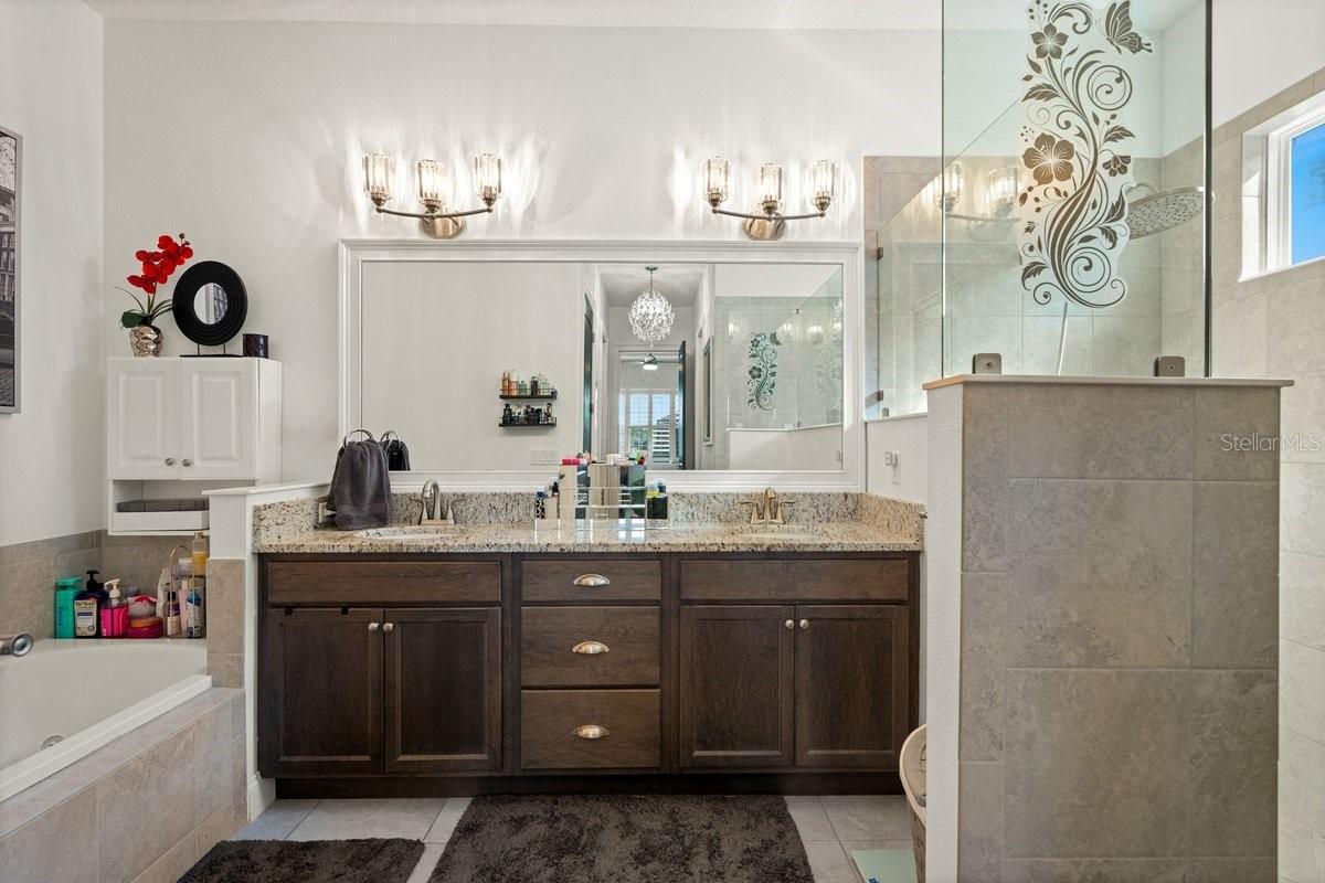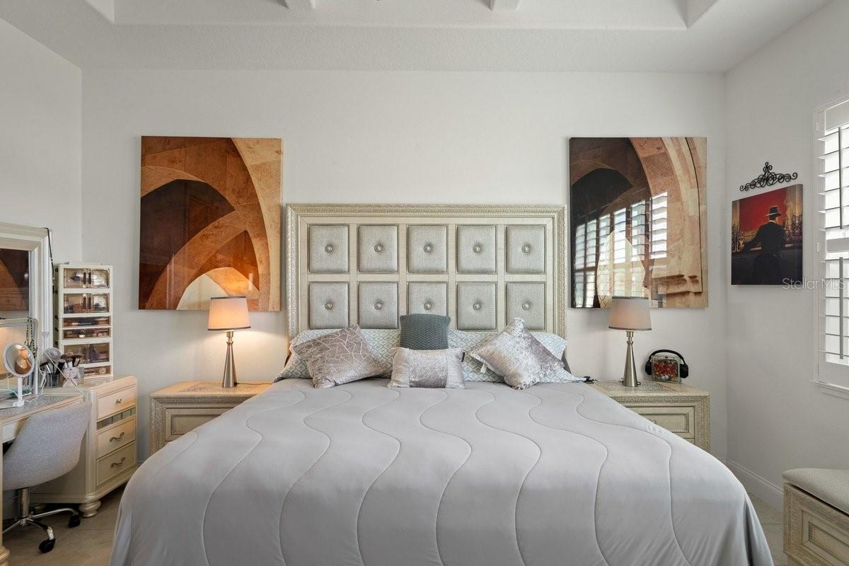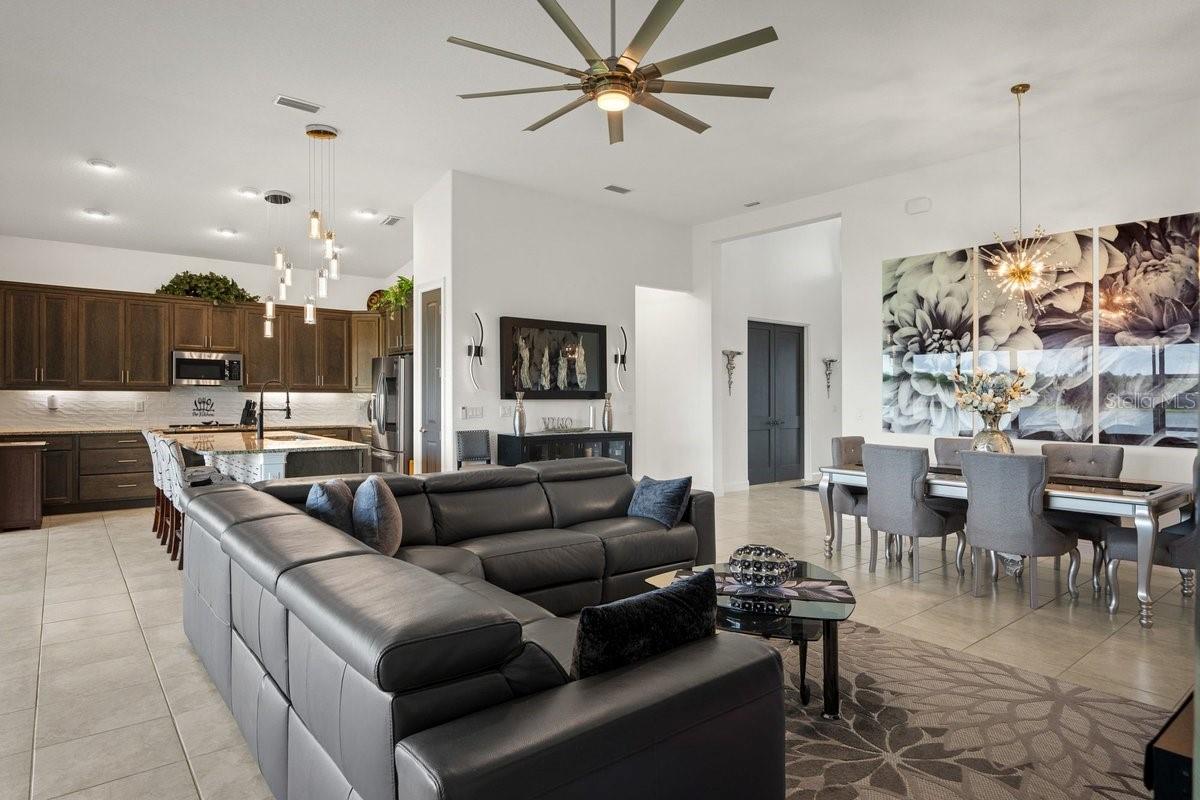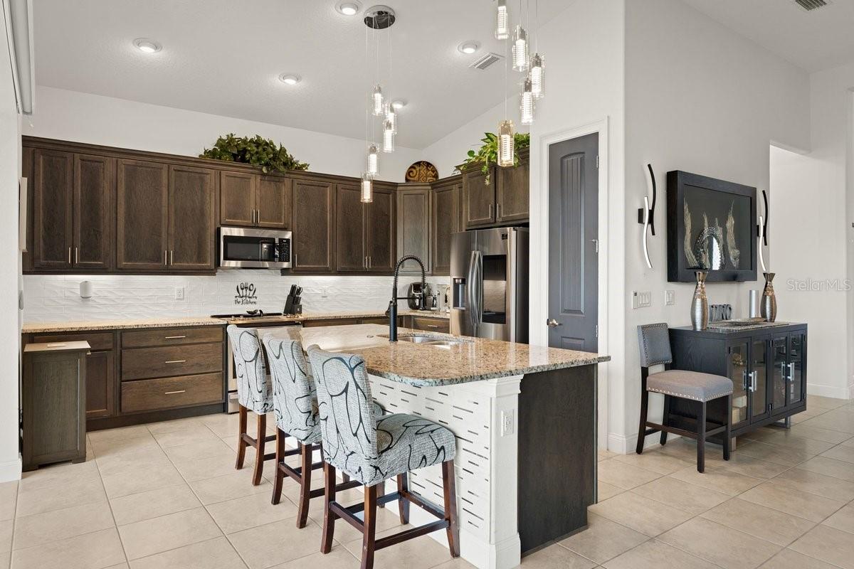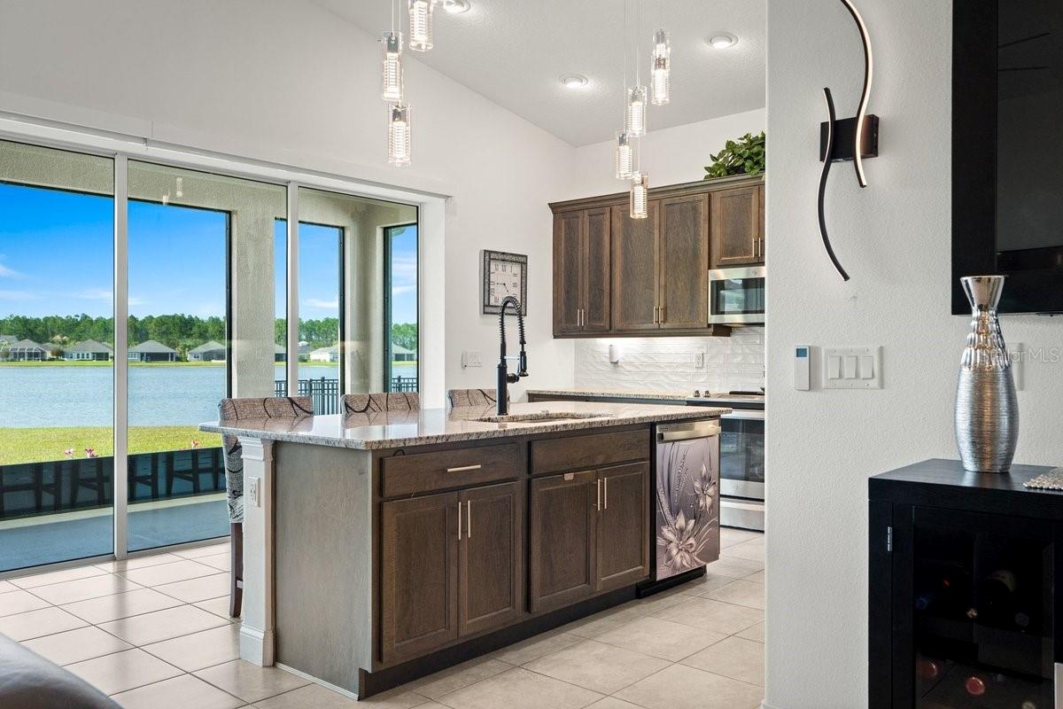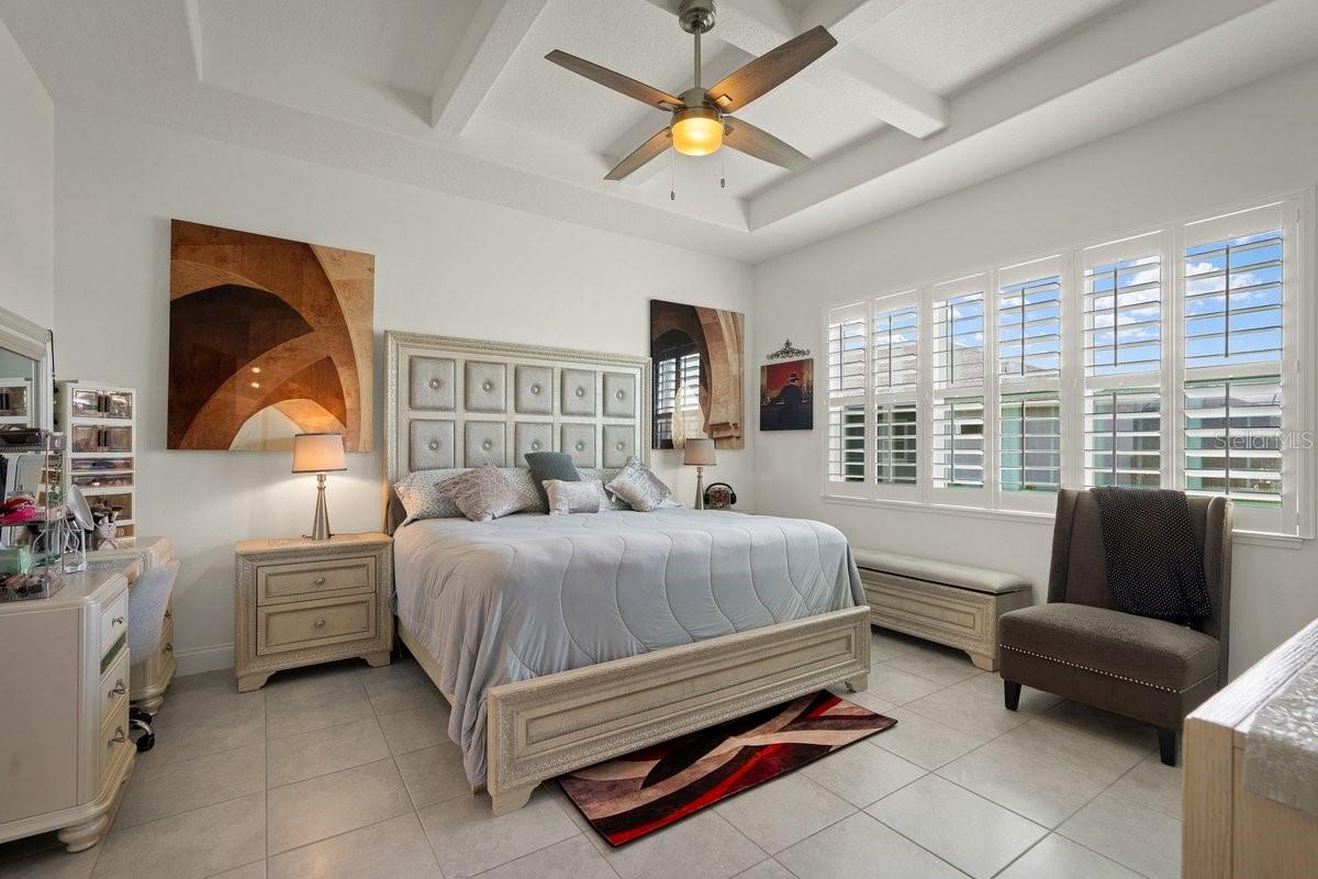 Space, light, and standout design come together in this impressive Mosaic residence that checks every box—and then some. From the moment you step inside, the scale is undeniable: soaring ceilings, a sprawling open layout, and sleek porcelain tile throughout create a clean, elevated feel that’s both modern and inviting. The heart of the home is built for real living and real entertaining—a wide-open kitchen with custom soft-close cabinetry, granite island, and stainless steel appliances flows effortlessly into an expansive living space. Collapsible sliders with remote blinds frame tranquil pond views and open to an extra-long screened, covered porch, extending your living space outdoors in a way that feels seamless. This home delivers on flexibility and privacy with a true split plan and multiple ensuite bedrooms, including a secondary suite ideal for guests or multigenerational living. The primary suite is a retreat of its own with coffered ceilings, dual walk-in closets, and a spa-style bath featuring a soaking tub, oversized shower, and elevated finishes. Additional highlights include 8-foot doors throughout, a spacious indoor laundry room, and a 3-car garage with a finished epoxy floor. Set in the highly sought-after Mosaic community, residents enjoy a vibrant lifestyle with a resort-style pool, playground, walking paths, and regular community events, all just minutes from the beach. GOLF CART INCLUDED IN THE PURCHASE OF THE HOME!!!! Homes with this level of space, finish, and value don’t sit—schedule your showing and see why.