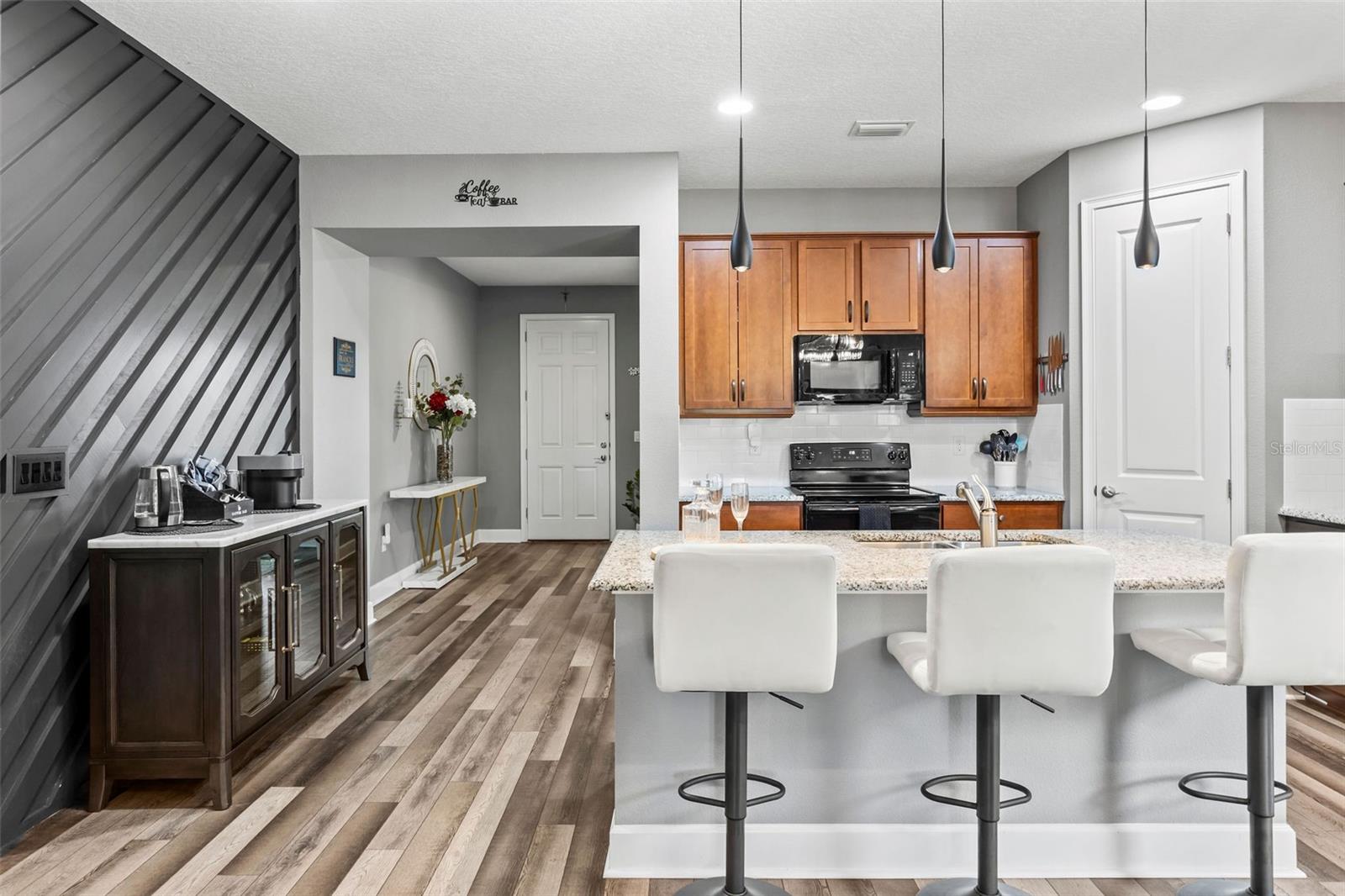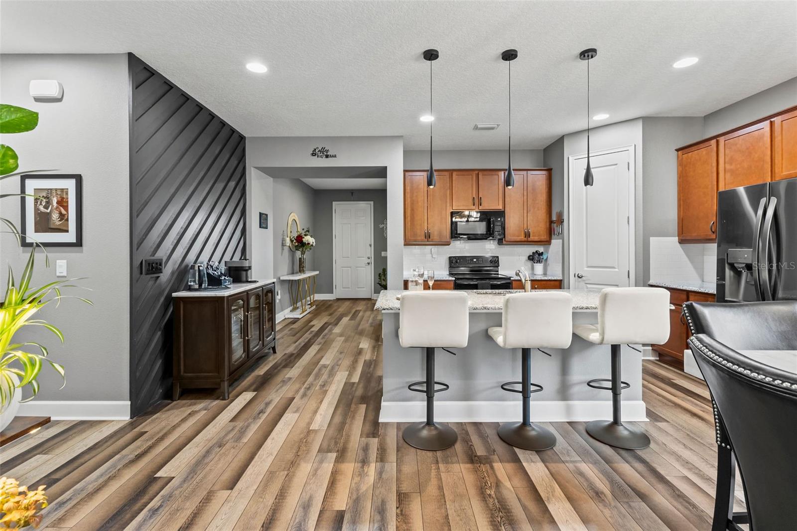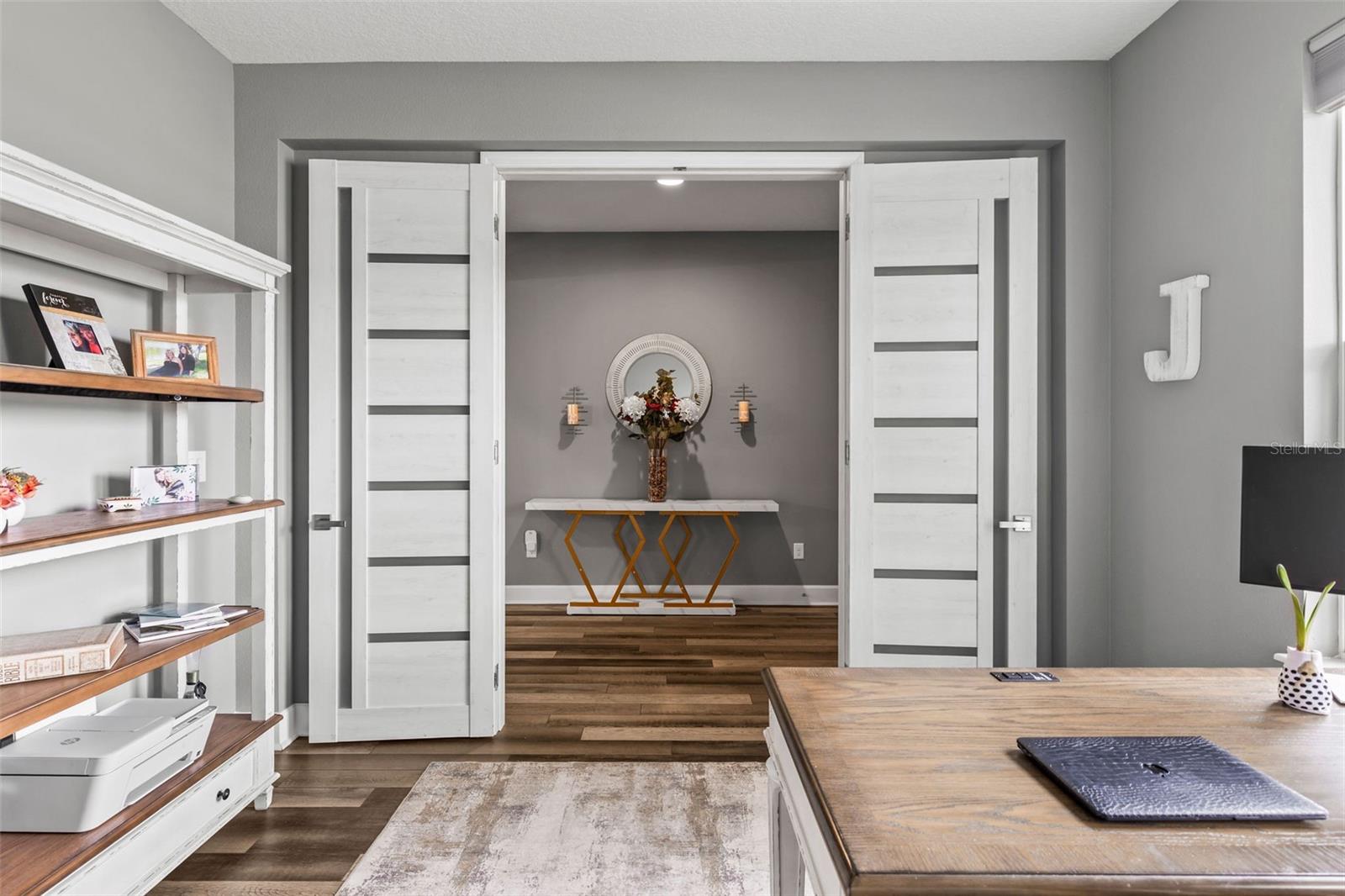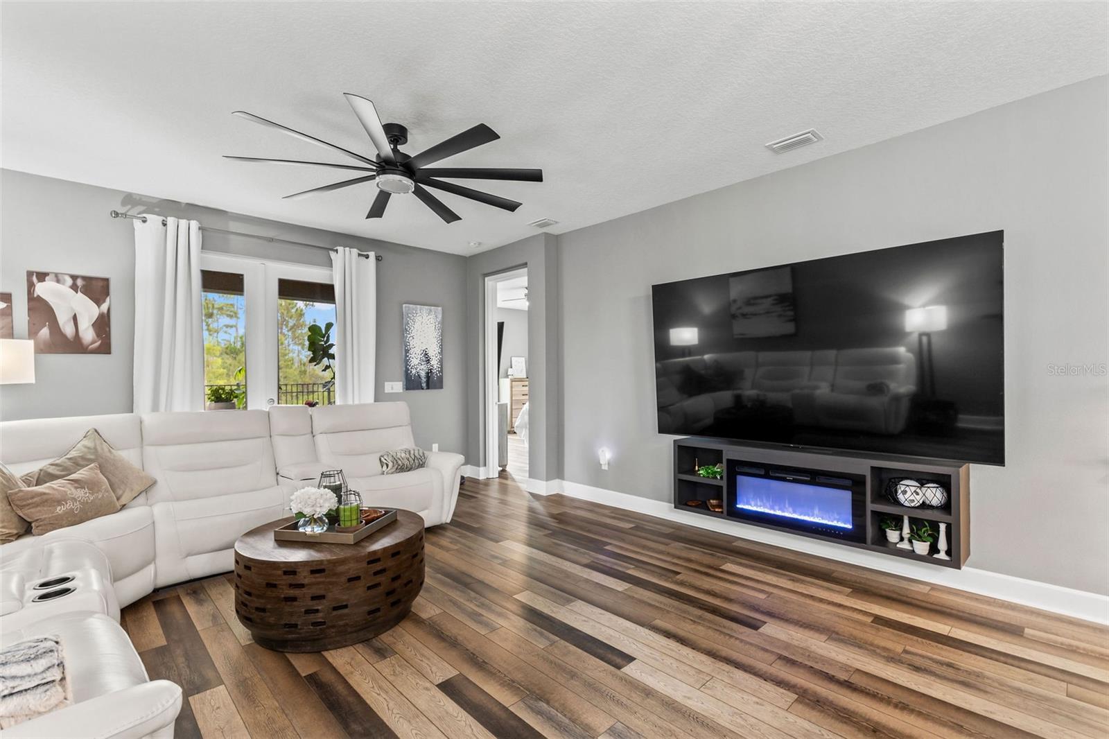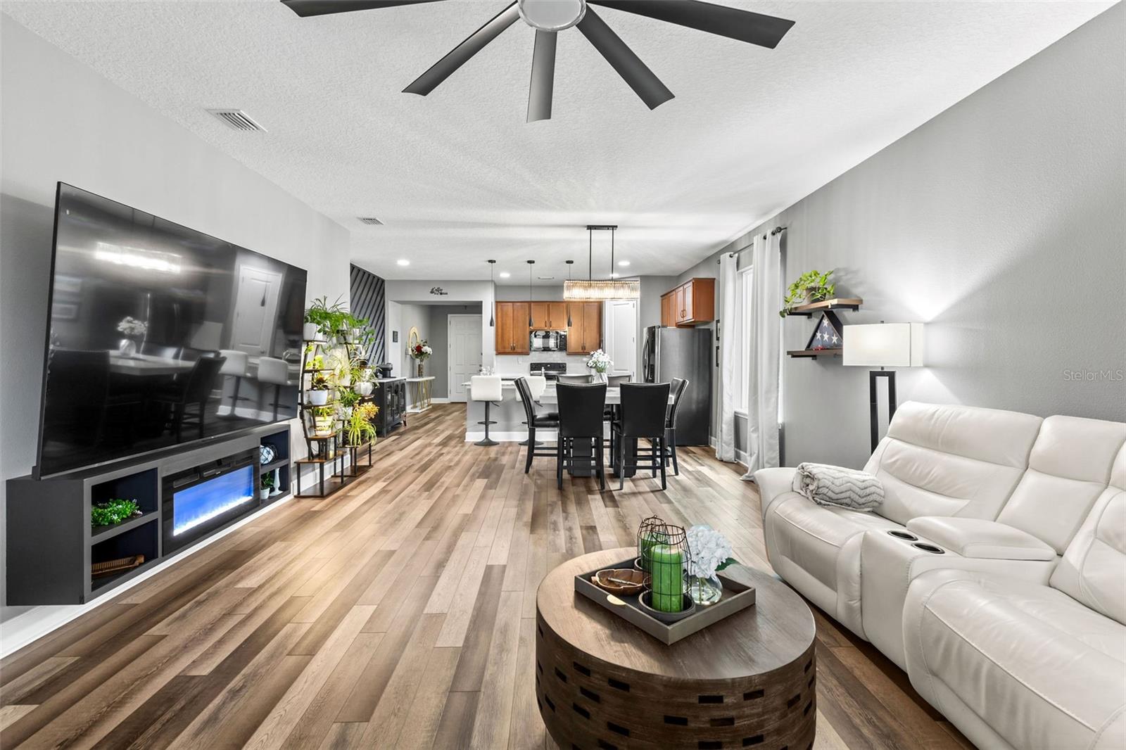 Price improvement!!! Discover this beautifully appointed 4-bedroom, 2-bath home in the highly sought-after Mosaic community. Nestled on a private reserve lot, this home offers peace, privacy, and modern luxury. This Oakland model built by ICI homes features an open floor plan with split bedrooms and a kitchen with 42 inch wood cabinets, granite countertops, stainless steel appliances, a large island, and spacious pantry. This home also boasts beautiful luxury vinyl plank flooring throughout main areas and master bedroom, driveway and patio pavers, a floating fireplace, kitchen shiplap feature wall, and upgraded fans and light fixtures throughout. The flex room has recently been updated to include a closet and coastal french doors allowing it to be used as a fully functional extra bedroom or office. Great location close to I-4 and I-95, Tanger outlets, Daytona International Speedway, LGPA golf courses, shops, restaurants, and Daytona and Ormond Beaches! The amenities at Mosaic include a family resort style pool, an adult only pool, state of the art fitness center, fishing docks, fire pit and lawn area, live music bandshell, and 2 playgrounds. Mosaic has a staffed lifestyle director that plans 5-7 community events monthly. NO CDD! Move in ready, like new! Schedule your showing today!