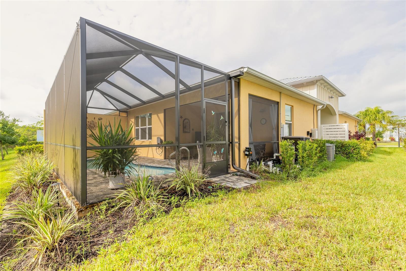 NEW LOOK, NEW PRICE!! No Flooding from Hurricane Milton and Move-In Ready! Welcome to your dream home in Latitude Margaritaville! This Jamaica villa offers a luxurious lifestyle with a heated pool and a spacious screened-in lanai, perfect for year-round enjoyment. Being a part of Phase One, you are walking distance to the Town Center that include outstanding restaurants, shops and amenities! Whether you're seeking privacy or hosting guests, this home has everything you need. The interior boasts elegant tile and luxury vinyl plank flooring throughout, a large, open kitchen with ample storage, granite countertops, and top-of-the-line stainless steel appliances, including a gas range. This beautiful villa features 2 bedrooms, 2 bathrooms, and a versatile den/office space. The primary suite is a serene retreat at the back of the home, offering a tranquil view of the conservation area and a spacious walk-in closet. The en-suite bathroom is well-appointed with a double vanity and granite countertops, plus a walk-in shower with a built-in ledge for added convenience. Additional highlights include a garage with built-in shelving and a utility sink, making storage and organization a breeze. This light-filled home is your canvas, ready to be personalized to reflect your unique style. Plus, living in Latitude Margaritaville means access to the most desirable 55+ community amenities, including the private Bar & Chill Restaurant, Mango Theater, live music seven days a week, Fins Up Fitness Center, pickle-ball courts, a pottery workshop, pet spa, and a private beach club. Start living your best life in this exceptional home—schedule a showing today! All information is intended to be accurate, but is not guaranteed.