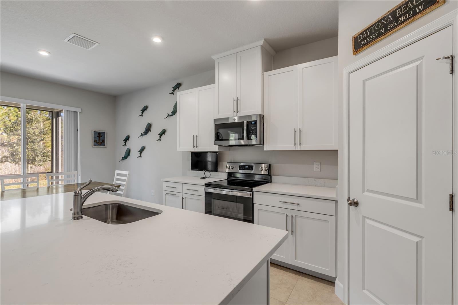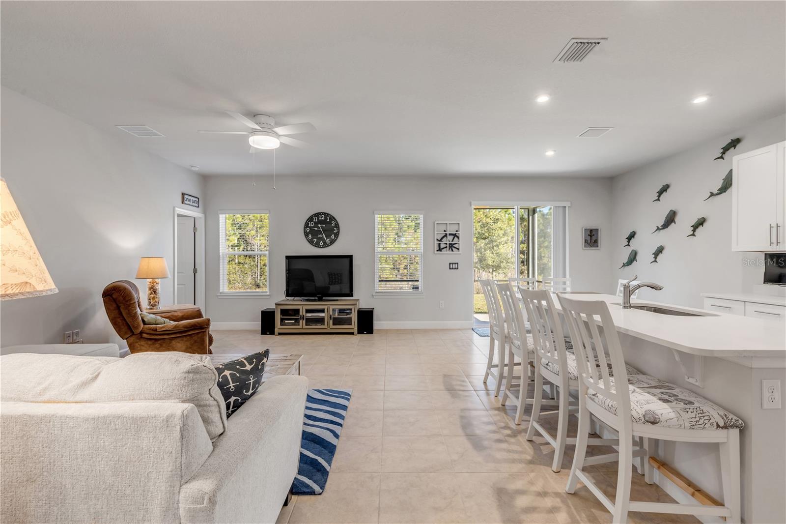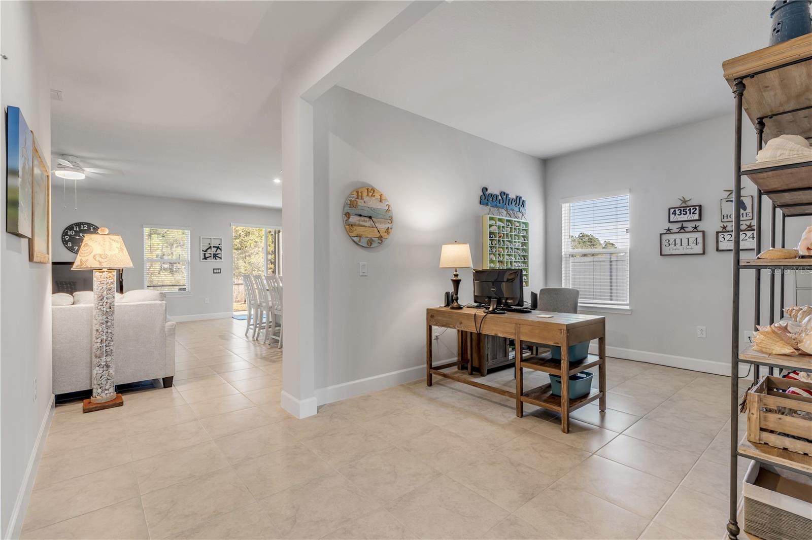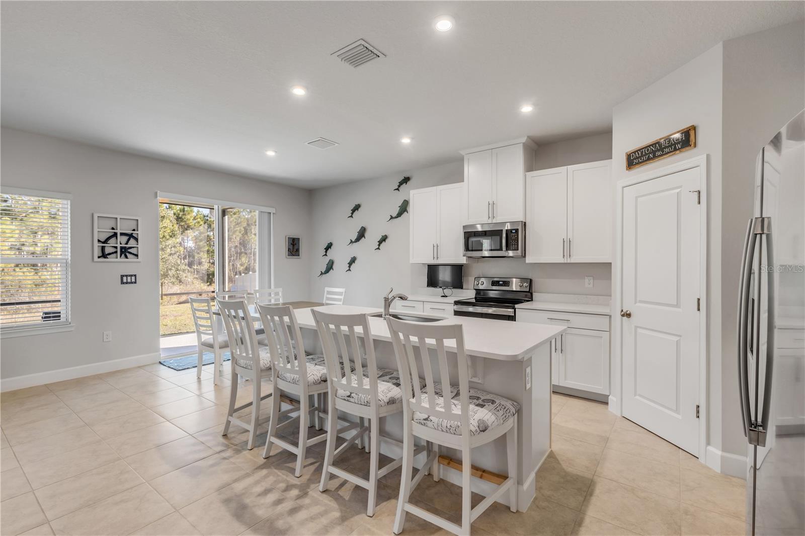 Welcome to this stunning and beautifully upgrade 3-Bedroom, 2-Bathroom and extra flex room Baymont Layout in sought-after Eagle Crest Community conveniently located close to Embry-Riddle Aeronautical University and the Daytona Beach International Airport. With $30,000 in custom updates to the home in a spacious and well-thought-out floor plan, this block construction home offers both comfort and style. Nestled on a generous .22-acre lot that backs up to an evergreen preserve for privacy, the home boasts a wide driveway for extra parking, perfect for guests or extra vehicles. The inviting screened lanai extends your living space, offering a peaceful outdoor retreat. Step inside to find a modernized interior, featuring stunning upgrades such as upgraded kitchen cabinets and sleek quartz countertops in both the kitchen and bathrooms. The open-concept design flows seamlessly from room to room, making it ideal for both daily living and entertaining. The Eagle Crest community is an outdoor enthusiast’s dream, with a picturesque nature trail winding around a 1-mile lake, a dog park for furry friends, and a playground for the little ones to enjoy. Additional upgraded features include gutters for added convenience and protection, landscaping, light fixtures, ceiling fans and laundry cabinets among others making this home move-in ready and perfect for any buyer looking for a comfortable and upgraded home in a peaceful, amenity-rich community. You have to see this home in person.