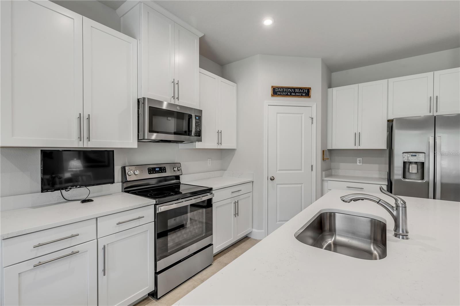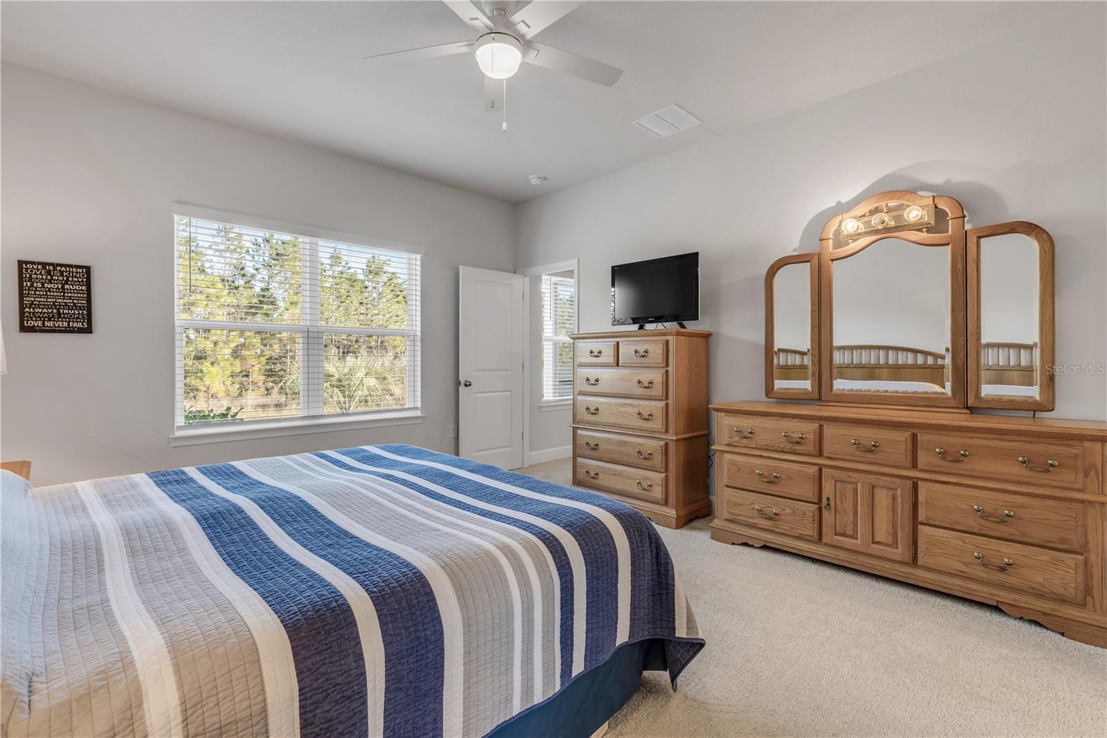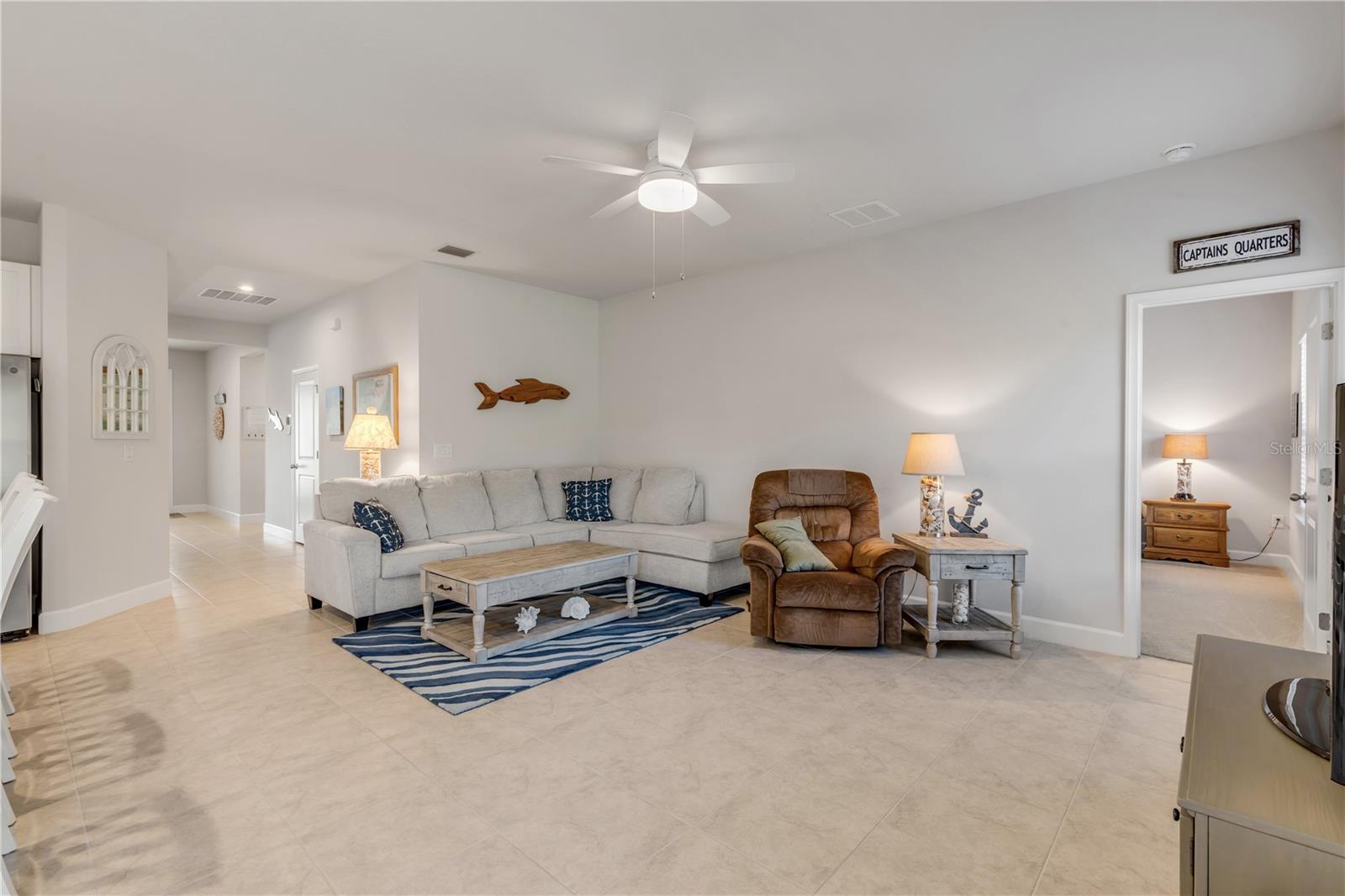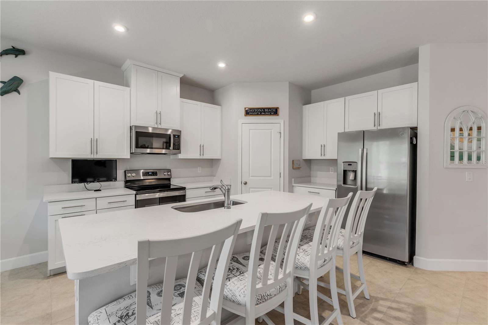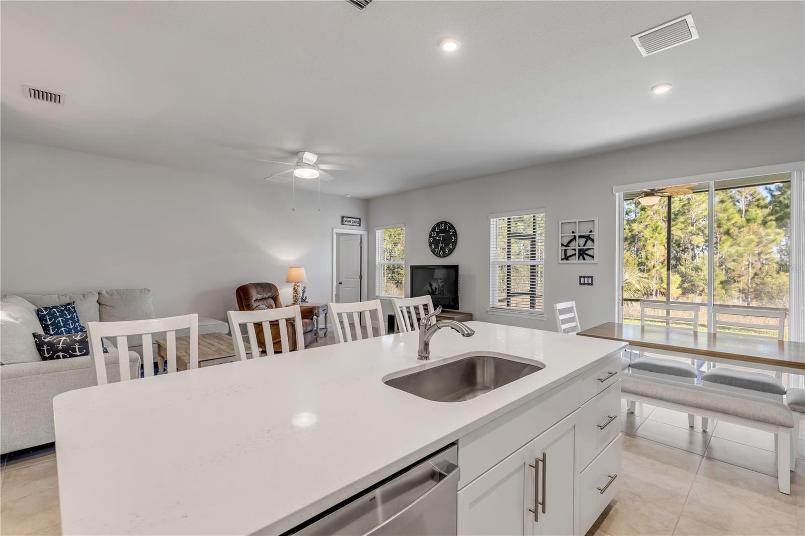 Welcome to this stunning and beautifully upgrade 3-Bedroom, 2-Bathroom and extra flex room Baymont Layout in sought-after Eagle Crest Community conveniently located close to Embry-Riddle Aeronautical University and the Daytona Beach International Airport. With $30,000 in custom updates to the home in a spacious and well-thought-out floor plan, this block construction home offers both comfort and style. Nestled on a generous .22-acre lot that backs up to an evergreen preserve for privacy, the home boasts a wide driveway for extra parking, perfect for guests or extra vehicles. The inviting screened lanai extends your living space, offering a peaceful outdoor retreat. Step inside to find a modernized interior, featuring stunning upgrades such as upgraded kitchen cabinets and sleek quartz countertops in both the kitchen and bathrooms. The open-concept design flows seamlessly from room to room, making it ideal for both daily living and entertaining. The Eagle Crest community is an outdoor enthusiast’s dream, with a picturesque nature trail winding around a 1-mile lake, a dog park for furry friends, and a playground for the little ones to enjoy. Additional upgraded features include gutters for added convenience and protection, landscaping, light fixtures, ceiling fans and laundry cabinets among others making this home move-in ready and perfect for any buyer looking for a comfortable and upgraded home in a peaceful, amenity-rich community. You have to see this home in person.