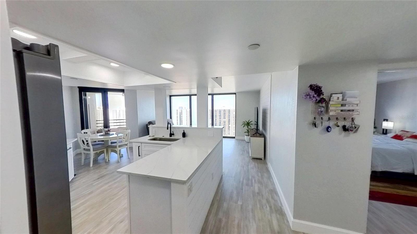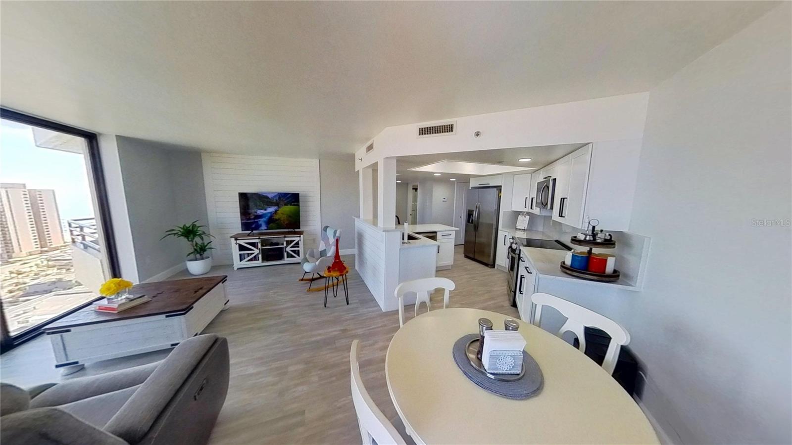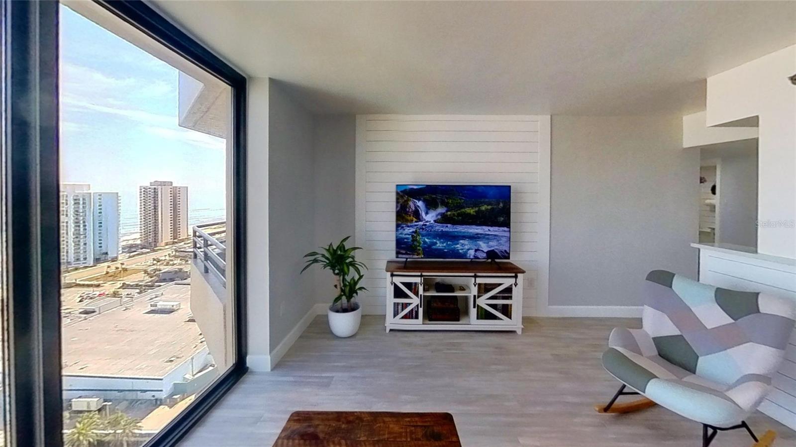 Luxury condo. This top floor fully remodeled unit. Top floor Amazing panoramic views of the sunrise from 2 private balconies, or from the open concept kitchen and living room. High quality waterproof flooring throughout. Soft close kitchen cabinets and drawers with quartz countertop and backsplash. All new lighting and fixtures throughout. Bathroom is right out of a design magazine with the perfect blend of colors and a shiplap wall. Shower features a frameless glass sliding door. Walking distance to the beach, Publix grocery store, Multiple Banks, Walgreens, and an Urgent Care. Building backs up to a golf course and overlooks tennis courts. Building also offers on site management, social meeting rooms, library, Ping pong course, Tennis course heated pool, sauna, and fitness center. New appliances. Washer and Dryer in every floor. Unloading area, Bicycle and Motorcycle area. Note: MLS information is considered accurate but not guaranteed. Buyers should independently verify all details.