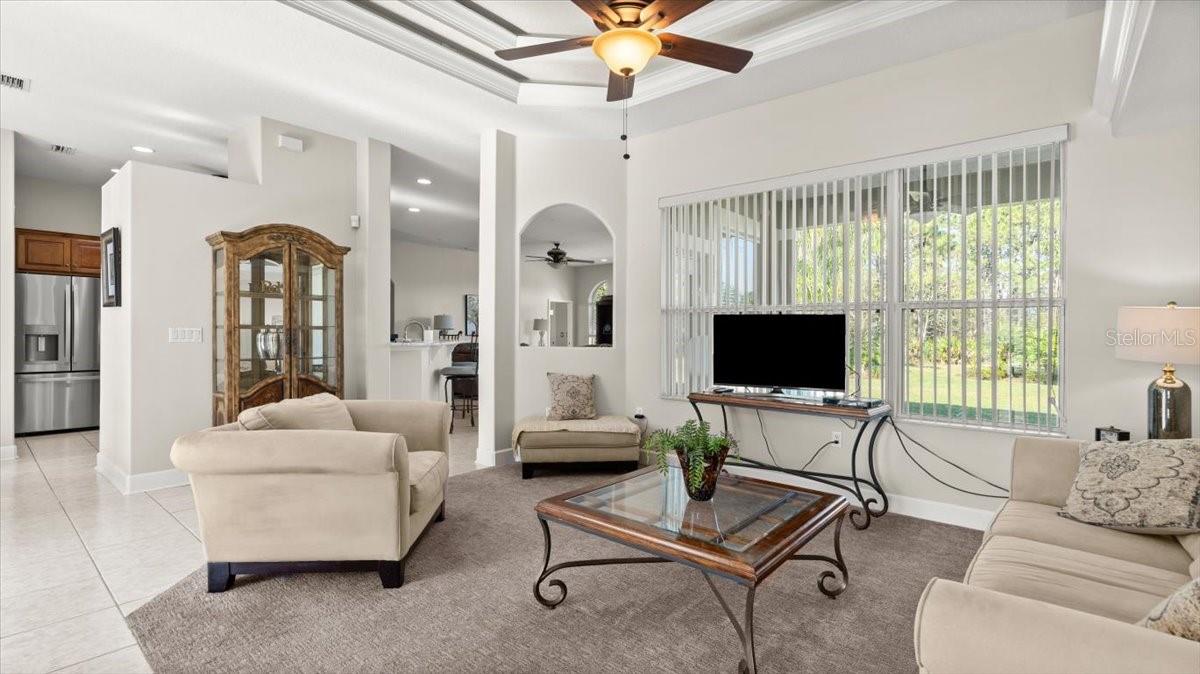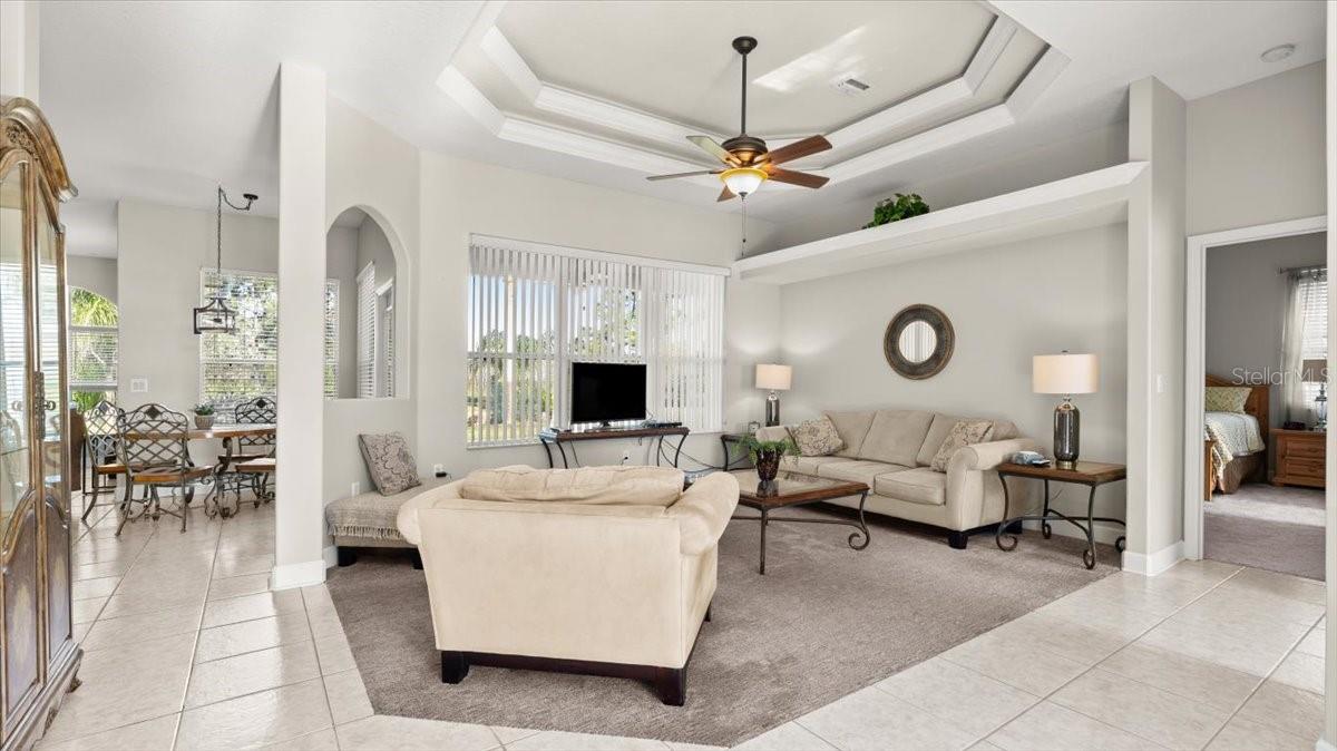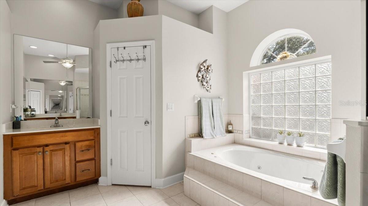 Nestled in the desirable LPGA community, this stunning 4-bedroom, 3-bathroom single-family home offers the perfect blend of elegance and comfort. Situated on a larger lot, the property boasts breathtaking golf course views and an abundance of natural light throughout. Step inside to discover tray ceilings that add depth and sophistication to the spacious living areas. The primary suite is a true retreat, featuring a luxurious soaking spa tub and a separate walk-in shower for ultimate relaxation. Outdoors, enjoy the expansive tiled covered patio, complete with ceiling fans, making it the perfect spot to unwind and entertain even in the summer heat. With a two-car garage and a thoughtfully designed layout, this home is ideal for those seeking both style and functionality in an unbeatable location.