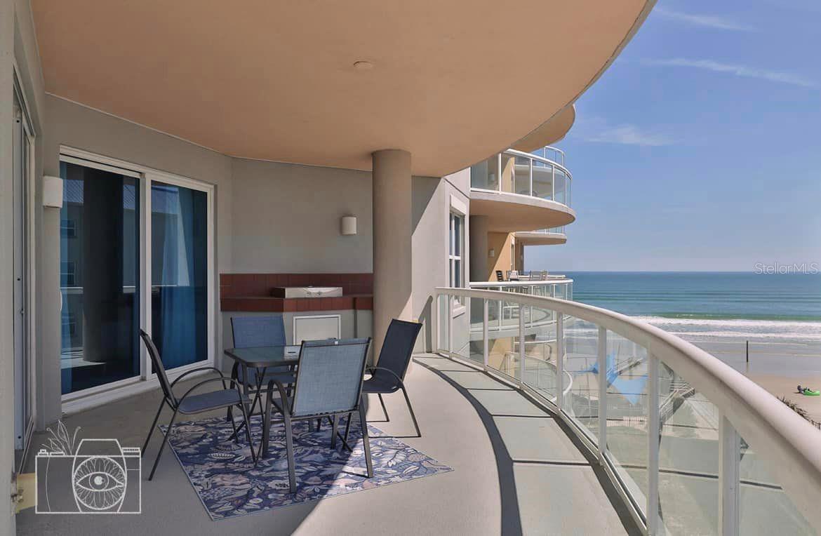 Embrace luxury oceanfront living in this fabulous fourth-floor southeast-facing condominium in the Ocean Villas condominiums. The semi-private elevator takes you to an elegant double-door entrance with a rotunda-style foyer and an open living area with windows galore. This unit is set apart from the others with its sophisticated white and crystal decor but maintaining a beachy feel. The primary suite has a sitting area looking out to the ocean and an en-suite with a glass shower, a separate soaking tub and dual walk-in closets. The guest suite leads to a balcony and has a private en-suite with shower and a large walk-in closet. The den can be an optional third bedroom. A stunning gas fireplace serves as a focal point to the open living/dining room area which is adjacent to the gourmet kitchen with pantry and wine cooler. Ocean Villas condominiums offers exceptional amenities such as an oceanfront fitness center, infinity pool, spa, saunas, conference rooms and an oceanfront community room.