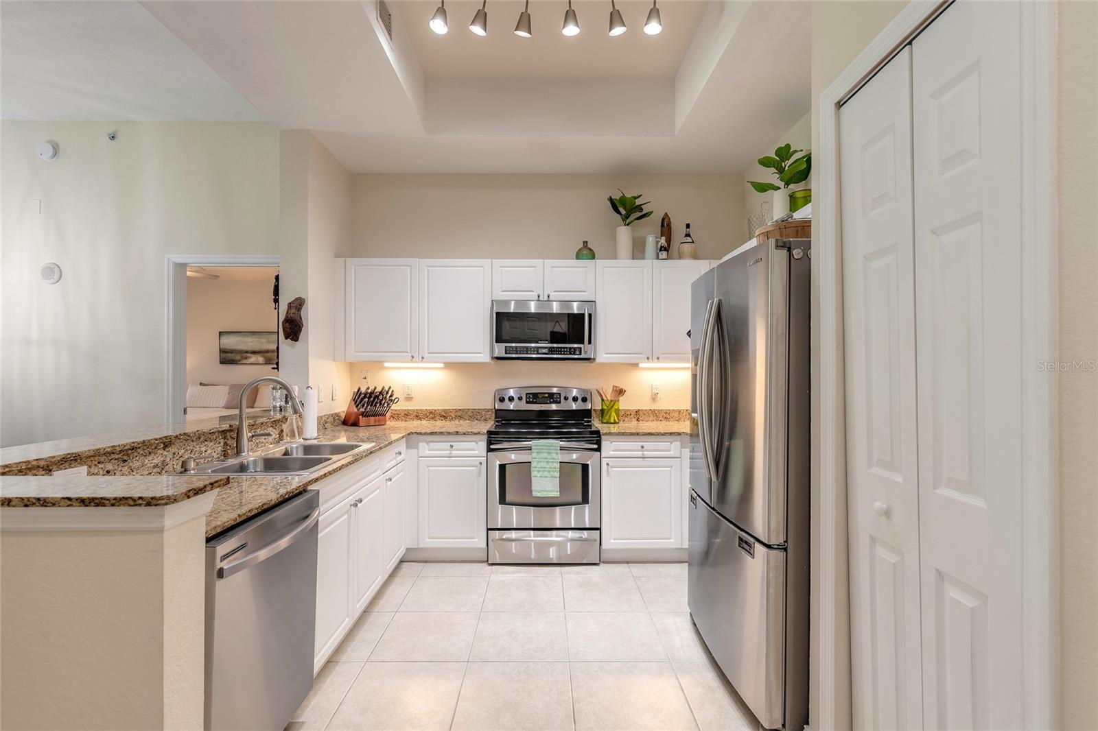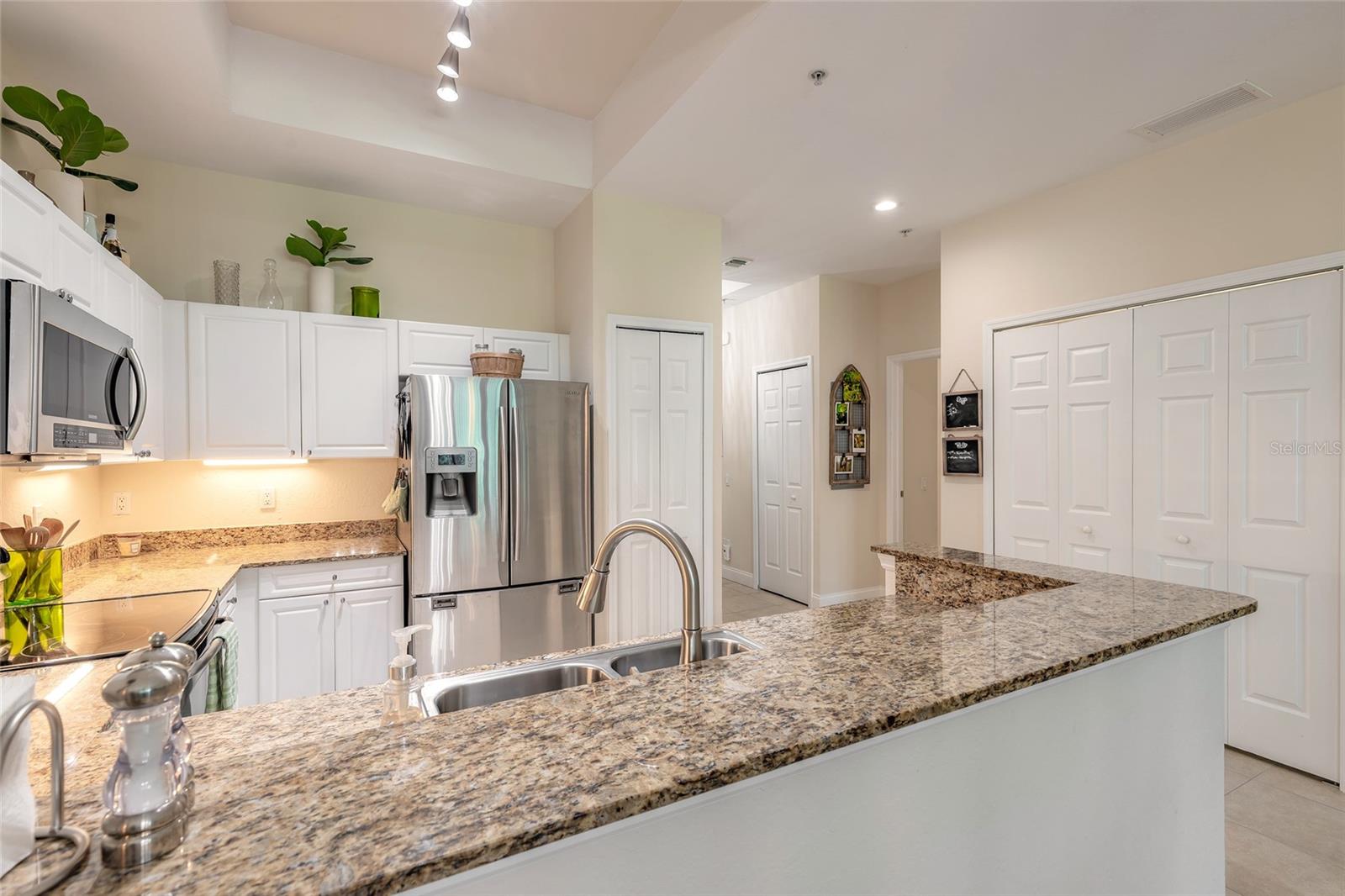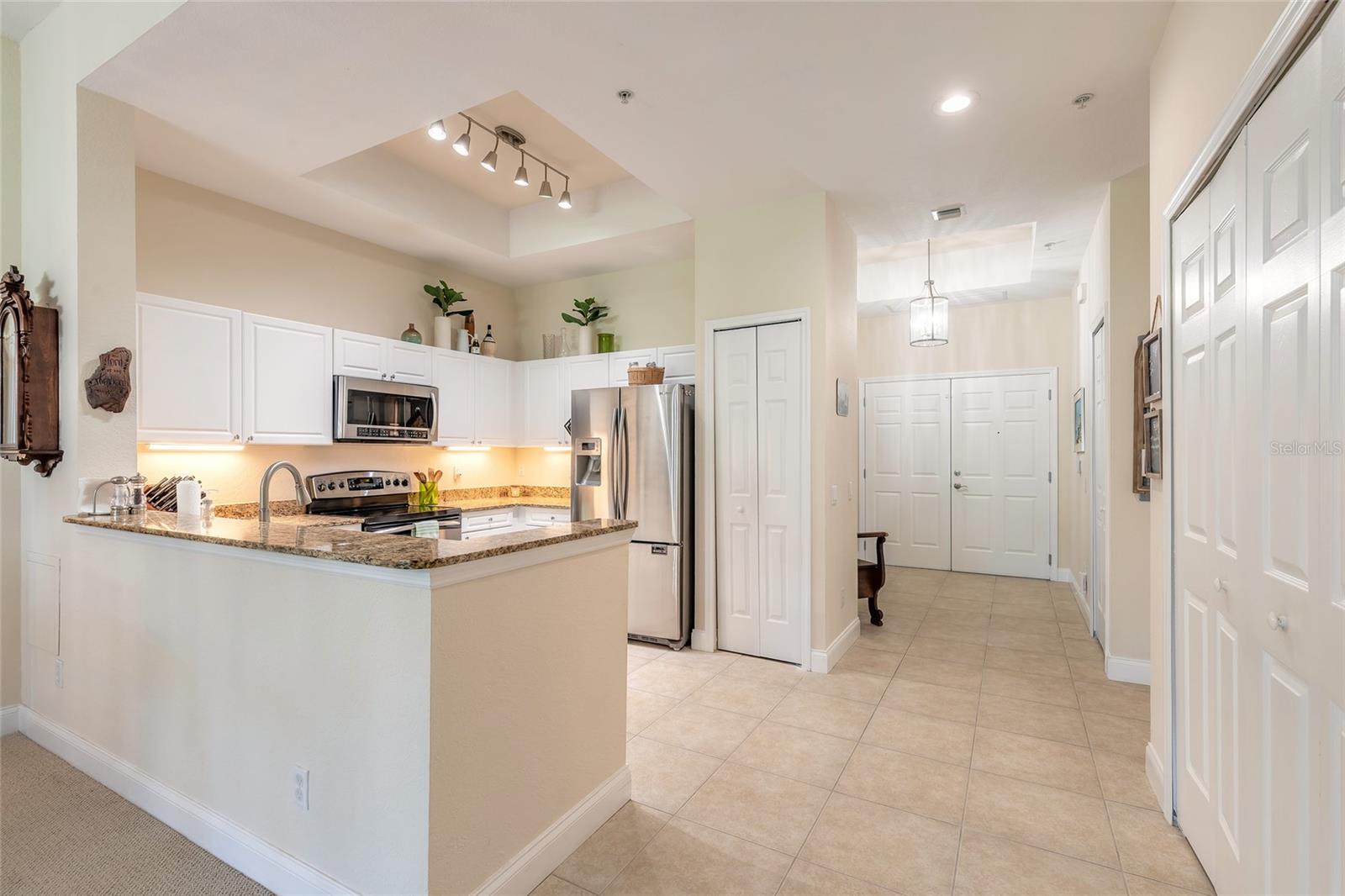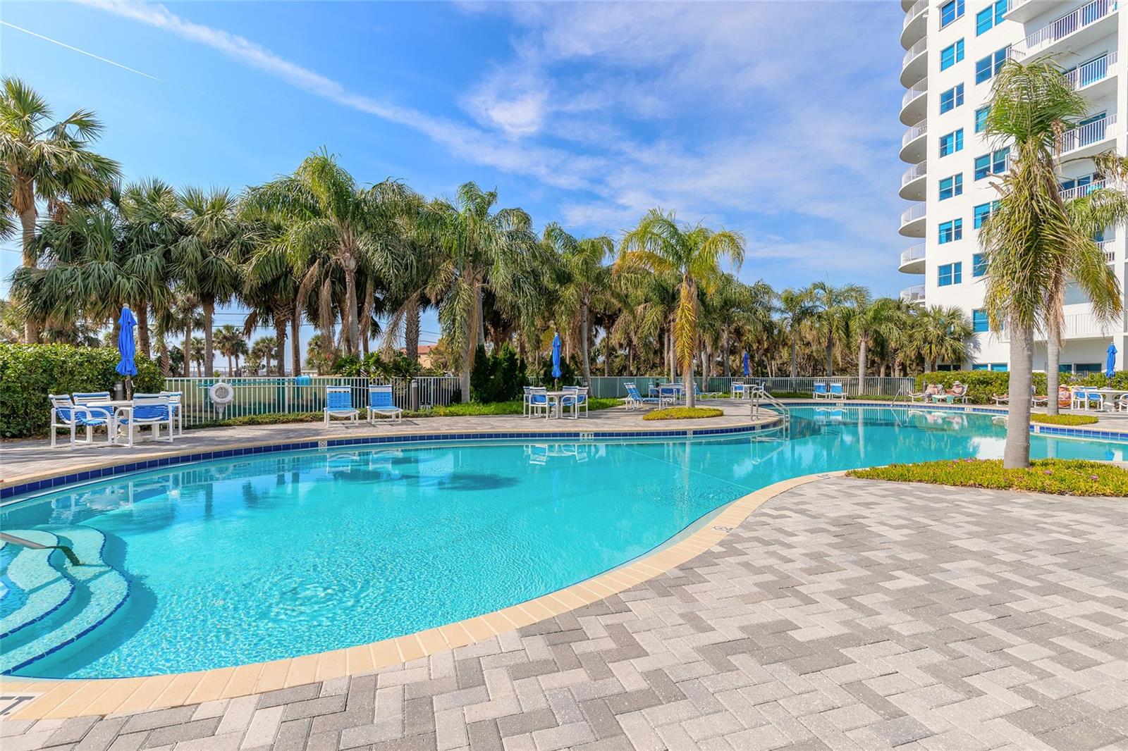 The spacious kitchen is a chef's dream, featuring stone countertops & oversized counter peninsula. Open concept living boasts tons of space for entertaining family and friends. Inside, you'll find large bedroom suites, each featuring his & her closets and ample space. The primary suite features a jacuzzi tub, separate shower, and double sinks. Additional flex room can be used as a 3rd bedroom, office, or den. Additional Highlights include: In-unit laundry & abundant storage. Meticulously Maintained & Move-in ready. Unwind and enjoy resort-style living with exclusive condo amenities, including a state-of-the-art fitness center, resort-style pool, hot tub, sauna, steam room, ping pong, pool table, library, card room, workshop, and dog walk. Golf right in your backyard or take a short stroll to the beach, with multiple access points just across the street. Whether you're relaxing and unwinding on your private balcony, watching spectacular sunsets, or soaking up the serenity of this beachside paradise, this condo offers the ultimate in luxury coastal living. Close to shopping, restaurants, Veterans Park, Shores Community Center with dog park, pickleball, tennis, and more right out your door. All information intended to be accurate, but cannot be guaranteed.