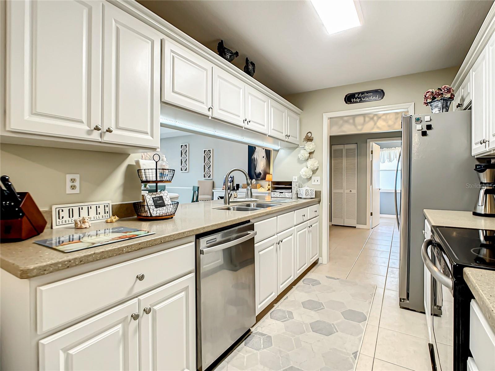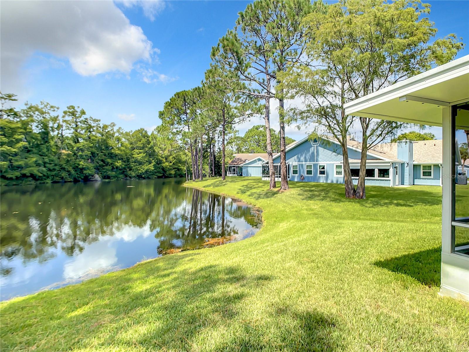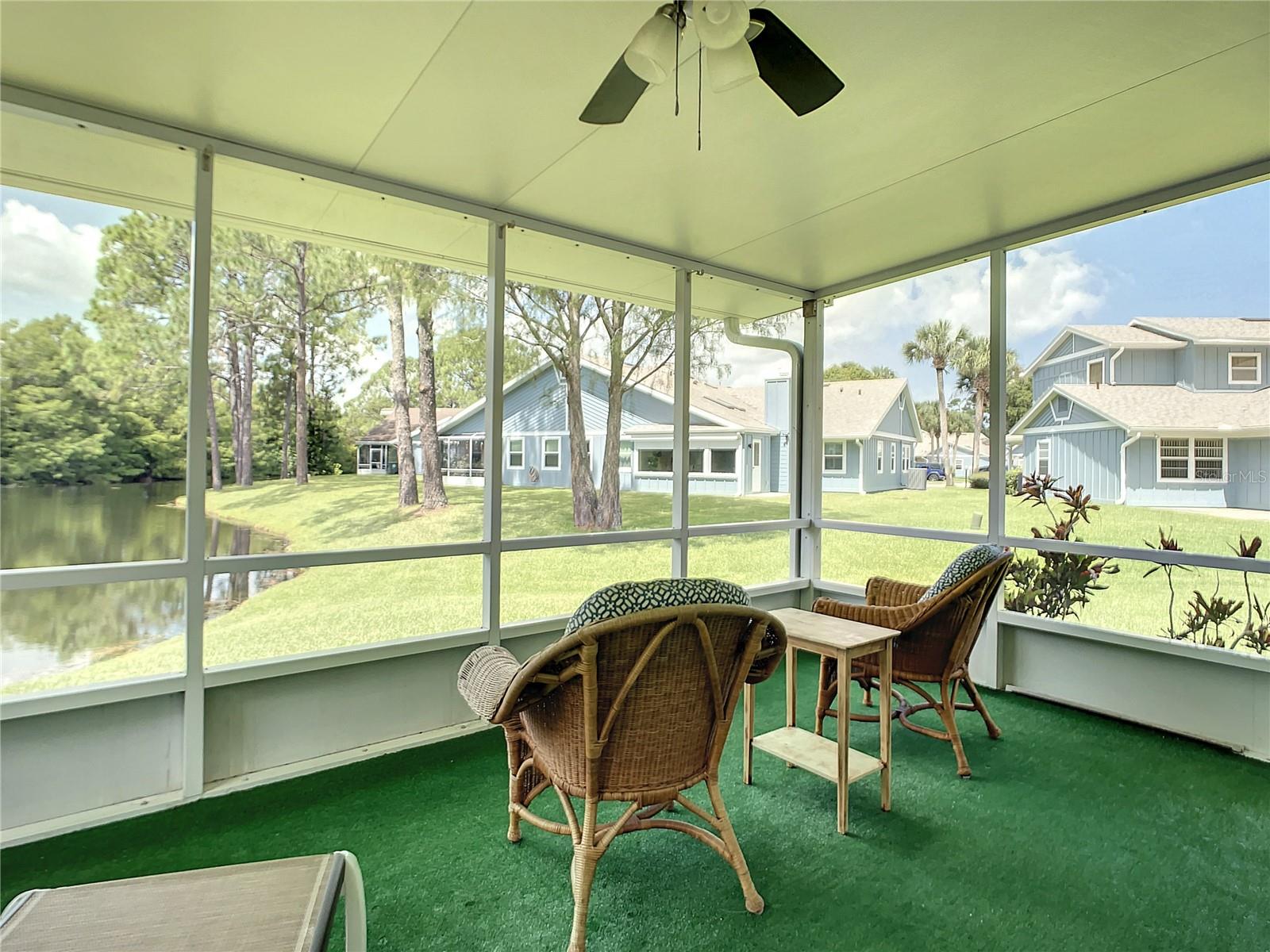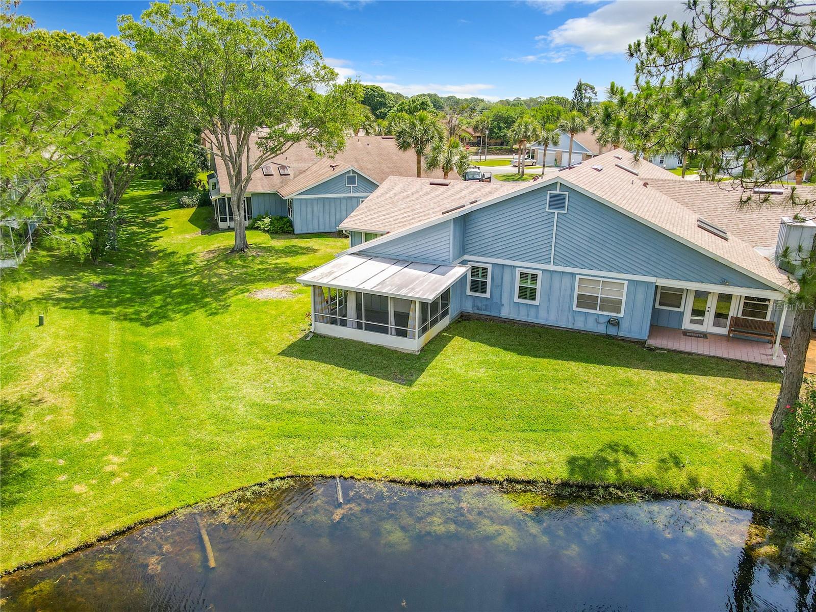 Carefree living on one level. HOA Fee $720.00/Mo covers: Water, Trash, Pool, Exterior of Home & Grounds Maintenance & building insurance. Beautiful and Move-in Ready, Charming 2-bedroom, 2 bath half-duplex in the sought after Gated Pelican Bay Subdivision. Skylights offer a light and bright cheerful atmosphere. Kitchen is spacious with stainless appliances, casual dining area, pantry, breakfast bar, and overlooks the dining and living rooms. The living room flows to a den/flex room and on to the lovely private screened porch overlooking the peaceful pond. Owner suite includes en-suite bath with vanity, walk-in closet, tiled shower, and jetted tub. 2nd Bedroom and bath are separated for privacy. Tile runs throughout the entire home. Laundry is conveniently located in the 2-car garage and the community pool is within walking distance. Roof, Skylights & HVAC-2020, New Water Htr, Double Pane Windows, Plantation Shutters on Windows.