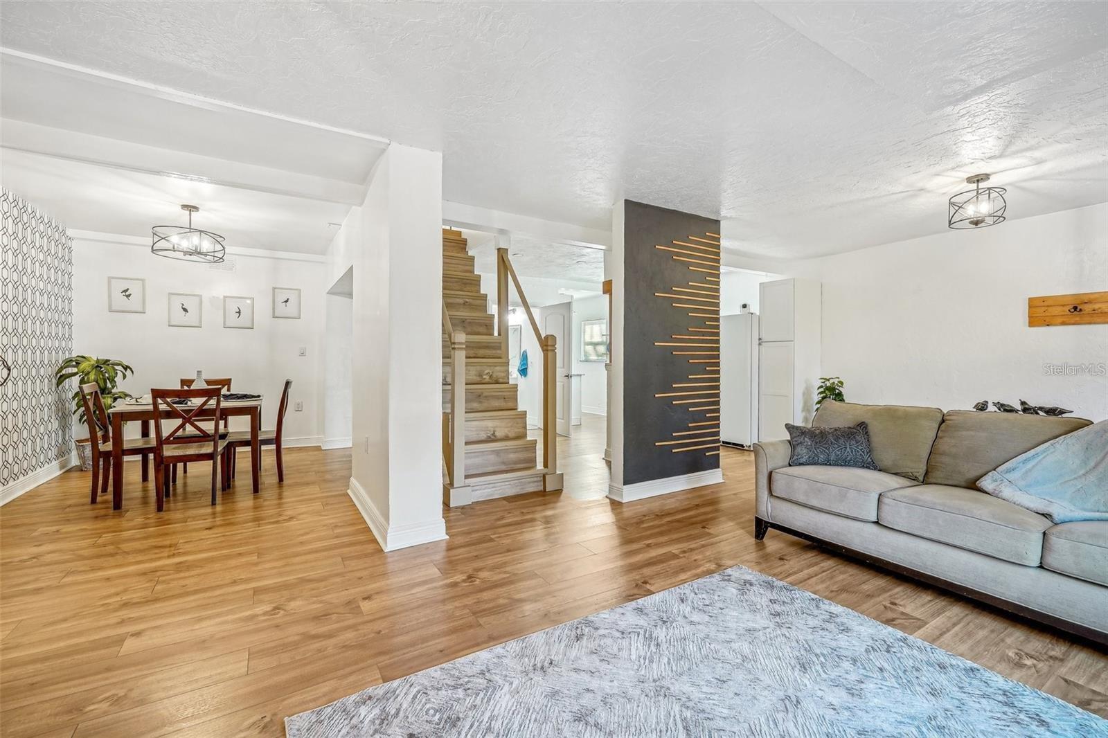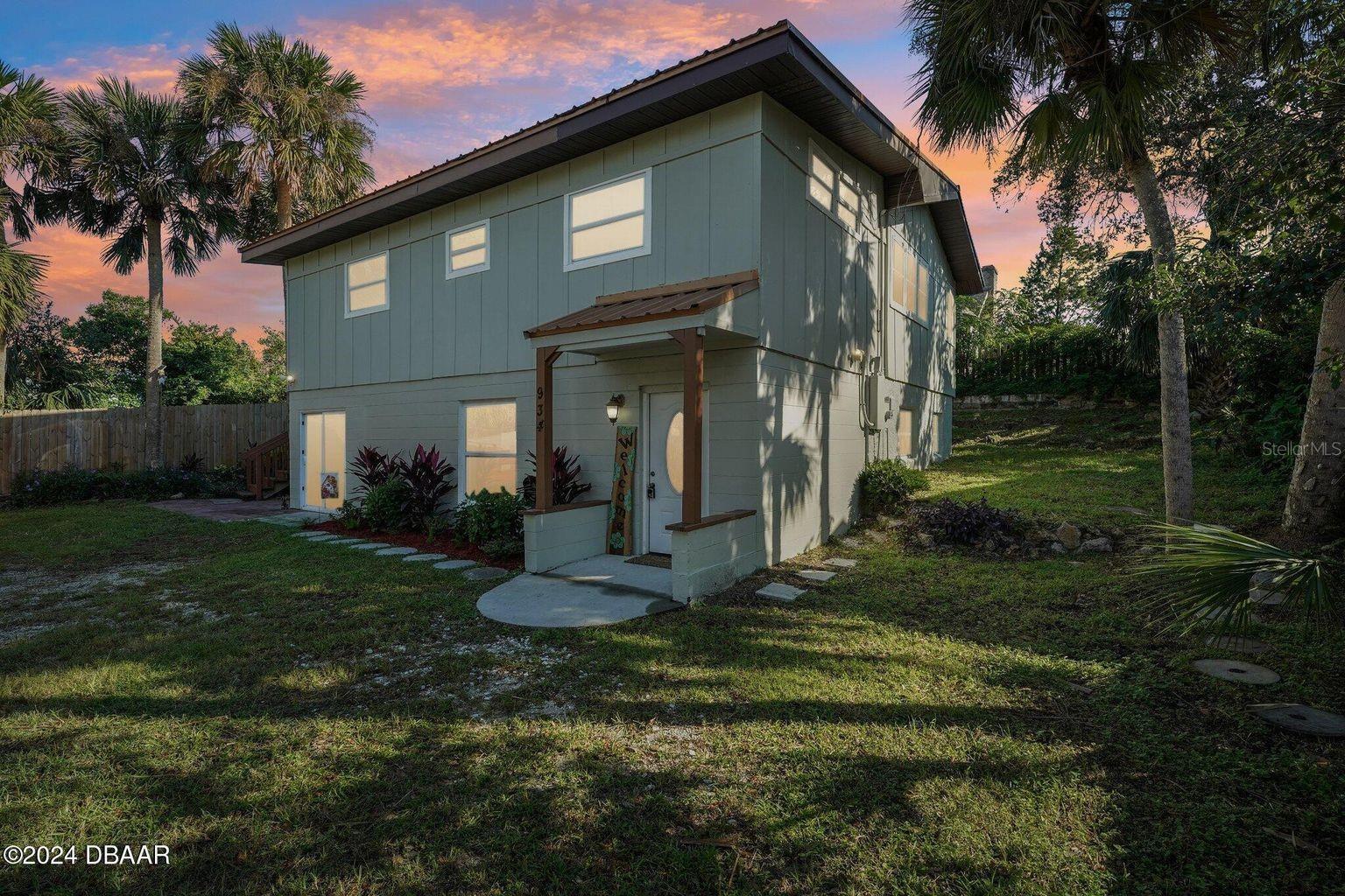 Coastal charm meets modern versatility in this beautifully remodeled two-story beachside home! The bright upper level features a cozy coquina fireplace, a stunning kitchen with granite countertops and a walk-in pantry, plus a spacious owner's suite with a stunning private bath and a flex room perfect as a third bedroom or office. Downstairs, a fully updated in-law suite with a private entrance offers living room, dining room, two bedrooms, a remodeled bath, second laundry room and a full kitchen with granite counters—perfect for guests or rental income. Outside, enjoy a fenced backyard and deck, ideal for entertaining. Just moments from the beach, this home offers comfort, style, and endless possibilities!
