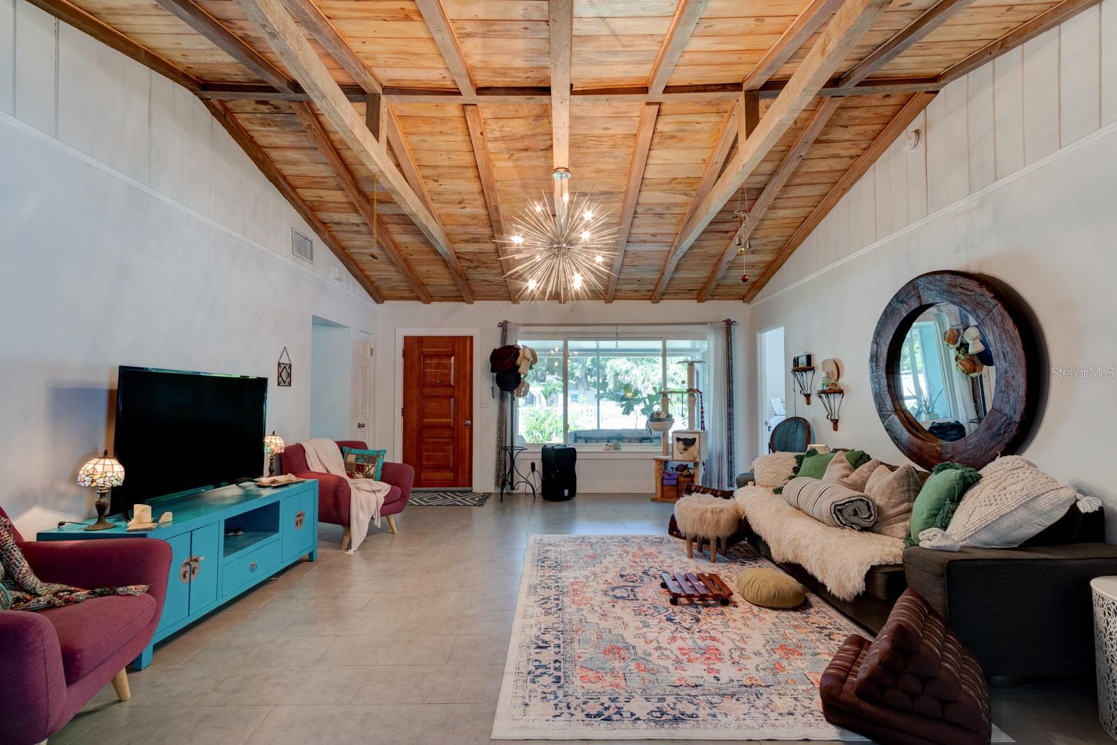 EXCELLENT LOCATION - A TRUE HIDDEN GEM! Have your cake and eat it too with this one-of-a-kind beachy-homestead bungalow, ideally located on nearly half an acre in the heart of Daytona Beach—yet just 3 miles from the sparkling shoreline. Originally built in 1957 and now beautifully remodeled, this turnkey 3-bedroom, 2.5-bath home blends old Florida charm with modern, California-inspired resort living. Step inside and experience the peaceful, spa-like ambiance with exposed beam ceilings, an original wood-burning fireplace, and a bright, open layout that feels like a tranquil meditation retreat. The home features a newly installed AC, newer roof, and updated water heater, providing peace of mind for years to come. Outside, you're in your own private oasis. The lush, fenced yard backs up directly to a protected nature preserve, offering extra privacy and a buffer from city noise. It's perfect for gardening, pets, and peaceful morning walks where you can pick wild Florida oranges along the way. The grounds are a gardener's dream, with raised beds and an extraordinary collection of exotic fruit trees including mango, moringa, loquat, Asian pear, red jaboticaba, dragonfruit, cherimoya, jujube, starfruit, passionfruit, sapote, acerola cherry, longan, fig, pomegranate, lemon, lime, grapefruit, peach, avocado, and three banana varieties. A mini barn and chicken coop add a charming touch for the aspiring homesteader. Relax on your screened lanai with a view of your garden and mini-pond, or explore the neighborhood, with nearby shopping, restaurants, and cultural highlights like the renowned Museum of Arts and Sciencesjust around the corner. Bonus: This property is offered with a buildable adjacent lot, making it ideal for multi-generational living or future expansion. Located in Flood Zone X with no history of flooding, this home offers both beauty and peace of mind. Don't miss the chance to own this unique blend of serenity, style, and location. This home is truly a rare find!