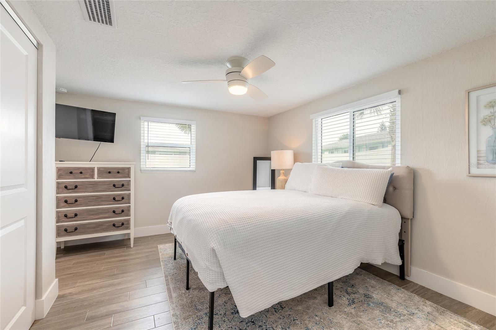 Stunning Beachside Home Steps to the BEACH! Nestled between the INTRACOASTAL and the OCEAN, this completely remodeled 4-bedroom, 2-bath home offers the perfect blend of modern comfort and coastal charm. Featuring an open-concept design with porcelain tile plank flooring throughout. The kitchen showcases quartz countertops & all-wood soft-close cabinetry. Major updates completed in 2022 include a new roof, windows, water heater, electrical, and plumbing. Enjoy a neutral color palette, abundant natural light, and a seamless indoor-outdoor flow. Take in the ocean breezes. The fully fenced yard offers privacy with a paver patio—perfect for relaxing or entertaining. Located on a quiet dead-end street, this beautiful home is offered fully furnished and move-in ready! Come enjoy all that the area has to offer - close to shopping, entertainment, schools, restaurants, and steps to the BEACH! All information intended to be accurate, but cannot be guaranteed.