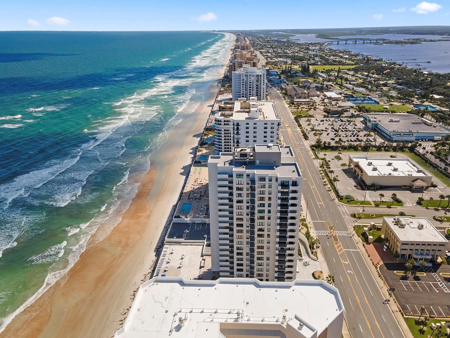 Experience premium beach-front living in Daytona Beach Shores. Discover coastal elegance in this two-bedroom, two-bath residence on the second floor of Oceans Five, offering ocean views and the breezy, relaxed lifestyle you've been seeking. The condominium comes partially furnished, making it move-in ready or customizable to your taste. Go onto your private balcony and take in the Atlantic horizon, a tranquil spot to enjoy sunrise coffee, read a book or unwind after the day. Inside, you'll find comfortable living spaces ready to embrace the beach life. The building, a direct ocean-front high-rise of just over 100 units, offers a host of resort-style amenities, including heated outdoor pool with a large sun deck and direct beach access, on-site fitness center, social room with full kitchen, library and pool-table lounge. Underground garage with one assigned parking spot for each unit. Laundry facilities on every floor for convenience Pet-friendly policy with one pet up to 25 pounds. Minimum rental period of two months, making it an excellent investment or second-home opportunity. In one of Daytona Beach Shores desirable ocean-front buildings, you're also just a short distance from shopping, dining and recreation ideal for full-time living, a vacation retreat or investment rental property. Live the beach lifestyle every day, it's your chance to own at Oceans Five!