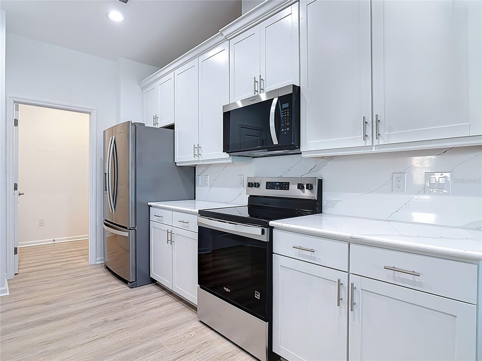 NEW CONSTRUCTION - Completed in 2025! This turnkey tropical cottage includes a builder warranty and is perfectly positioned just a few blocks from the heart of Latitude Margaritaville, offering walkable access to restaurants, fitness center, shops, live entertainment, and the resort-style pool. This desirable corner home features a two-car garage, vaulted ceilings, and a bright open-concept design. The kitchen showcases light cabinetry, quartz countertops and backsplash, and a spacious 7' x 4' island ideal for bar seating and entertaining. The living area is filled with natural light from multiple windows, enhanced by soaring ceilings and a built-in electric fireplace, while the corner location provides added privacy. The primary suite offers a private bath and walk-in closet. Brand-new luxury laminate flooring runs throughout the home. Enjoy Florida living on the expansive L-shaped screened porch, perfect for relaxing or hosting guests. Resort-style living at its best!