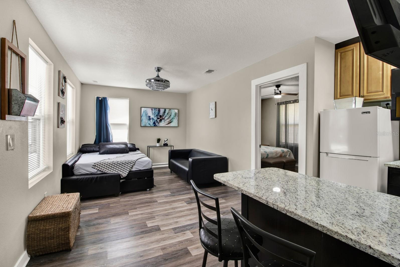 Introducing a splendid 4-bedroom, 3.5-bathrooms in the vibrant heart of Daytona Beach, just a stone's throw away from the bustling activity, and beaches. This delightful abode exudes charm and convenience from every corner. Step onto the inviting front porch, where you can bask in the warm Florida sun and embrace the tranquility ambiance of the neighborhood. Inside, discover a luminous and airy interior adorned with tasteful updates, with freshly painted walls and gleaming laminate floors that pave the way for modern living. The expansive living room with its crackling fireplace, providing a cozy retreat during cooler evenings. The dining room seamlessly transitions into the sleek and renovated kitchen, boasting luxurious granite countertops and top-of-the-line stainless steel appliances. Ascend to the first floor to uncover the hidden gem of an in-law suite, complete with its private entrance, bedroom, full bathroom, living area, and convenient kitchenette. This versatile space is ideal for hosting guests or generating rental income, catering to your every need. Step outside into the fenced backyard oasis, offering ample room for outdoor recreation and a handy storage shed for your convenience. Revel in the peace of mind provided by the brand-new roof installed in 2019, alongside the newer HVAC system from 2018 and hurricane shutters, ensuring your comfort and safety year-round. Conveniently located amidst Daytona Beach's renowned attractions and stunning beaches, this home presents an exceptional opportunity for families, multi-generational living arrangements, or savvy investors seeking an affordable yet spacious dwelling in an unbeatable area Don't let this remarkable chance slip through your fingers – seize the moment and schedule the viewing for your qualify buyers!!!!!!