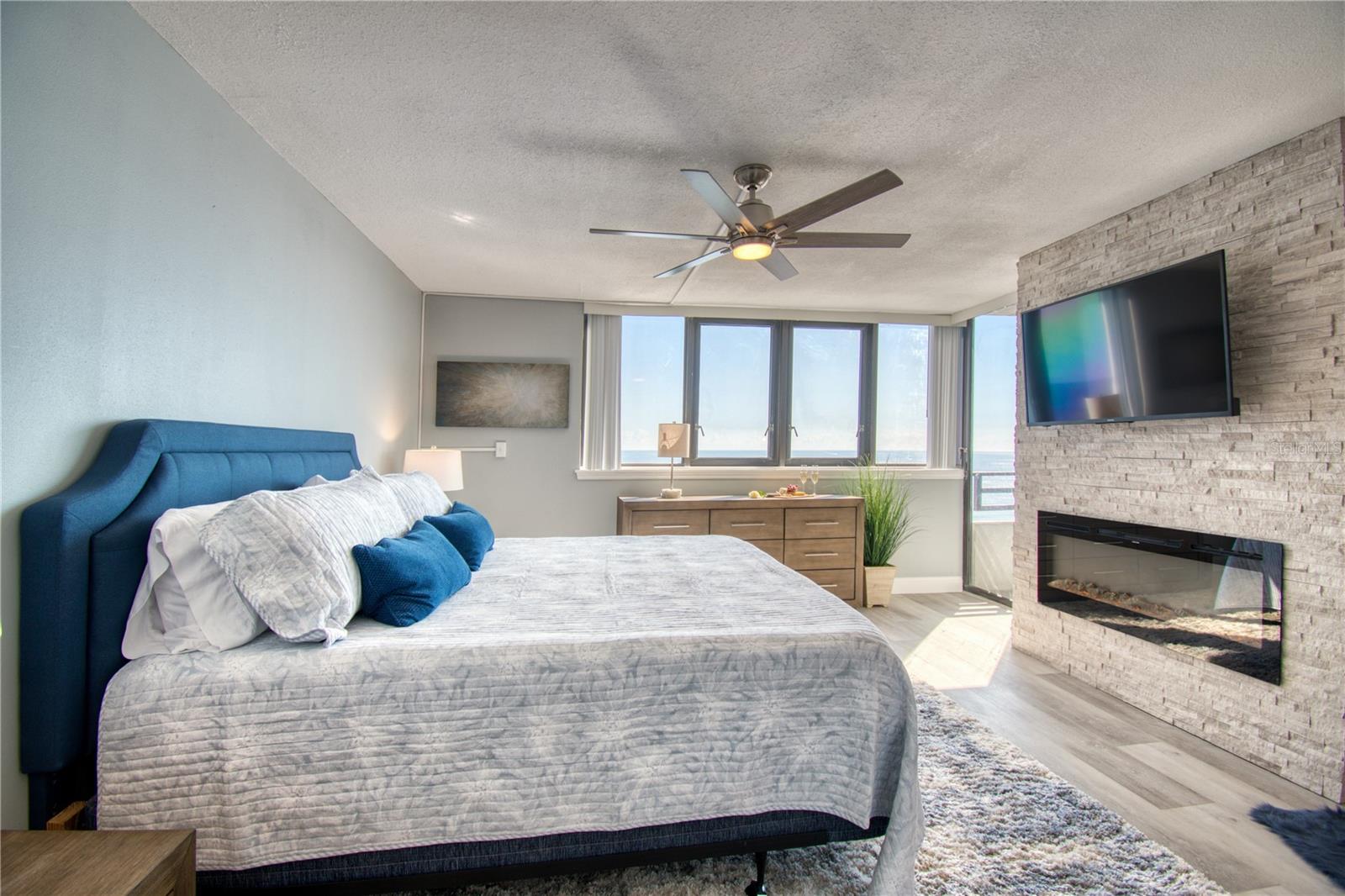 Elevate your lifestyle at Daytona Beach, the world's most famous beach, with this exquisite 2-bedroom, 2-bathroom condominium at the Horizon. Positioned on the 18th floor, this direct oceanfront gem provides panoramic views of the Atlantic Ocean from every vantage point. Step into luxury with the unit's sleek luxury vinyl plank flooring and a fluid, open floor plan that makes both daily living and entertaining a delight. The spacious living and dining areas offer direct, breathtaking ocean views and seamless access to a private balcony where the Atlantic's serene waves create the perfect backdrop. Culinary enthusiasts will revel in the contemporary kitchen, adorned with stunning QUARTZ countertops and featuring a functional breakfast bar for casual dining. Retreat to the tranquil primary suite, which includes direct balcony access for morning ocean greetings and an ensuite bathroom equipped with dual vanities, a double walk-in shower, luxurious soaker tub, and beautiful stone fireplace. The property also includes a generously sized guest bedroom with direct semi-private balcony, and a second full bathroom, ensuring comfort for all residents and guests. The family room features a second custom stone fireplace, direct balcony access, and ocean views for miles. Nestled in a prime location, this condo is steps away from top-notch dining, popular beach hangouts, and iconic oceanfront attractions. Ideal for short-term rentals, this offering includes several existing bookings (if desired) and comes fully furnished—complete with custom art, linens, and more. As the current owner builds another property, seize this unique opportunity to invest in a turnkey beachfront dream. Schedule your exclusive tour today and start living your beach dream tomorrow!