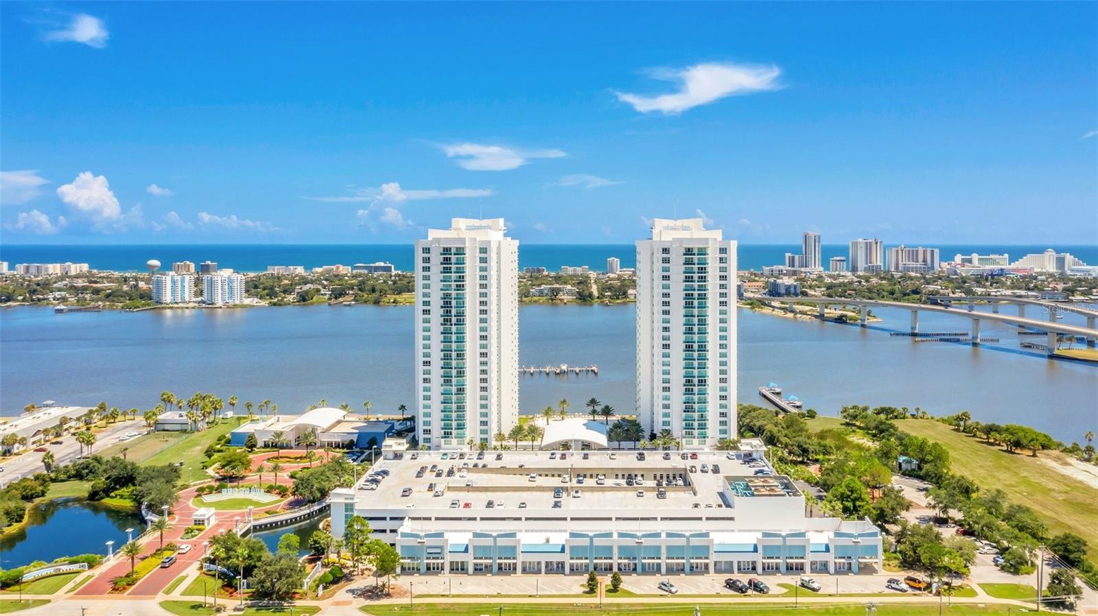 Elevate yourself in this fully renovated & one of a kind FURNISHED 3 bedroom 3 bathroom Marina Grande condo offers stunning panoramic views from the 19th floor of the Atlantic Ocean, intracoastal river, & city skyline. This luxurious residence features tile flooring throughout including the balcony, enhancing its sleek and modern design. The gourmet kitchen is a chef's dream, equipped with Italian cabinets, granite countertops, and state-of-the-art stainless steel appliances including a new refrigerator and built in wine/beverage cooler. The open floor plan connects the kitchen to the living and dining areas, making it perfect for entertaining or enjoying the pristine views of the ocean and city skyline. The master bedroom has breathtaking water views with a massive built in custom closet & lavishing bathroom with dual sinks in extensive countertops, jacuzzi tub, and standing shower. The additional 2 bedrooms both have intracoastal river view, ensuite bathrooms, and custom built in closets. Marina Grande offers an array of luxurious amenities that cater to every need, including two heated pools, jacuzzi, gym, sauna, steam room, yoga studio, a movie theater, a game room, and boat dock for water access. The 10,000 sq ft clubhouse also includes a formal banquet room, and several private party rooms. This condo is located only minutes away from Daytona One, the Nascar International Speedway, Tanger Outlets, providing easy access to shopping, dining, and entertainment. Marina Grande is directly on the Intracoastal Waterway, offering a lifestyle of elegance and convenience. Schedule your showing today!