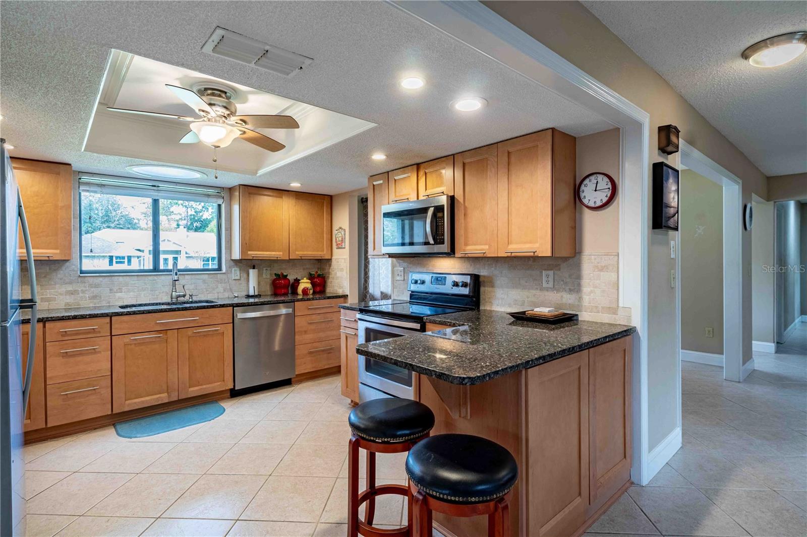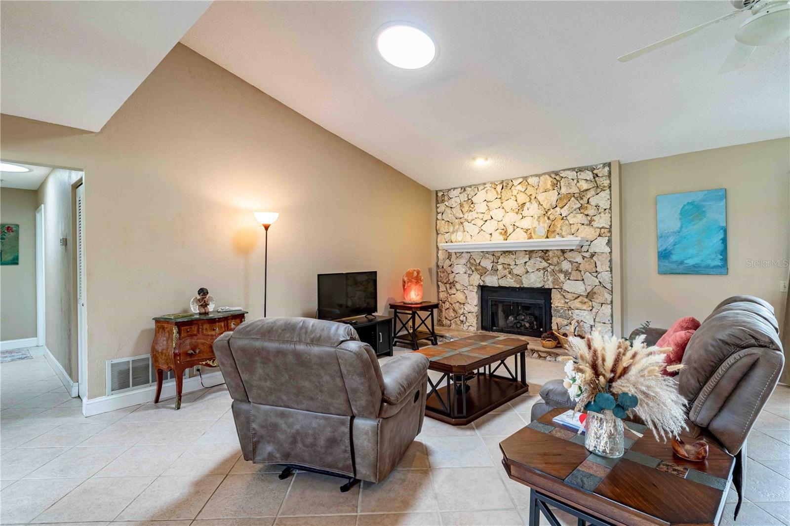 Welcome to Pelican Bay, a gated community offering an ideal central location close to the beach, Orlando, I-95, and I-4! This beautifully maintained 3-bedroom, 2-bath home features an open floor plan filled with natural light from solar tubes, a cozy fireplace, vaulted ceilings, and a kitchen with granite countertops and newer stainless appliances. Step outside to a screened porch, a lovely patio, and a built-in hot tub—perfect for relaxing or entertaining. With a 2-car side-entry garage and a updated HVAC and water heater (2023), brand new spa heater...this home is move-in ready.