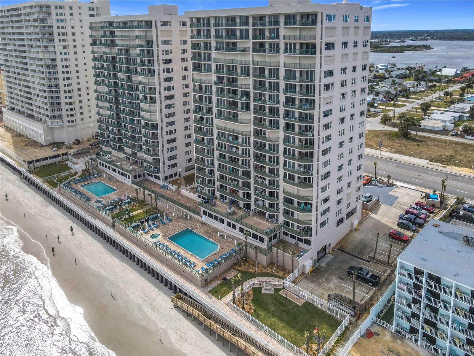 Experience coastal living at its finest in this stunning 14th-floor condo at the prestigious Dimucci Twin Towers, built in 2007. This spacious skyhome features an open floor plan designed to maximize breathtaking views. The family room offers panoramic river vistas, while the separate living room showcases sweeping oceanfront views. The chef’s kitchen is a culinary dream, complete with a breakfast bar, Corian countertops, ample storage, and all appliances included. The master suite is your private retreat, featuring sliding doors to the oceanfront balcony, a walk-in closet, and a spa-like master bathroom with dual sinks, a soaking tub, and a separate shower. Ceramic tile graces the main living areas, while cozy Berber carpet enhances the bedrooms. Custom electric hurricane shutters add peace of mind. Wake up to stunning sunrises on your oceanfront balcony and unwind with spectacular sunsets from the comfort of your family room. AC 2 years old. Resort-style amenities include: Oceanfront social/club room and fitness center, Secured reserved parking, Front door security answering system, Two oceanfront pools and spas, plus expansive sun decks and lounge areas. Ideal as a primary residence, second home, or investment property, with a two-week minimum rental policy. Pet-friendly, allowing two pets up to 60 lbs each. Furnishings are negotiable, making this an effortless move into luxury living. Don’t miss your chance to own a piece of paradise!