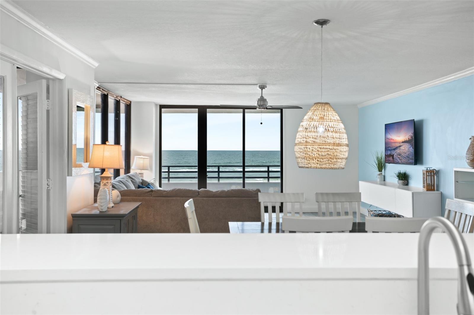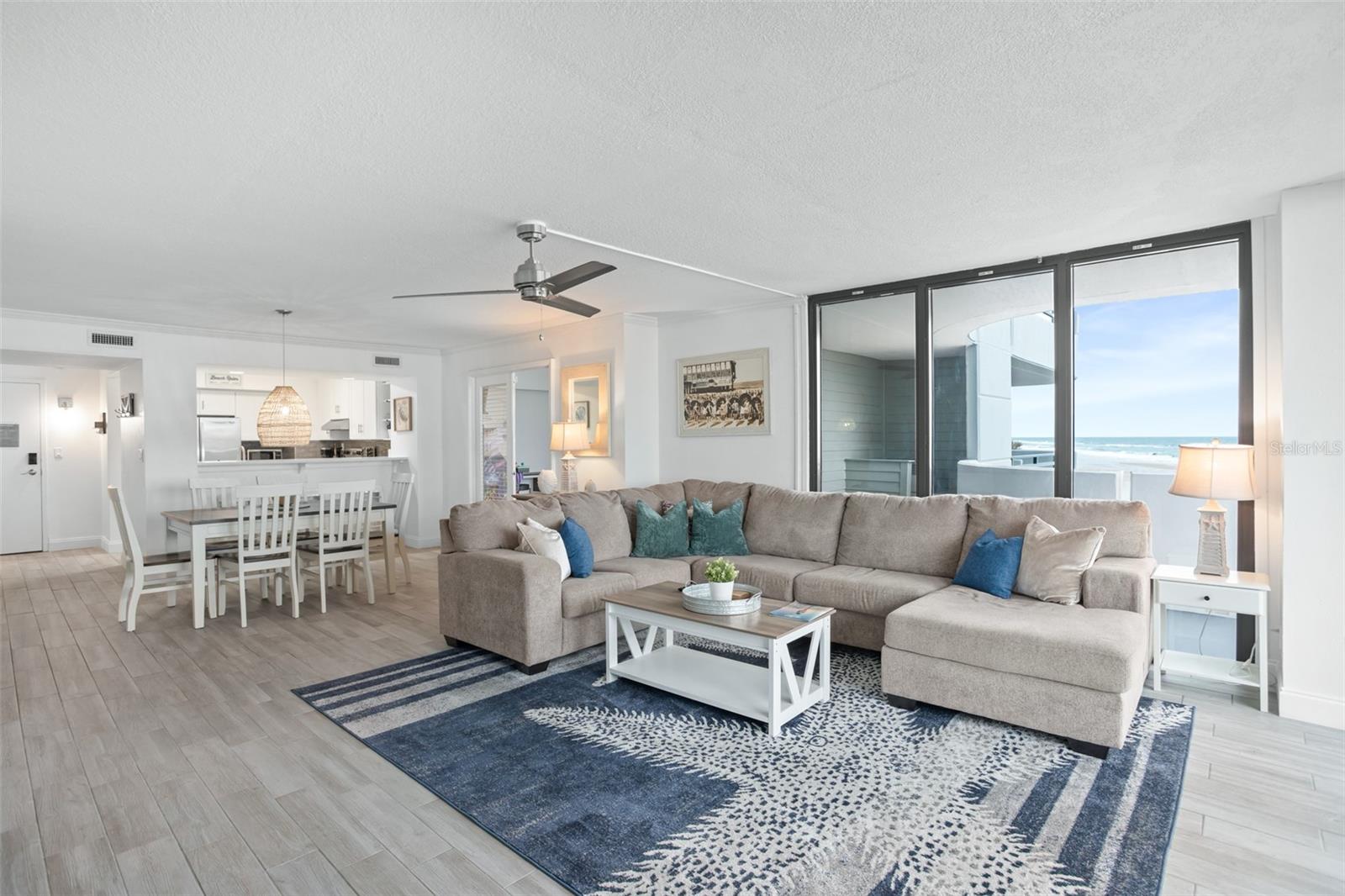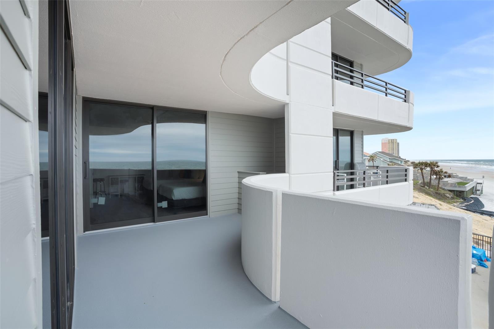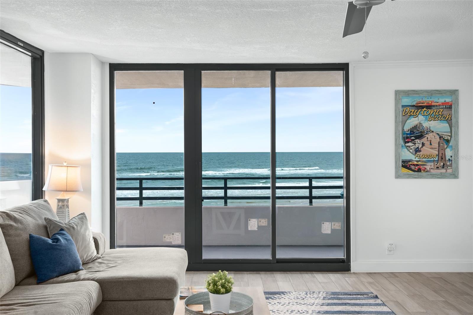 DIRECT OCEANFRONT VIEW! Welcome home to this beautiful updated FULLY FURNISHED 2 bedroom 2 bath beach dream! Perfect as a primary residence - live like you’re on vacation all year - or use it as a private retreat/vacation home and investment property as this complex allows weekly SHORT TERM rentals and offers fabulous amenities like a sparkling oceanfront pool, BBQ area, fully equipped fitness room, laundry facilities, and reserved underground parking. Move in or start renting immediately! This condo is turn-key and features an open concept layout with an abundance of natural light and gorgeous views of the ocean from every room! The living and dining room is spacious and is perfect for intimate family gatherings or entertaining. The kitchen offers modern conveniences including upgraded stainless steel appliances, custom cabinets, plenty of counter space, and a breakfast bar. With a split floorplan, both bedrooms afford privacy and direct access to a private balcony to enjoy the tranquil views of the Atlantic shoreline all year round. The primary bedroom has a large closet and an ensuite with a double vanity and a walk-in shower. The Horizons Condo is conveniently located near groceries, numerous shopping, dining, and entertainment options, all that Daytona has to offer… beaches, history, tours, and family fun! Everyday is a vacation!