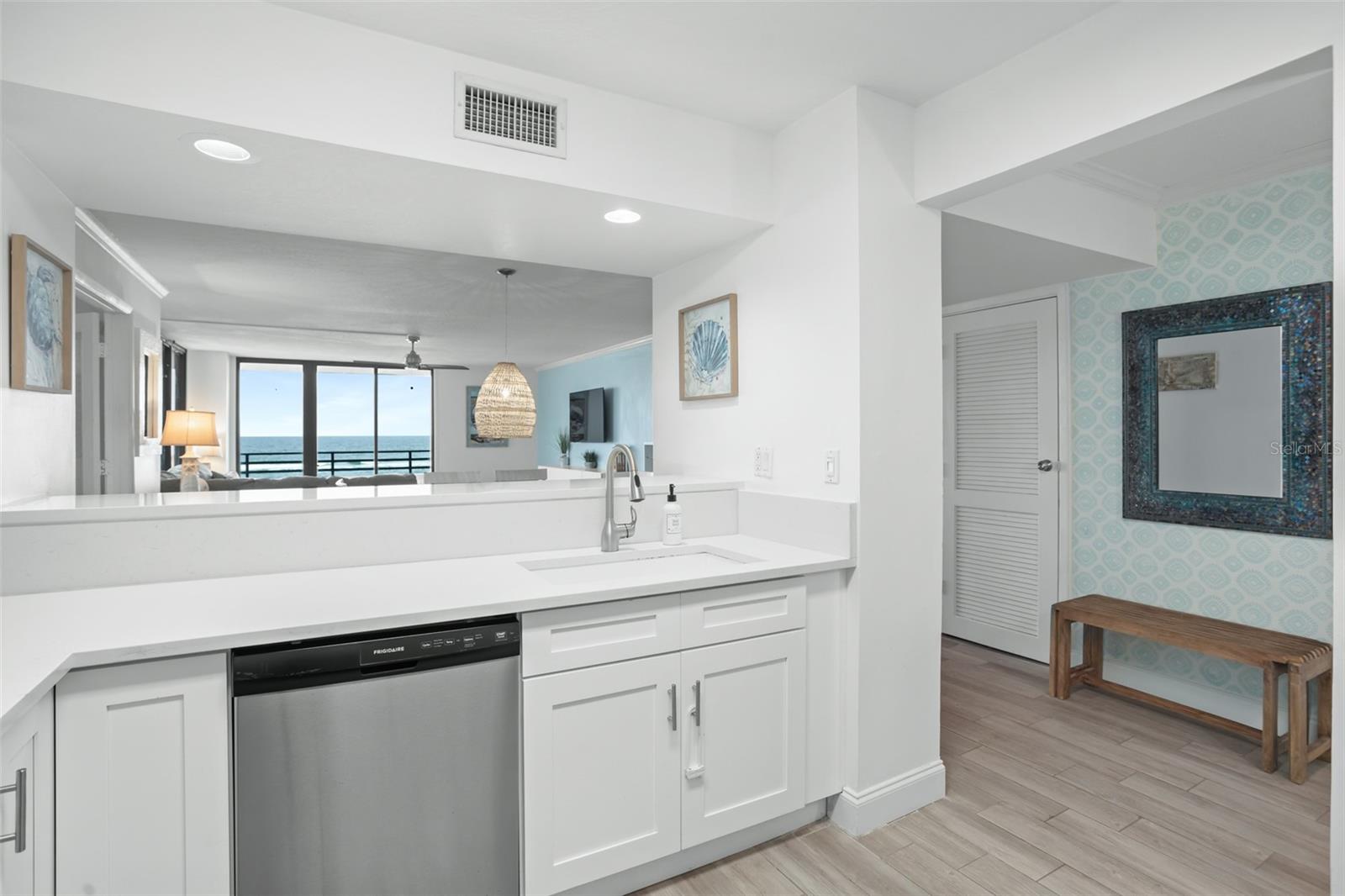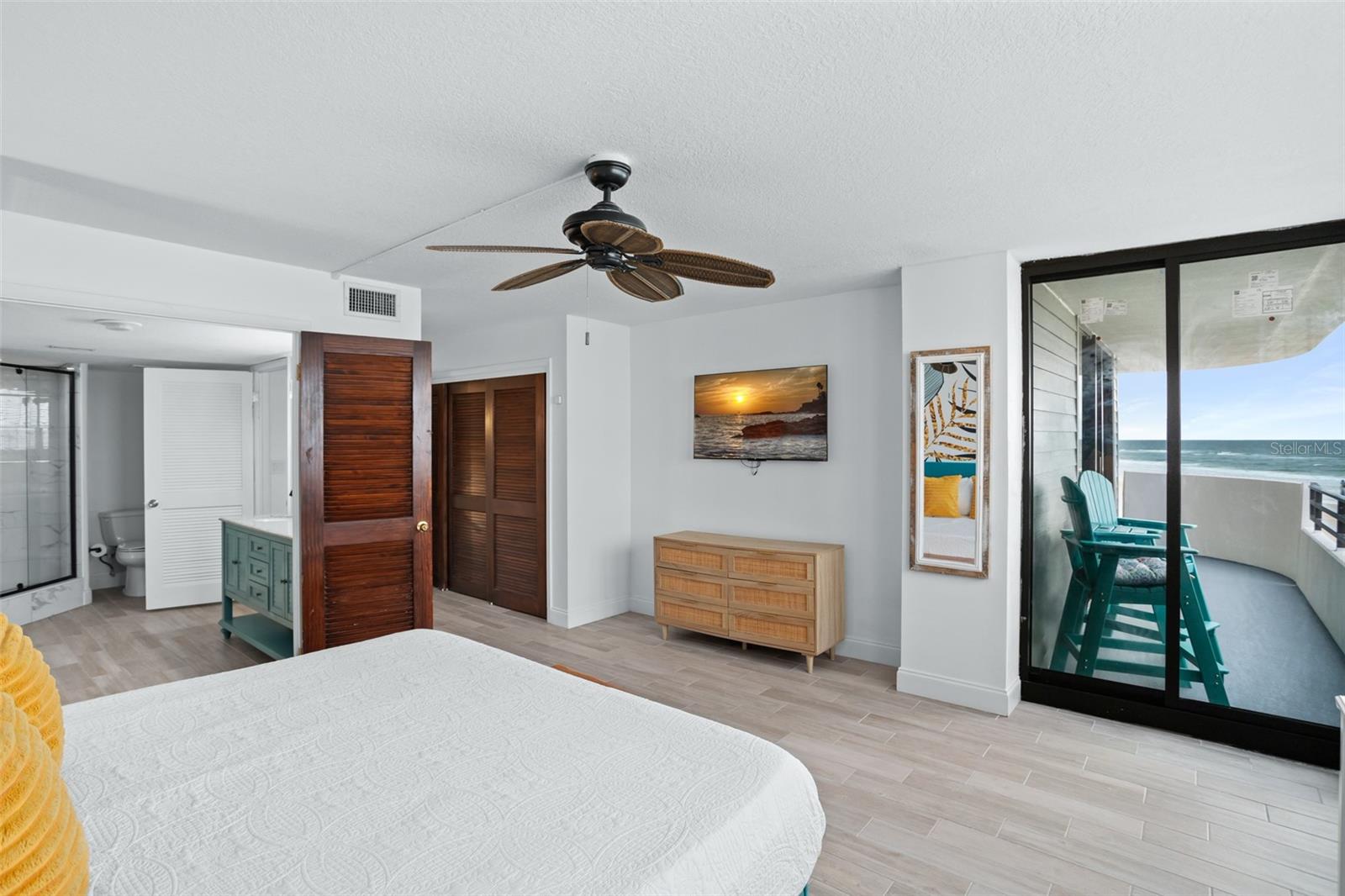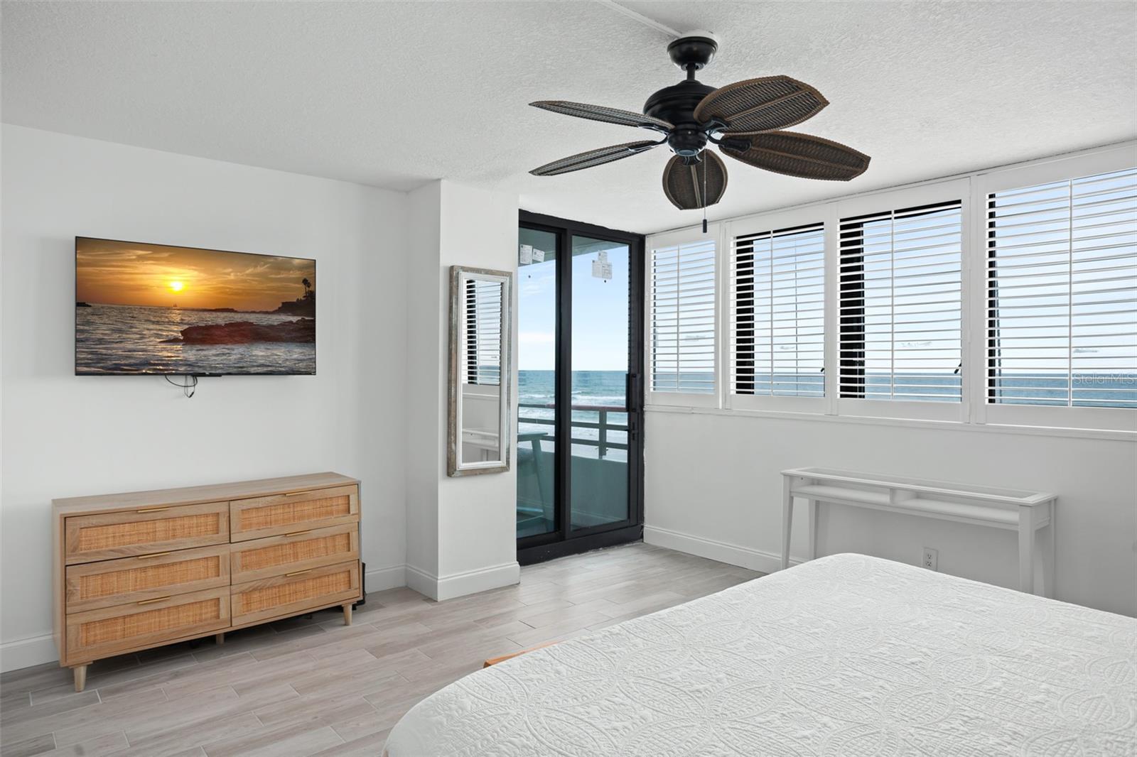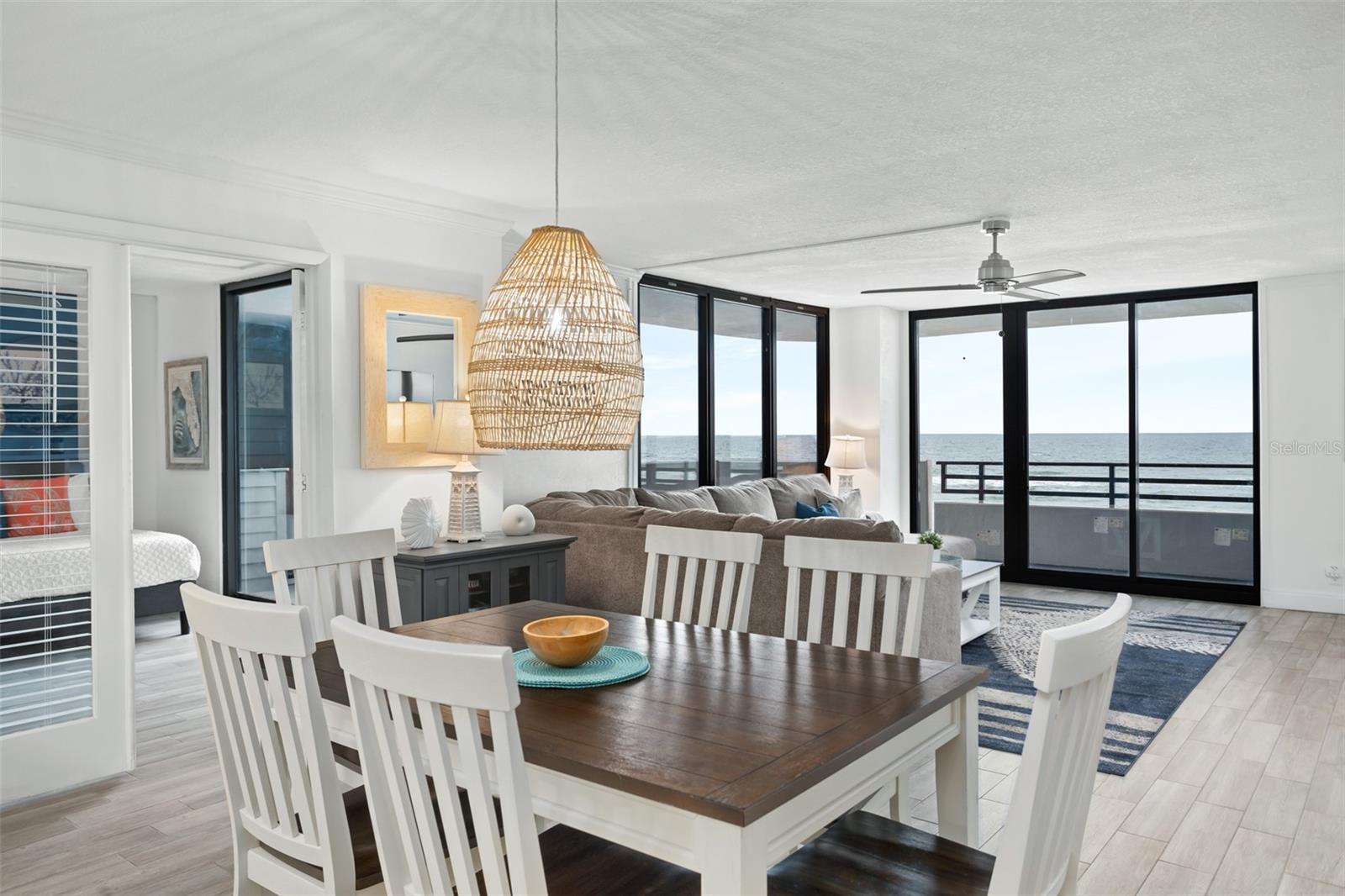 DIRECT OCEANFRONT VIEW! Welcome home to this beautiful updated FULLY FURNISHED 2 bedroom 2 bath beach dream! Perfect as a primary residence - live like you’re on vacation all year - or use it as a private retreat/vacation home and investment property as this complex allows weekly SHORT TERM rentals and offers fabulous amenities like a sparkling oceanfront pool, BBQ area, fully equipped fitness room, laundry facilities, and reserved underground parking. Move in or start renting immediately! This condo is turn-key and features an open concept layout with an abundance of natural light and gorgeous views of the ocean from every room! The living and dining room is spacious and is perfect for intimate family gatherings or entertaining. The kitchen offers modern conveniences including upgraded stainless steel appliances, custom cabinets, plenty of counter space, and a breakfast bar. With a split floorplan, both bedrooms afford privacy and direct access to a private balcony to enjoy the tranquil views of the Atlantic shoreline all year round. The primary bedroom has a large closet and an ensuite with a double vanity and a walk-in shower. The Horizons Condo is conveniently located near groceries, numerous shopping, dining, and entertainment options, all that Daytona has to offer… beaches, history, tours, and family fun! Everyday is a vacation!