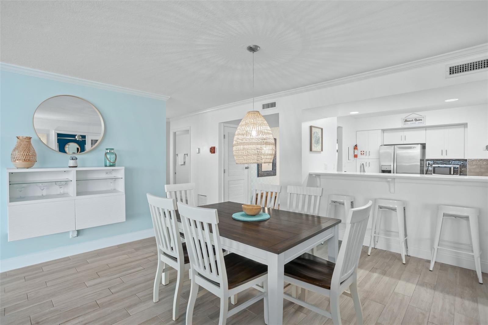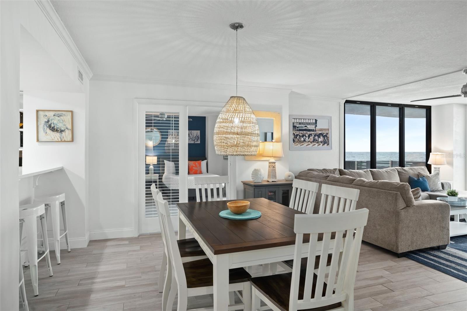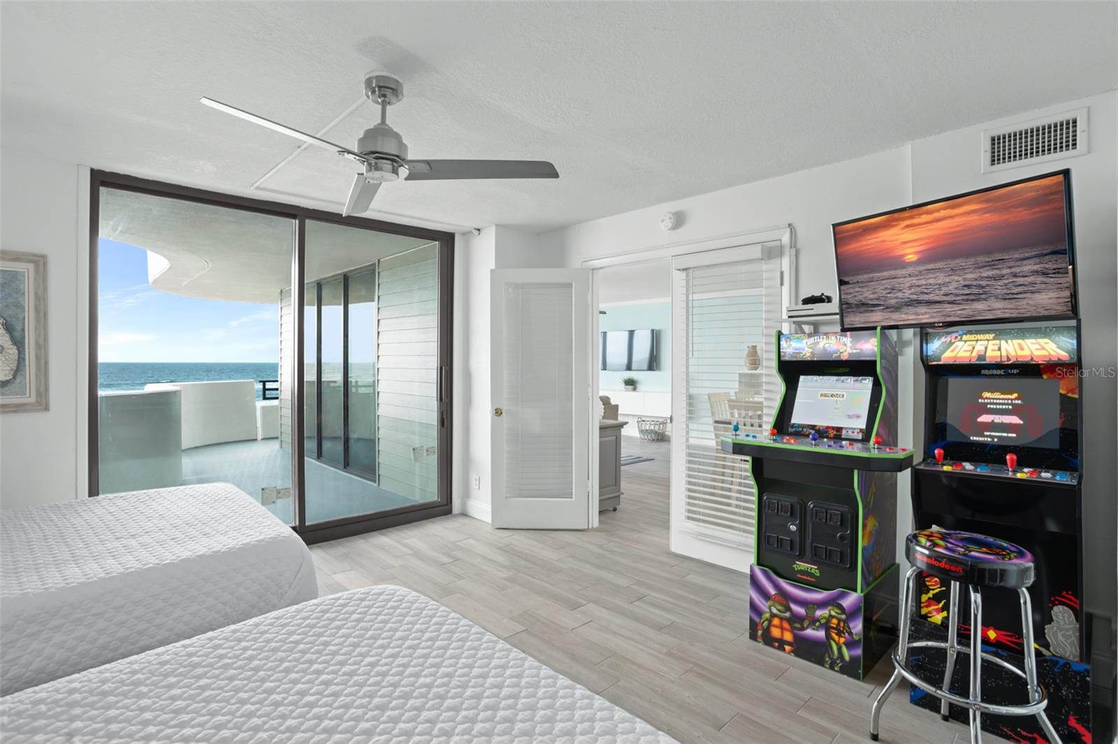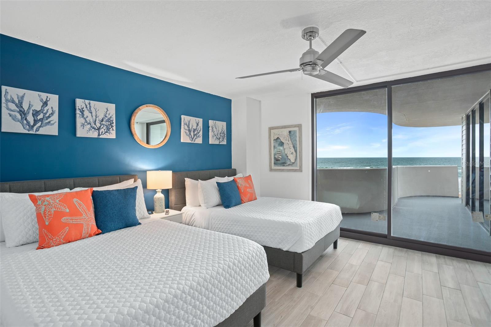DIRECT OCEANFRONT VIEW! Welcome home to this beautiful updated FULLY FURNISHED 2 bedroom 2 bath beach dream! Perfect as a primary residence - live like you’re on vacation all year - or use it as a private retreat/vacation home and investment property as this complex allows weekly SHORT TERM rentals and offers fabulous amenities like a sparkling oceanfront pool, BBQ area, fully equipped fitness room, laundry facilities, and reserved underground parking. Move in or start renting immediately! This condo is turn-key and features an open concept layout with an abundance of natural light and gorgeous views of the ocean from every room! The living and dining room is spacious and is perfect for intimate family gatherings or entertaining. The kitchen offers modern conveniences including upgraded stainless steel appliances, custom cabinets, plenty of counter space, and a breakfast bar. With a split floorplan, both bedrooms afford privacy and direct access to a private balcony to enjoy the tranquil views of the Atlantic shoreline all year round. The primary bedroom has a large closet and an ensuite with a double vanity and a walk-in shower. The Horizons Condo is conveniently located near groceries, numerous shopping, dining, and entertainment options, all that Daytona has to offer… beaches, history, tours, and family fun! Everyday is a vacation!