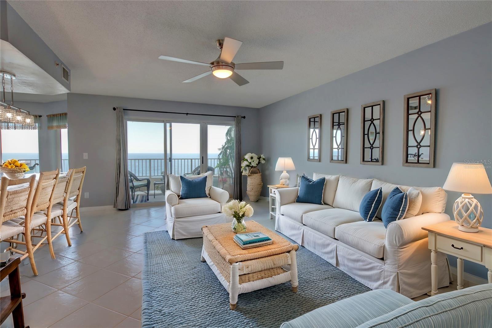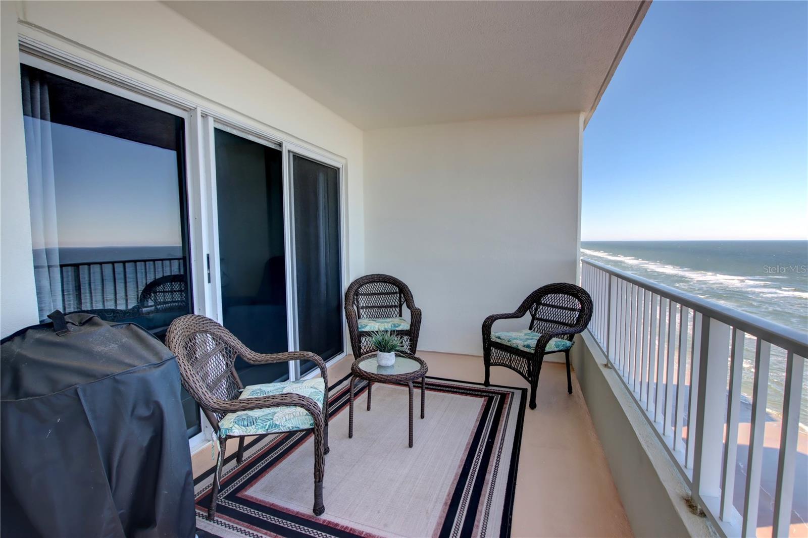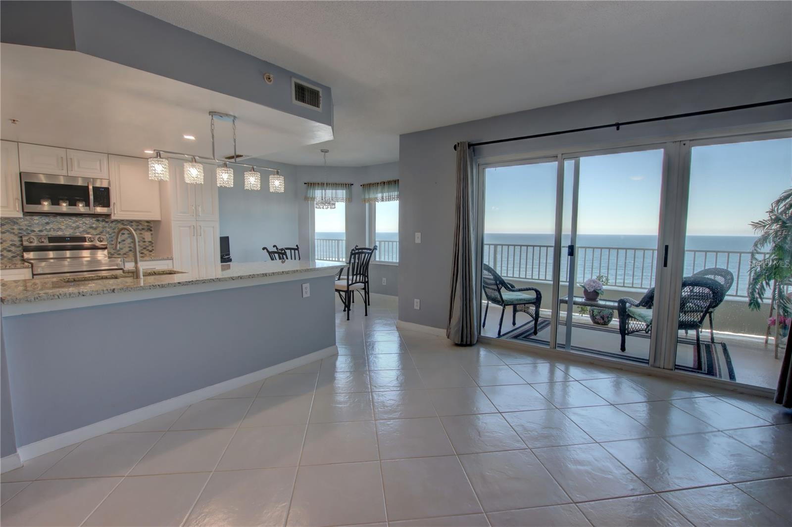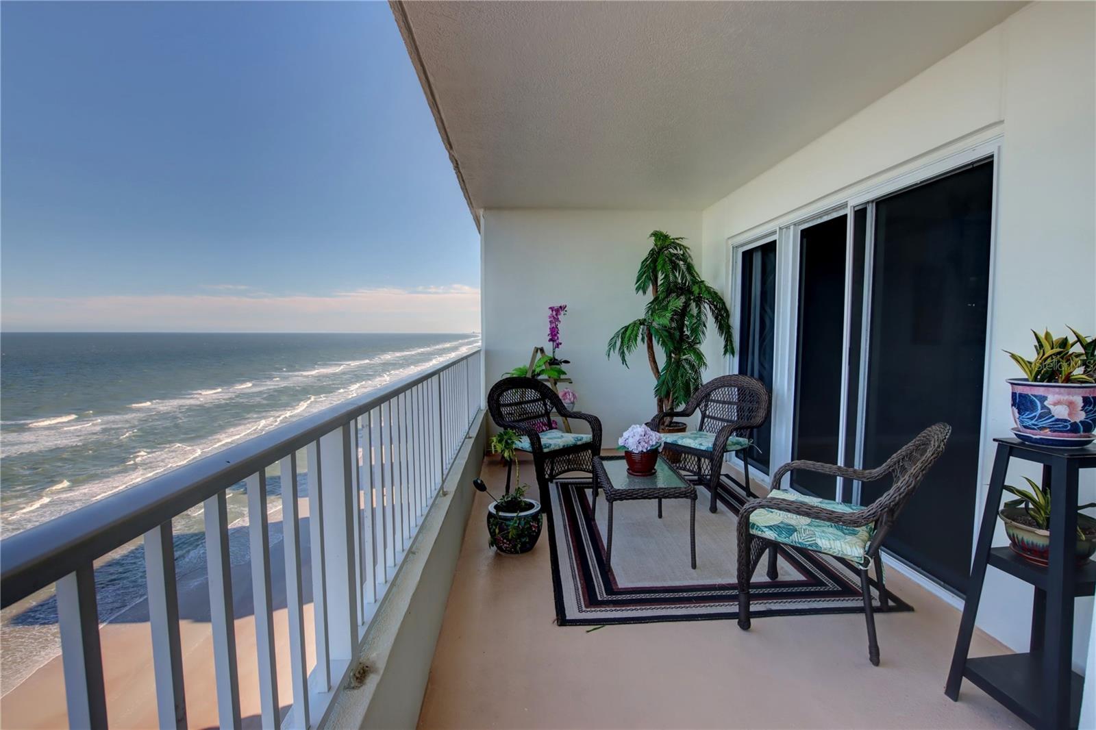 One or more photo(s) has been virtually staged. Welcome to your dream coastal retreat! Situated in the prestigious Oceans Eight, this stunning two-bedroom, two-bathroom oceanfront condo offers uninterrupted, breathtaking views of the Atlantic Ocean alongside luxurious amenities that redefine beachfront living. Step into a thoughtfully designed open floor plan, where expansive windows flood the space with natural light and frame panoramic ocean views. The heart of this residence is the private 20th-floor balcony, a perfect vantage point to watch vibrant sunrises, spot playful dolphins, or simply unwind to the soothing rhythm of waves crashing on the shore. The interior of this home exudes comfort and elegance. The bright and airy living and dining areas are ideal for entertaining, with stunning ocean vistas serving as the perfect backdrop. The updated kitchen, with its ample cabinet space and modern finishes, invites you to create culinary masterpieces inspired by the sea. The primary suite offers a peaceful sanctuary with unparalleled ocean views, a spacious walk-in closet, and a beautifully updated en-suite bathroom featuring a soaking tub and a walk-in shower. The second bedroom is equally inviting, providing versatility as a guest retreat or a home office, paired with an additional full bathroom for convenience. Living at Oceans Eight means enjoying resort-style amenities that enhance your coastal lifestyle. Relax in the oceanfront pool or the heated indoor pool, stay active in the fully equipped fitness center, or unwind in the sauna. Each unit includes underground parking with additional surface parking and a convenient car wash area. For added convenience, the first floor features secure personal storage cages and bike storage area, perfect for those who love exploring Daytona Beach Shores on two wheels. Nestled in a prime location, this exceptional property is just minutes from shopping, dining, golf, and all the attractions that make Daytona Beach Shores a sought-after destination. Whether you’re looking for a full-time residence, a vacation escape, or a savvy investment property, this oceanfront condo offers the ultimate blend of luxury, comfort, and coastal charm. Don’t miss this rare opportunity to own a slice of paradise—schedule your private showing today!