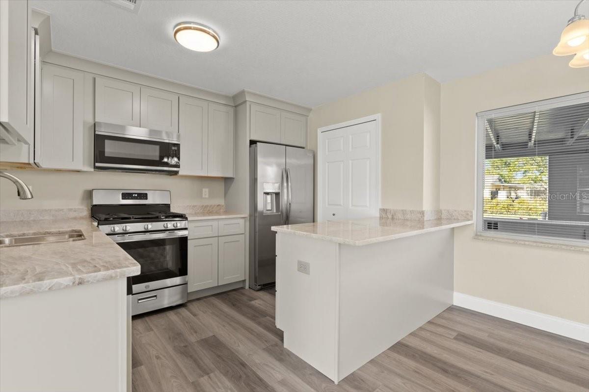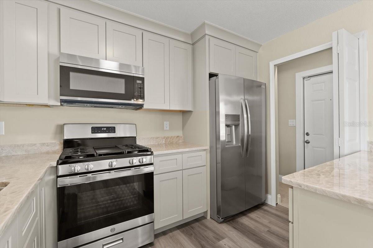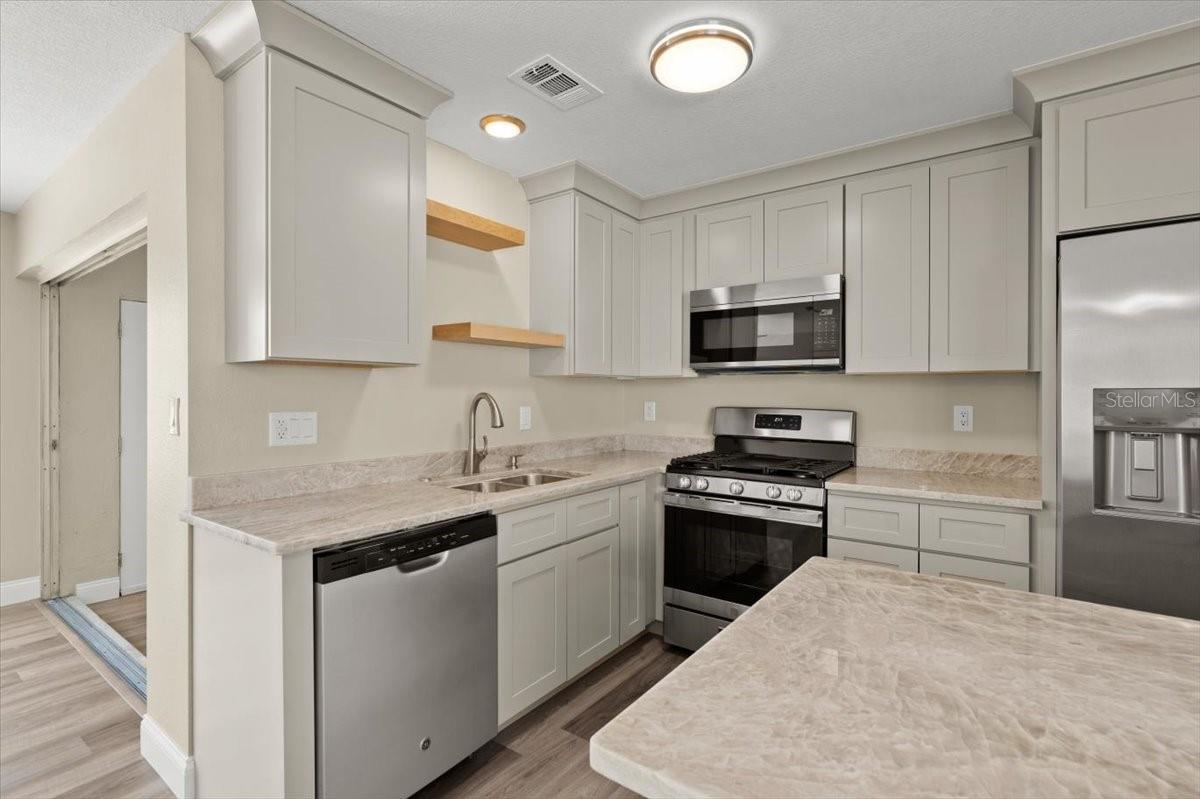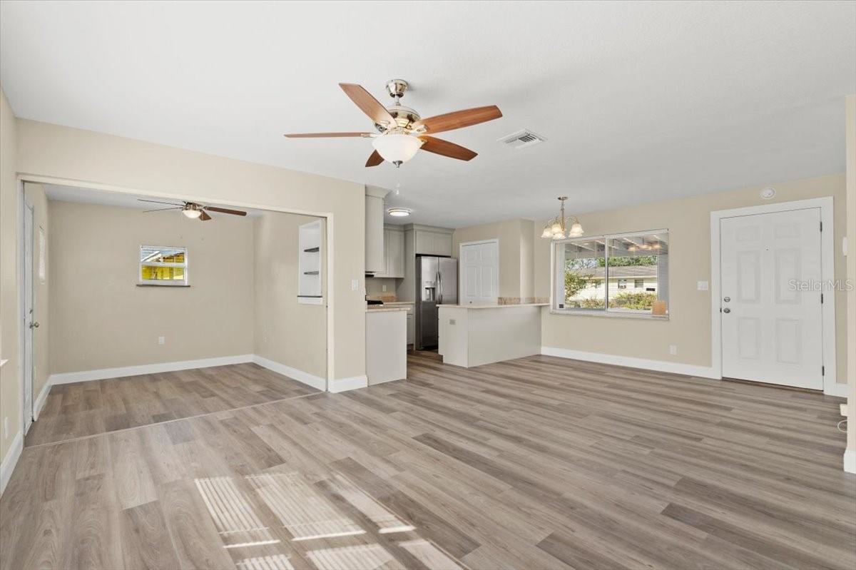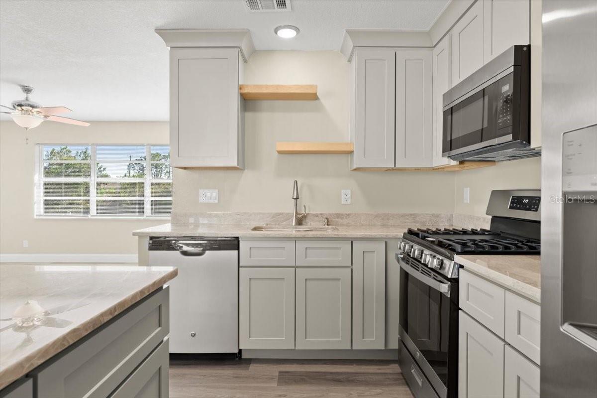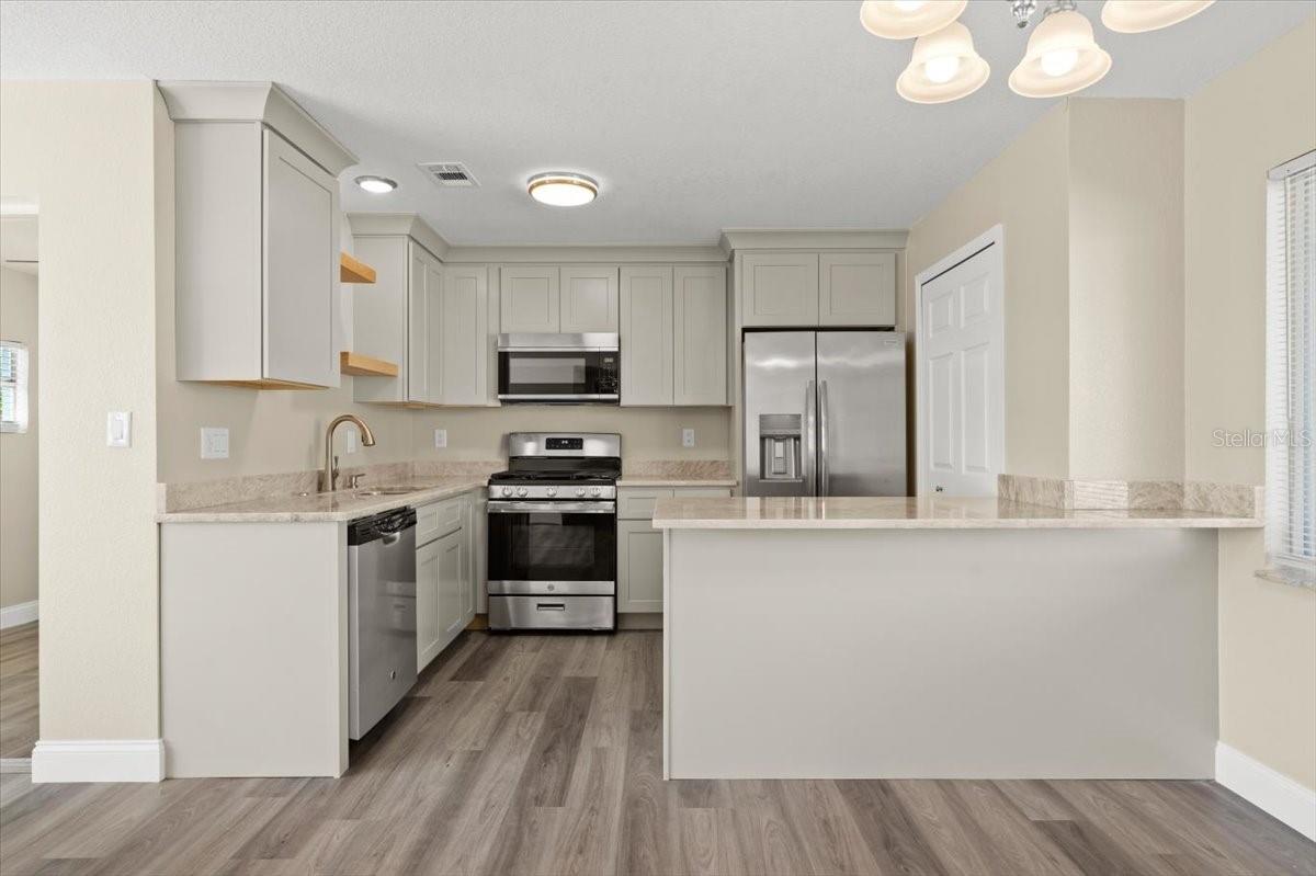 Tucked away in a quiet cul-de-sac, this fully updated home welcomes you with modern charm and everyday comfort. Step inside to find brand-new luxury vinyl plank flooring flowing throughout, illuminated by all-new lighting. The open floor plan feels bright and inviting, with a spacious living area and a versatile flex space perfect for an office, reading nook, or play area. The beautifully remodeled kitchen features sleek quartzite countertops, soft-close cabinetry, and brand-new stainless steel appliances. Just off to the side, the laundry room doubles as a pantry, offering extra storage without sacrificing style. Down the hall, fully updated bathrooms add a spa-like touch, while each bedroom provides a peaceful retreat. Outside, the fenced-in backyard offers privacy and space to relax, entertain, or let pets roam freely. Ideally located less than ten minutes from Tanger Outlets, Buc-ee’s, and Daytona International Airport, and under fifteen minutes from the beach, this home blends tranquility with convenience. With modern updates and a move-in-ready feel, it’s a space designed to be loved.