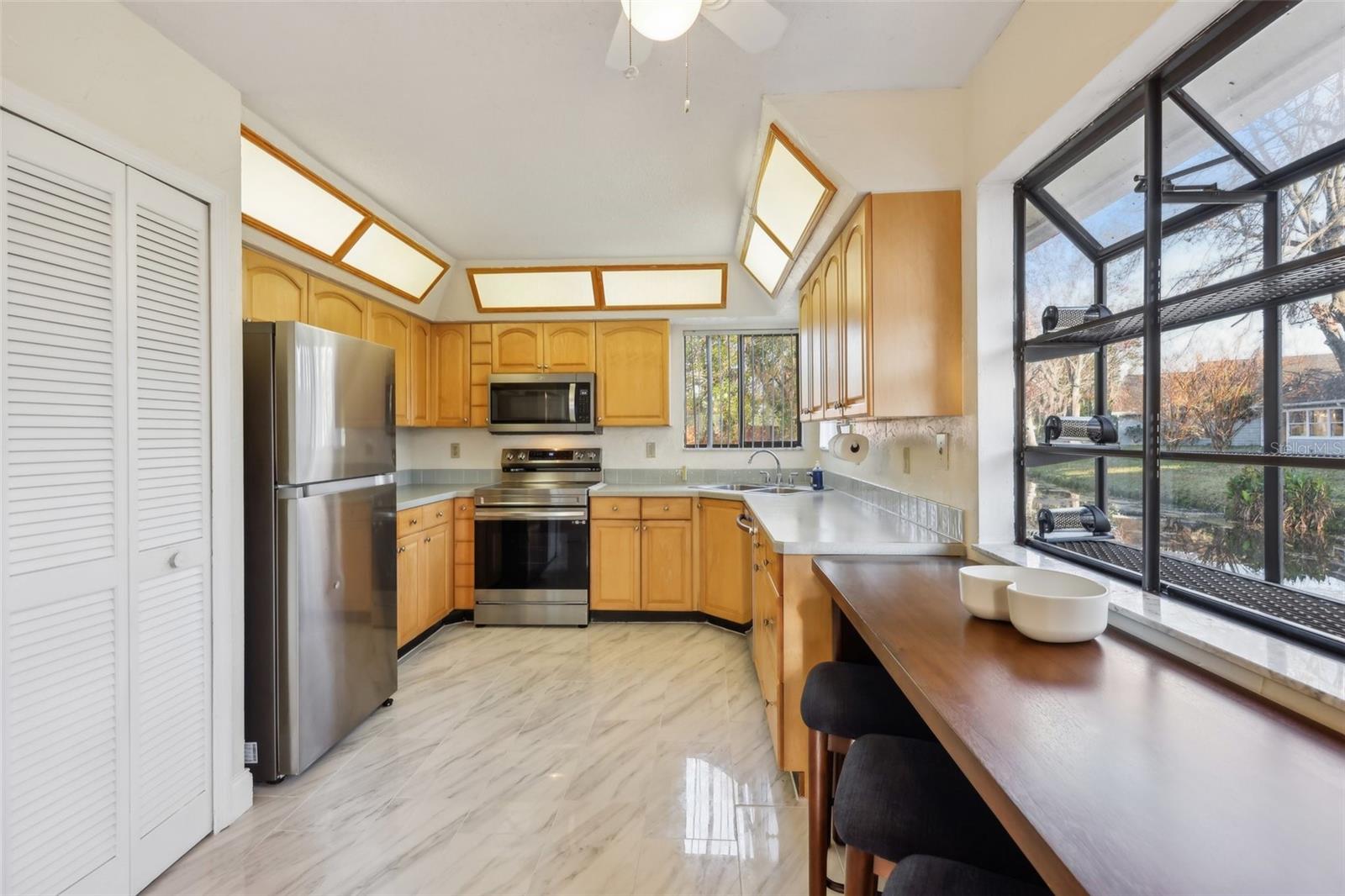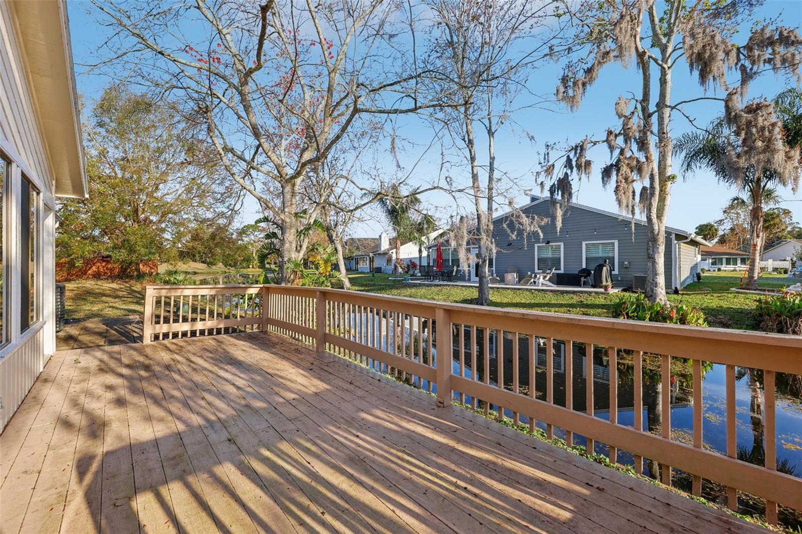 NEW ROOF BEING INSTALLED! Welcome to your Retreat in Pelican Bay – STUNNING Views & Prime Location! Welcome to 124 Loon Ct, Daytona Beach, FL, a beautifully designed 2-bedroom, 2-bathroom, 2 car garage home tucked away on a quiet cul-de-sac in the highly sought-after (24 hour) guard-gated Pelican Bay golf community. Offering breathtaking panoramic water views of the natural lakes and canals, this home provides a serene and flood-free setting, perfect for enjoying nature at its finest. Step inside to discover a spacious living room with soaring vaulted ceilings, where an abundance of natural light highlights the elegant engineered hardwood floors that flow seamlessly through the main living areas. The open and airy design creates a warm and inviting space, ideal for both relaxing and entertaining. The beauty of this home extends outdoors to a nearly 200 sq. ft. wood deck, where you can sip your morning coffee or unwind in the evening while watching playful otters and native wildlife in the tranquil waters. This is a rare opportunity to own a gem with these views in one of Daytona Beach’s most desirable communities. Don’t miss out, schedule your private tour today!
