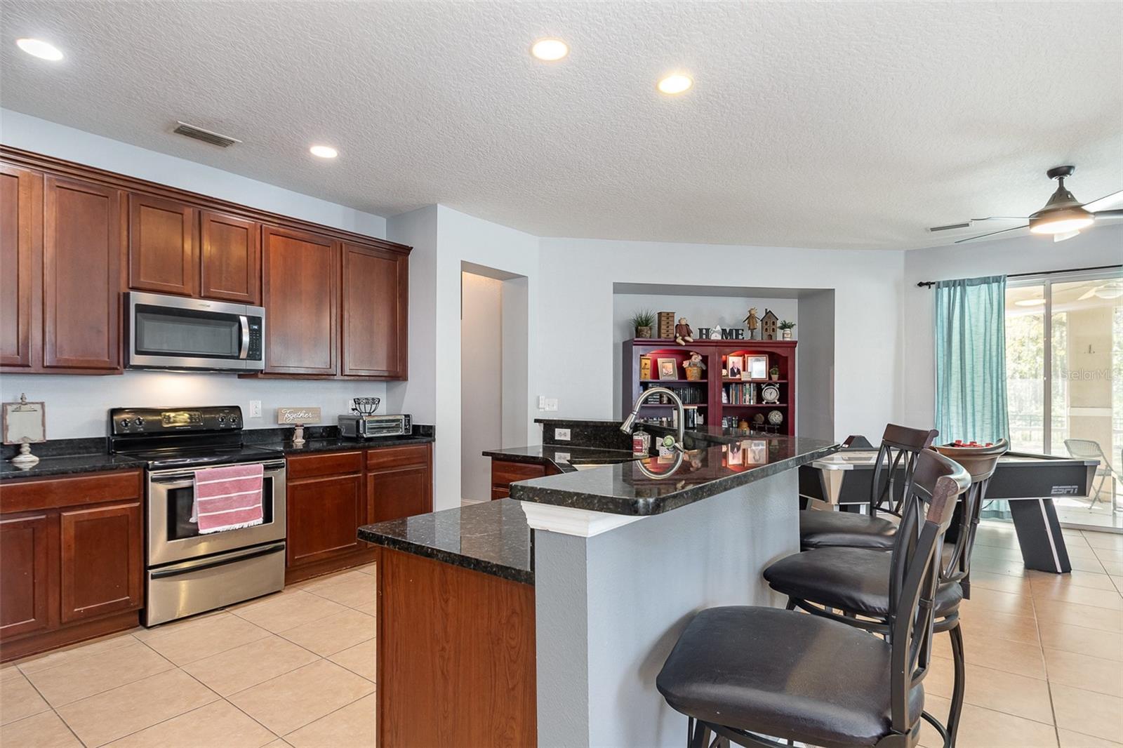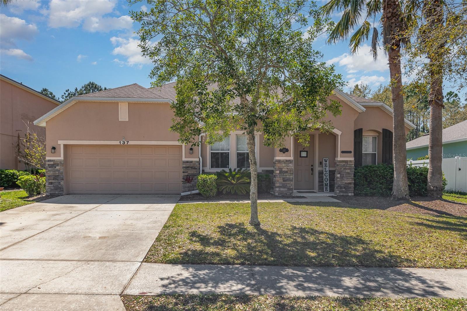 Discover the perfect blend of style and functionality in this beautifully designed 4-bedroom, 2-bathroom home in the sought-after Bayberry Lakes community of Daytona Beach. With an open and flexible layout, this home offers endless possibilities to suit your lifestyle. Step inside to find a bright and airy flex space—ideal for a formal living and dining area or a cozy family retreat. The modern kitchen is a showstopper, featuring 42-inch cabinetry, sleek granite countertops, stainless steel appliances, bar seating, and an inviting eat-in nook. Just off the kitchen, a versatile den offers the perfect spot for a home office, playroom, or additional lounge space. The spacious primary suite is designed for relaxation, boasting a large walk-in closet, dual vanity sinks, a walk-in shower, and a luxurious garden tub. Three additional bedrooms provide plenty of space for family, guests, or creative workspaces. Designed for convenience, this home also includes an indoor laundry room and a two-car garage. Outside, enjoy the oversized backyard—perfect for entertaining or unwinding in your private screened lanai. Located just minutes from shopping, dining, and the world-famous Daytona Beach, Bayberry Lakes Community includes a clubhouse, basketball courts, playground and a swimming pool. This home offers modern comfort in a prime location. Don’t miss out—schedule your showing today!