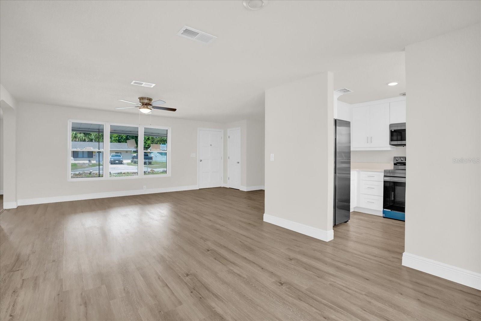 Get ready to fall in love the moment you arrive! This charming ranch-style gem is bursting with curb appeal, featuring beautiful stone accents along the fence and a spacious front yard that welcomes you home with warmth and character. This home also happens to be in one of the few areas that has not experienced flooding! Whether you're dreaming of relaxing mornings on the porch or hosting lively weekend get-togethers, this home sets the stage for everything you’ve been hoping for—and more. Step inside and you’re immediately greeted by an airy, wide-open layout that flows effortlessly from the foyer into the spacious family and dining areas. Sunshine pours in through a multitude of windows, filling every corner with natural light. Just off to the right, you’ll find a massive living room designed for connection and comfort—complete with a gorgeous brick fireplace that sets the scene for warm, cozy evenings and unforgettable memories. The kitchen is a dream come true—freshly updated with brand-new stainless steel appliances, loads of cabinet space, and a perfect view of your backyard so you can keep an eye on everything while cooking up something special. Every room in the home is generously sized, freshly painted in timeless neutral tones, and finished with luxurious brand-new vinyl plank flooring that adds just the right touch of modern flair. Slide open the doors to your backyard oasis and step into a world of possibility. With a fully fenced yard, an above-ground pool, and a detached workshop with carport, there’s space to relax, entertain, create, and explore. Whether it’s BBQs, bonfires, or building your dream outdoor hangout—this space is ready for it all. And the updates? They’re already done for you. Enjoy the peace of mind that comes with a brand-new A/C, new windows, a 2022 roof, and wiring ready for a generator. And the best part—there’s no HOA, so you can truly enjoy your home on your own terms. Located just minutes from the beach and Intracoastal Waterway, you’ll have instant access to everything that makes coastal living so special—fishing, kayaking, boating, scenic trails, and even a golf course less than a mile away. Plus, with downtown Ormond Beach just around the corner, you’re never far from charming boutiques, delicious dining, and a lively local vibe. Please be mindful of the stepdown from foyer into the Family Room with Fireplace. This home has the space, the updates, the location, and the heart. Come see it for yourself and fall in love. Call to schedule your showing today!