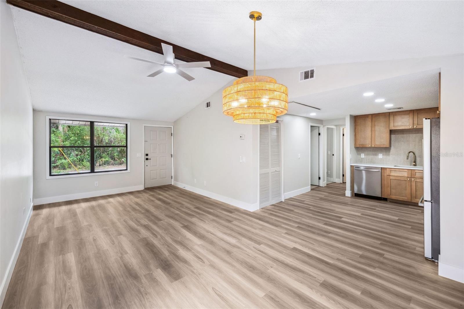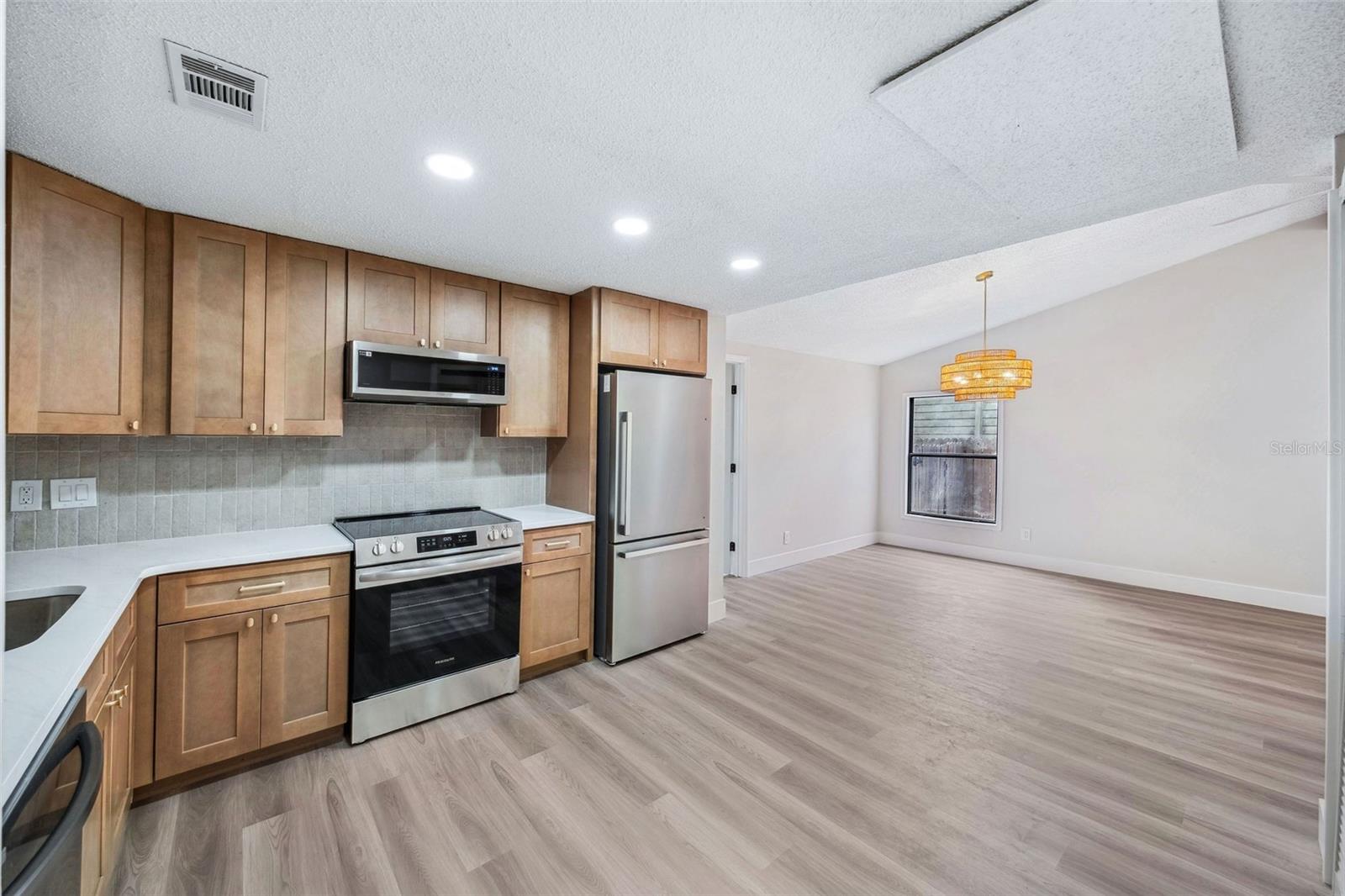 This is a fully remodeled 3-bedroom house in Daytona. This property features extensive updates, making it a truly move-in ready home. The renovations include: * A brand new plumbing system throughout, complete with newly installed plumbing fixtures and toilets in all bathrooms. * A brand new water heater. * Brand new luxury vinyl plank flooring installed throughout the common areas and guest bathroom, along with new custom patterned carpet in the bedrooms. * A newly repainted interior and exterior, including the garage. * Brand new light fixtures and electrical devices throughout the home. * New door and cabinet hardware throughout. * A kitchen featuring new custom cabinetry topped with new quartz countertops and a custom tile backsplash. * A primary bathroom with a new custom double-sink vanity with a white engineered marble top, brand new custom tile flooring, and new plumbing, electrical fixtures, and hardware. * A guest bathroom that includes a brand new vanity with a ceramic countertop, new LVP flooring, a brand new tub with tub surround inserts, and new plumbing, electrical fixtures, and hardware. * Refreshed landscaping with new mulch and plants in the front flower beds. * Confirmation of full and proper functionality of the recently inspected septic system.