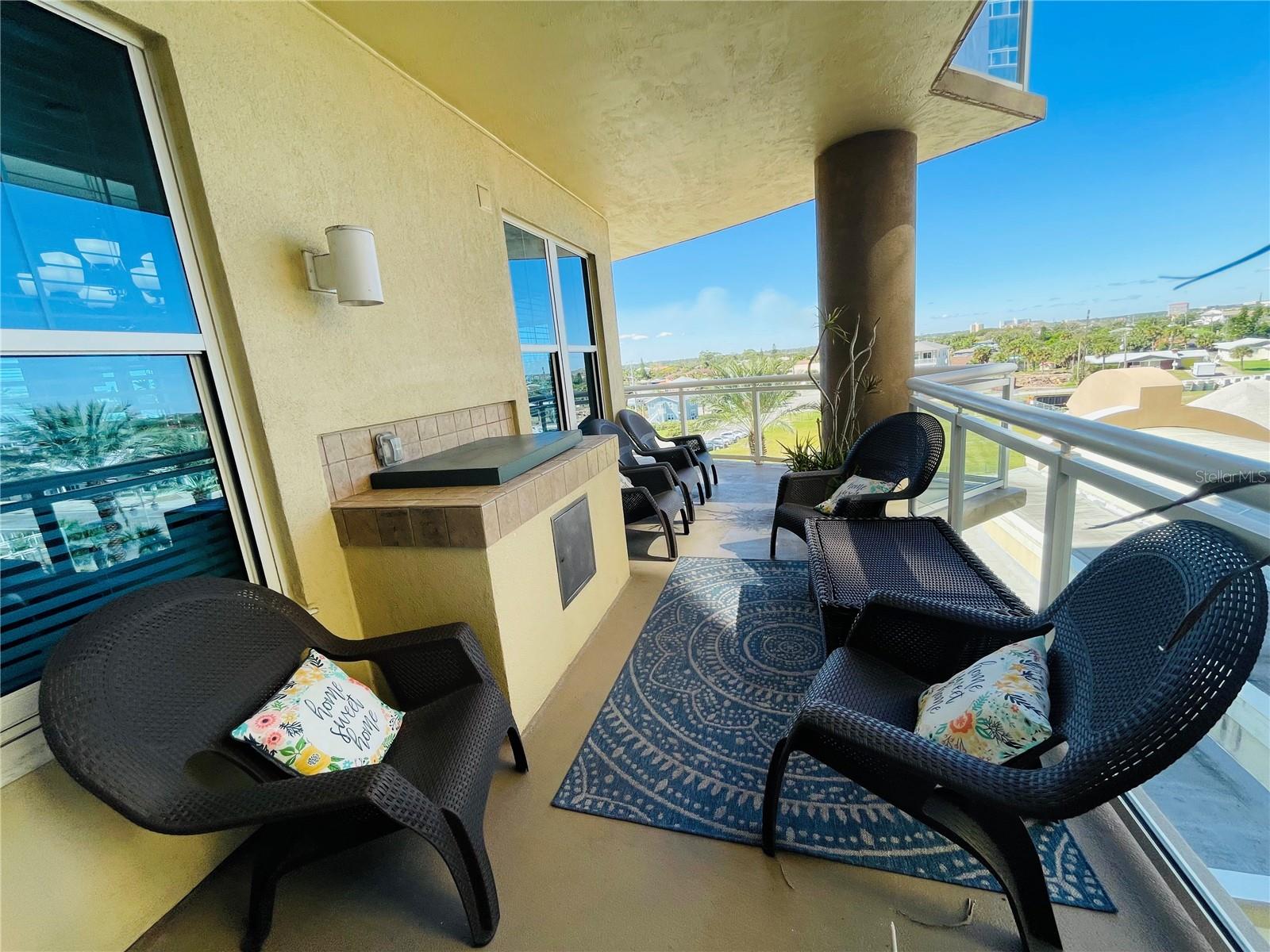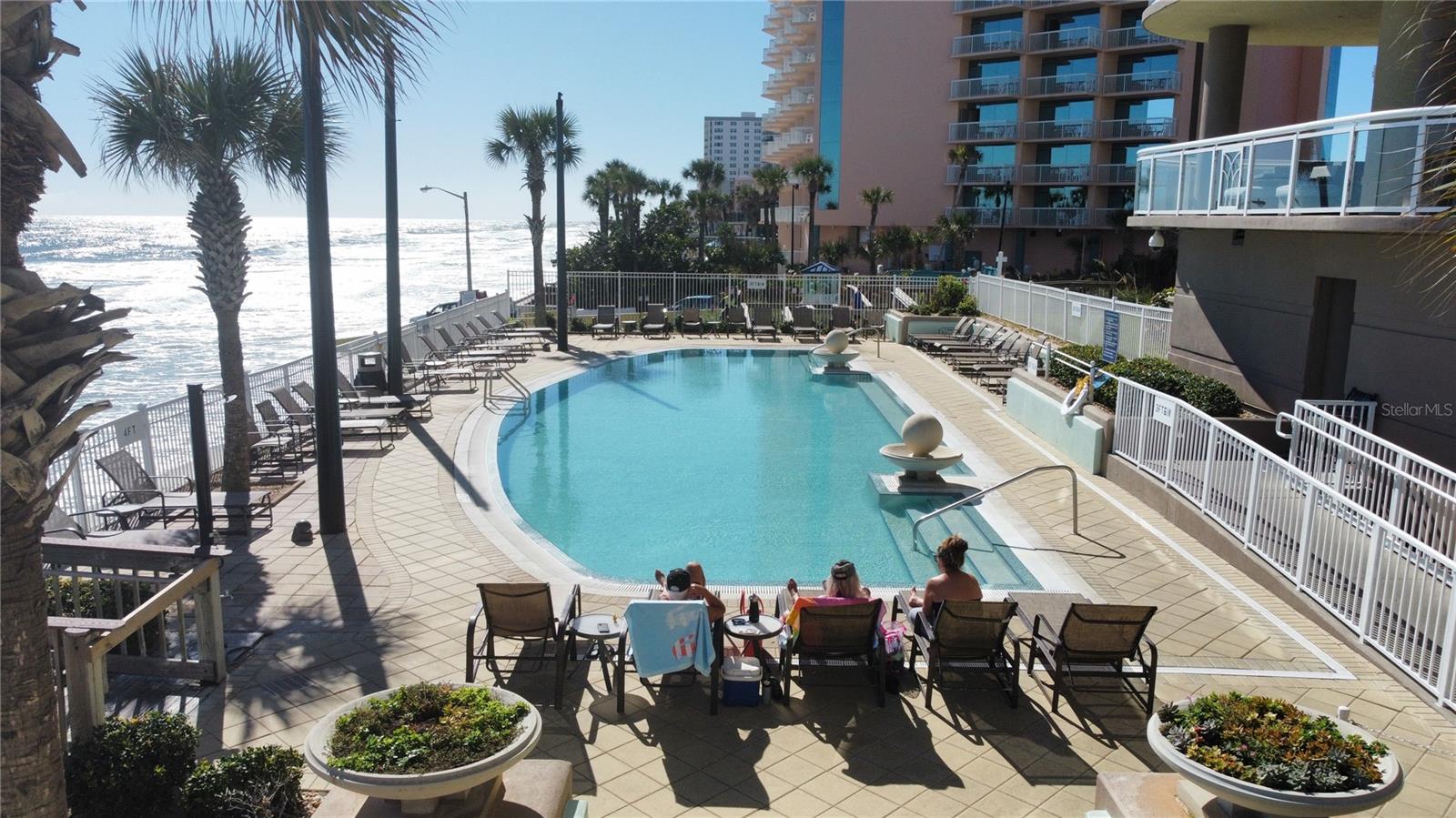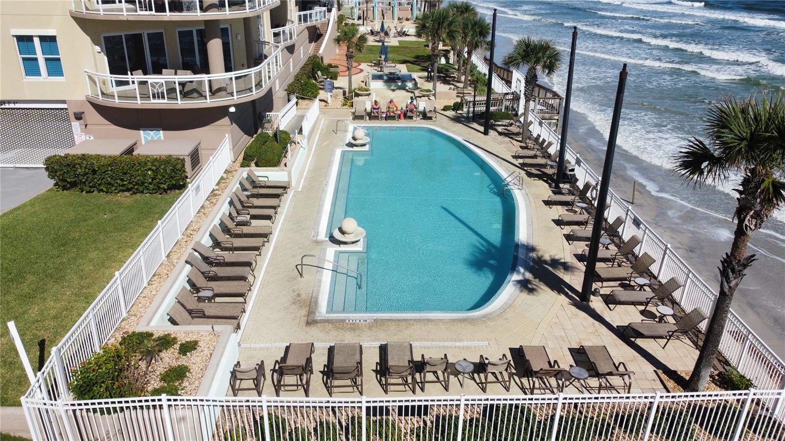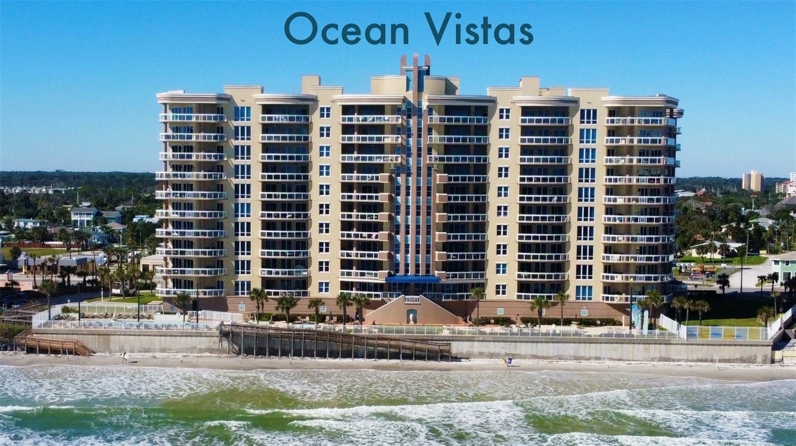Offered by its original and only owner. Welcome to Ocean Vistas unit 411 'Daytona Beach Shores’ most luxurious and highly coveted oceanfront condominium. ALLOWS 1 WEEK RENTALS. This stunning Amelia floor plan offers 2,097 square feet of luxury living space and a sprawling wrap-around balcony with an outdoor JenAir grill station. With its westerly exposure, the unit captures spectacular sunset views that paint the sky each evening, creating a serene and breathtaking atmosphere right from your private outdoor space. From the moment you arrive, you’ll notice the exclusivity and elegance that define Ocean Vistas. Semi-private elevator access leads directly to your double-door entry, opening into a sun-filled interior with soaring ceilings, luxury tile floors, and upscale finishes throughout. The spacious living room features an electric fireplace and flows seamlessly onto the balcony, where you can enjoy the ocean breeze and city views in style. The gourmet kitchen is a dream for both everyday living and entertaining, featuring granite countertops, top-grade cabinets, stainless steel appliances, a wine refrigerator, and a large center island with a veggie sink. A split-bedroom layout ensures privacy and comfort. The primary suite includes his-and-her walk-in closets, balcony access, and a resort-style bathroom with jetted tub, dual vanities, a spacious walk-in shower with dual shower heads and built-in bench, and a private water closet. The guest bedroom also has balcony access and connects directly to a full guest bathroom, offering a private, comfortable retreat for family or visitors. Additional highlights include a full laundry room with sink and a newer hot water heater. Lots of in-unit storage with an additional storage room and separate storage cage in the garage. Secured garage parking with an assigned spot nearest your elevator. Plus you are allowed 1 additional open parking spot. The unit is also pet-friendly, allowing two pets with a combined weight of up to 80 pounds. Ocean Vistas is celebrated as Daytona Beach Shores’ premier luxury address, and Unit 411 enjoys every advantage of its secure, access-controlled building. Resort-style amenities include a heated oceanfront pool and jacuzzi, expansive sun deck, oceanfront fire pit, and a well-equipped fitness center. The club room, ideal for hosting parties, features a pool table, bar, and cozy library, providing the perfect venue for everything from game nights to quiet reading. Residents also benefit from a business center, assigned garage parking, and direct private access to the beach. With one-week minimum rentals permitted, the residence offers excellent flexibility for personal use or premium rental income. Beyond the gates of Ocean Vistas, you’ll find yourself immersed in the vibrant lifestyle of Daytona Beach Shores, where the beach is your backyard and every day feels like a vacation. The area is rich with dining, boutique shopping, and cultural activities. Just minutes away is the world-famous Daytona International Speedway, as well as marinas, golf courses, and the Daytona Beach Pier. You're within a short drive of historic Ponce Inlet, the charming shops and restaurants of New Smyrna Beach, and just over an hour to Orlando’s world-class theme parks and international airport. Living at Ocean Vistas Unit 411 is more than a home, it’s a luxury lifestyle marked by stunning views, resort-level amenities, and access to everything the Central Florida coast has to provide.