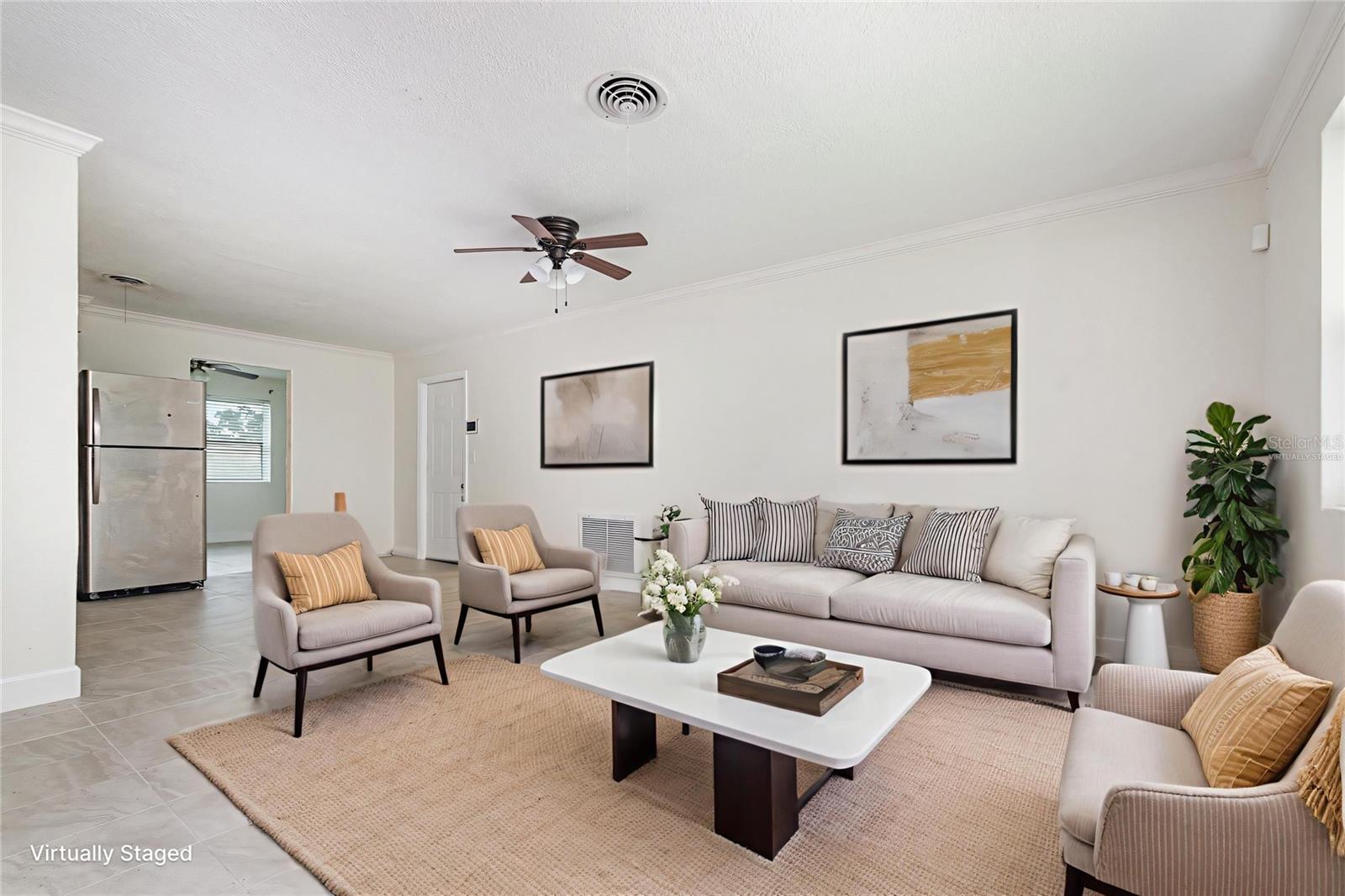 One or more photo(s) has been virtually staged. Nestled on a quiet street, this thoughtfully remodeled 3-bedroom, 2-bath home blends timeless 1960s charm with today’s style. Renovated in 2025, it features updated kitchen and baths with minor finishing touches remaining. New flooring, walls, and trim complete this rare opportunity.