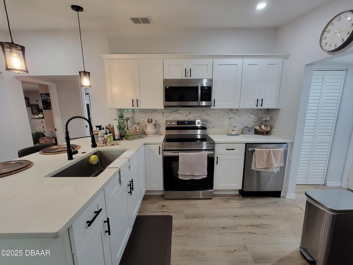 Discover the perfect blend of charm and modern style in this beautifully updated 3-bedroom home, located in the heart of Daytona Beach. Renovated in 2023 with an eye for detail, this quaint and charming residence offers peace of mind and contemporary living at its finest. Recent upgrades include a new roof (2023), new windows (2023) for enhanced efficiency, luxury flooring (2023), and so much more. In 2024, a new tankless water heater was also added, ensuring endless hot water and modern convenience. From the moment you arrive, you'll be welcomed by a long driveway leading to a double gate—ideal for RV or boat parking—and a fully fenced backyard. Step out back and find a spacious deck and patio area perfect for morning coffee, evening gatherings, or weekend cookouts. Surrounded by greenery and kissed by Florida sunshine, it's a picture-perfect setting to relax, and unwind. Inside, the open and inviting layout allows natural light to fill the home, creating a warm, welcoming ambiance. This is more than a house, it's a turnkey coastal lifestyle, just minutes from world-class beaches, dining, and entertainment.