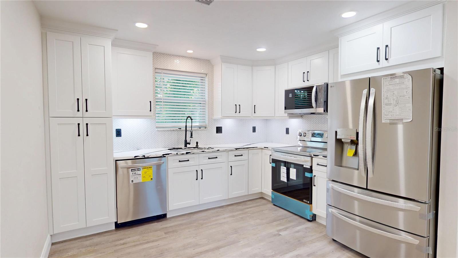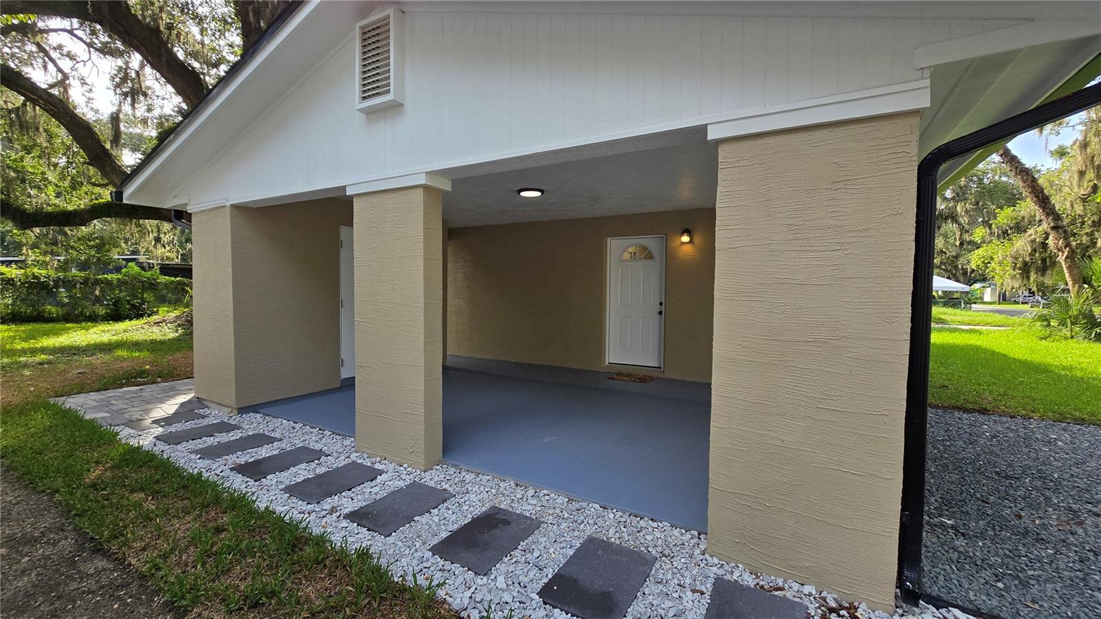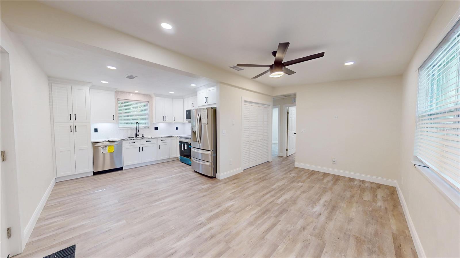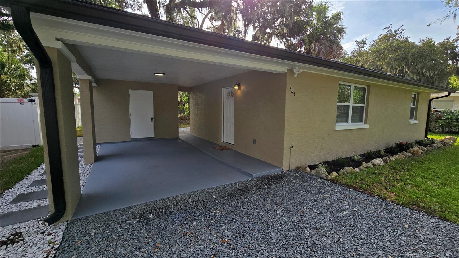 SELLER IS GIVING A $7,000 CREDIT TO THE BUYERS AT CLOSING. TOP-TO-BOTTOM TOTAL REMODEL - MOVE-IN READY! This beautifully updated 2 Bedroom, 1 Bathroom home with Carport has been completely transformed with NEW ROOF, NEW WATER HEATER, NEW HVAC, NEW WINDOWS, and NEW GUTTERS—all the big-ticket items are DONE! Inside, enjoy brand-new flooring throughout paired with stylish modern finishes. The kitchen boasts stunning granite countertops with matching backsplash and top-of-the-line LG ThinQ stainless steel appliances featuring green smart tech efficiency, making it both luxurious and eco-friendly. The remodeled bathroom feels like a spa, offering a glass-enclosed shower, Bluetooth speaker, and anti-fog color-changing mirror. Additional features include new fans with remote features, upgraded lighting, fresh interior & exterior paint, and new exterior security lights for safety and convenience. Outdoor living is enhanced with new pavers, a covered carport, and a spacious 60x105 lot, perfect for entertaining, gardening, or simply enjoying Florida Living. This property blends modern finishes, eco-conscious technology, and a full top-to-bottom remodel, making it the perfect turnkey home! Call for private tour.