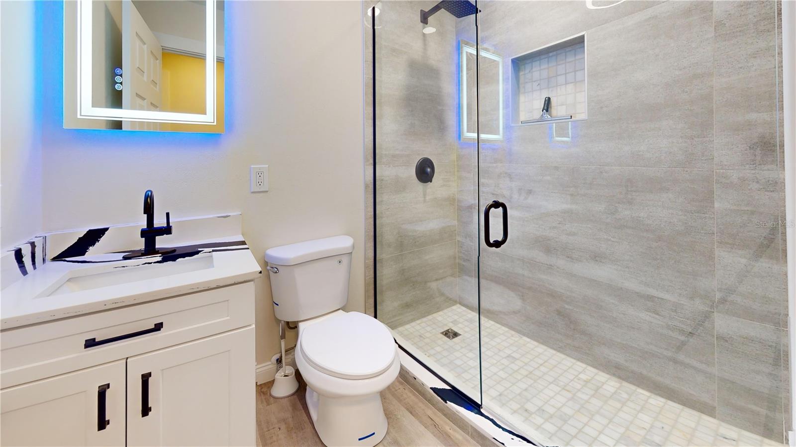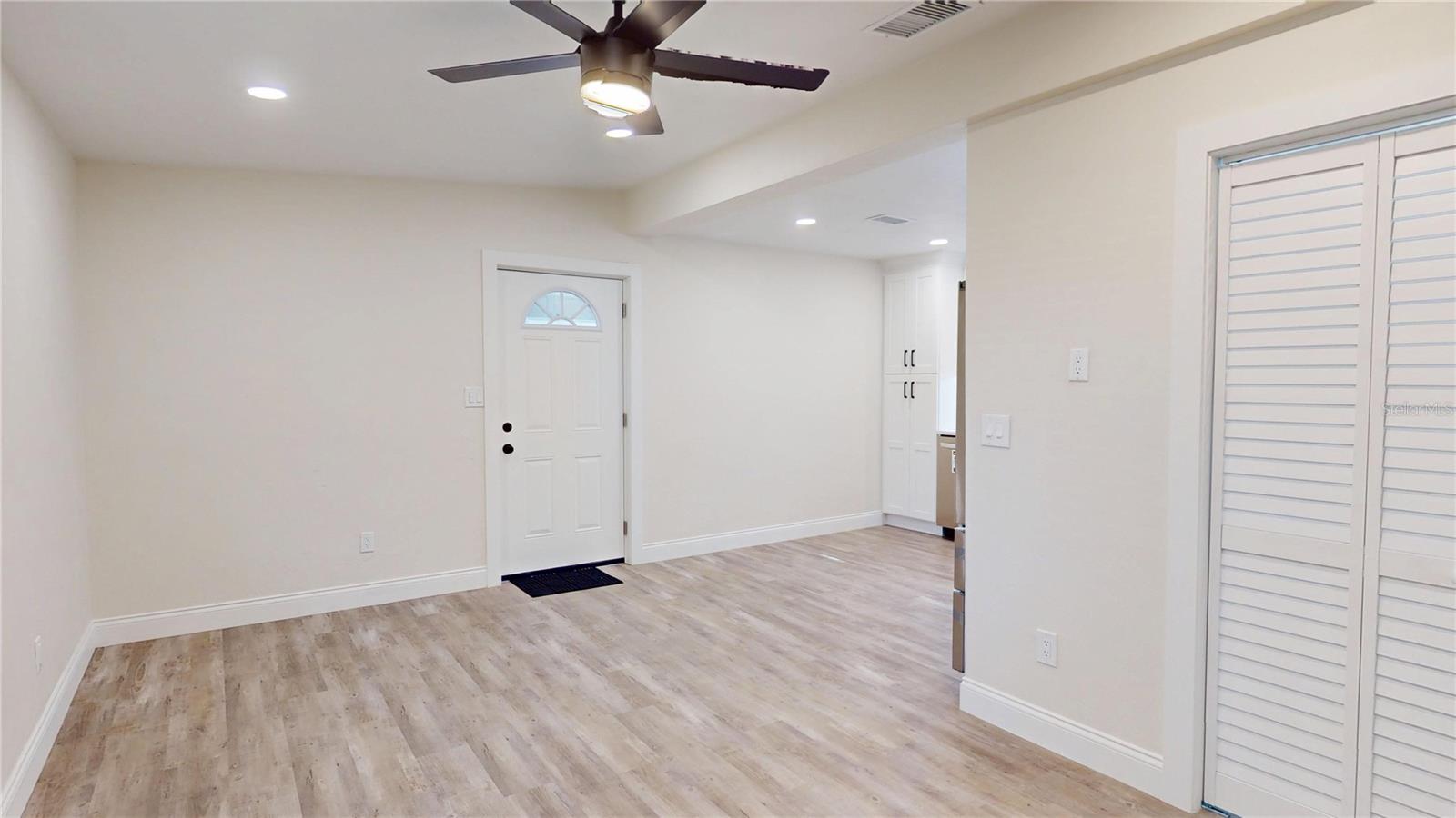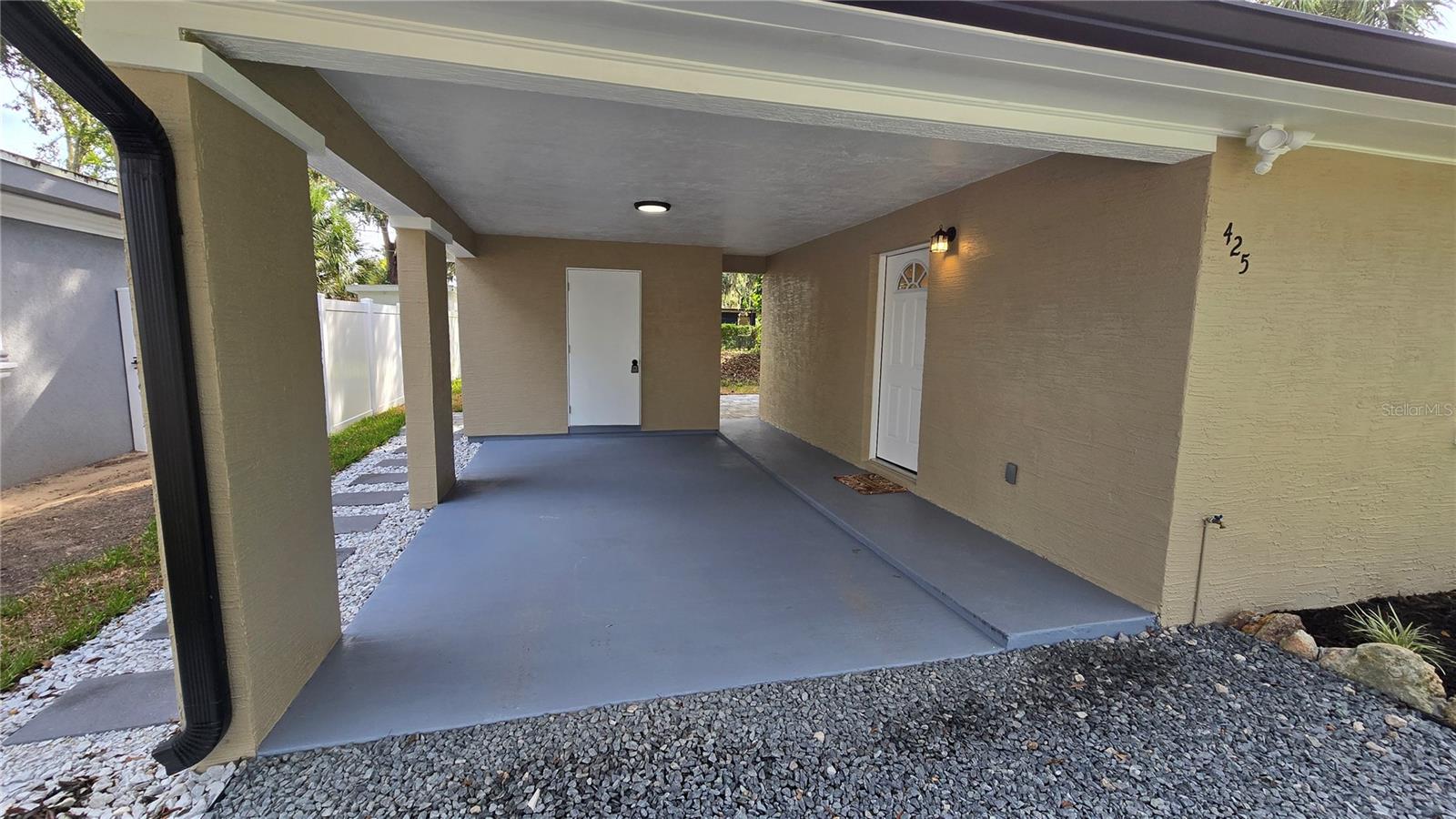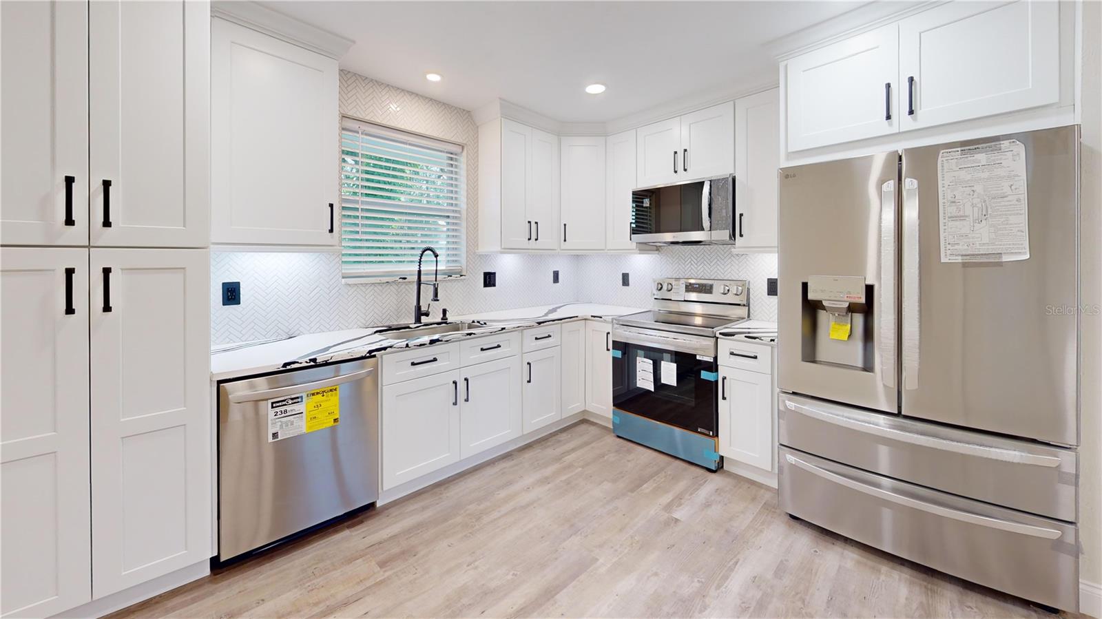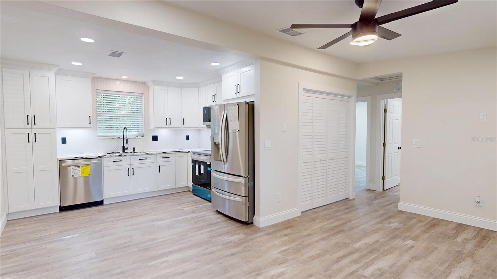 SELLER IS GIVING A $7,000 CREDIT TO THE BUYERS AT CLOSING. TOP-TO-BOTTOM TOTAL REMODEL - MOVE-IN READY! This beautifully updated 2 Bedroom, 1 Bathroom home with Carport has been completely transformed with NEW ROOF, NEW WATER HEATER, NEW HVAC, NEW WINDOWS, and NEW GUTTERS—all the big-ticket items are DONE! Inside, enjoy brand-new flooring throughout paired with stylish modern finishes. The kitchen boasts stunning granite countertops with matching backsplash and top-of-the-line LG ThinQ stainless steel appliances featuring green smart tech efficiency, making it both luxurious and eco-friendly. The remodeled bathroom feels like a spa, offering a glass-enclosed shower, Bluetooth speaker, and anti-fog color-changing mirror. Additional features include new fans with remote features, upgraded lighting, fresh interior & exterior paint, and new exterior security lights for safety and convenience. Outdoor living is enhanced with new pavers, a covered carport, and a spacious 60x105 lot, perfect for entertaining, gardening, or simply enjoying Florida Living. This property blends modern finishes, eco-conscious technology, and a full top-to-bottom remodel, making it the perfect turnkey home! Call for private tour.